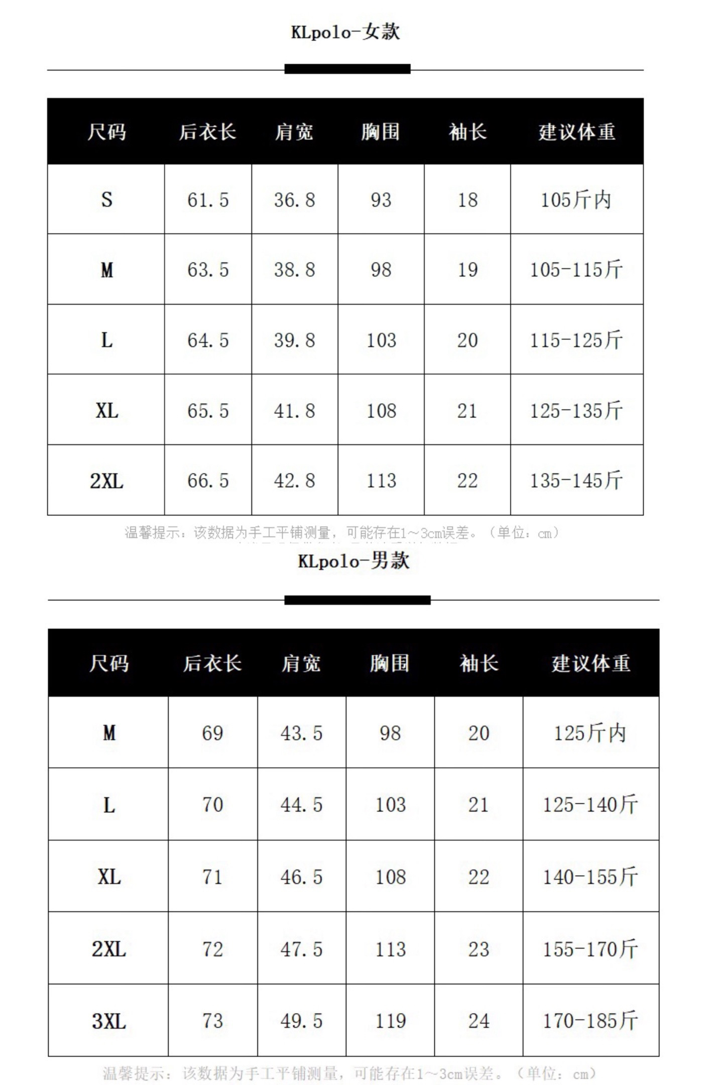 女款polo: S M L 2xl(145斤以内能穿)