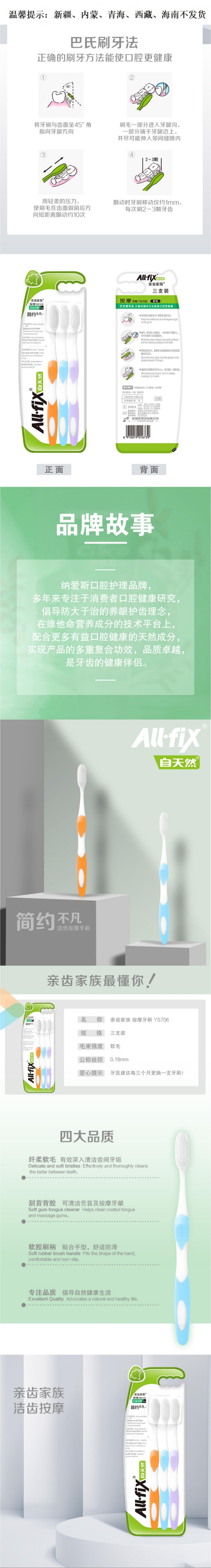 纳爱斯 亲齿家族按摩牙刷三支装 6910019016739