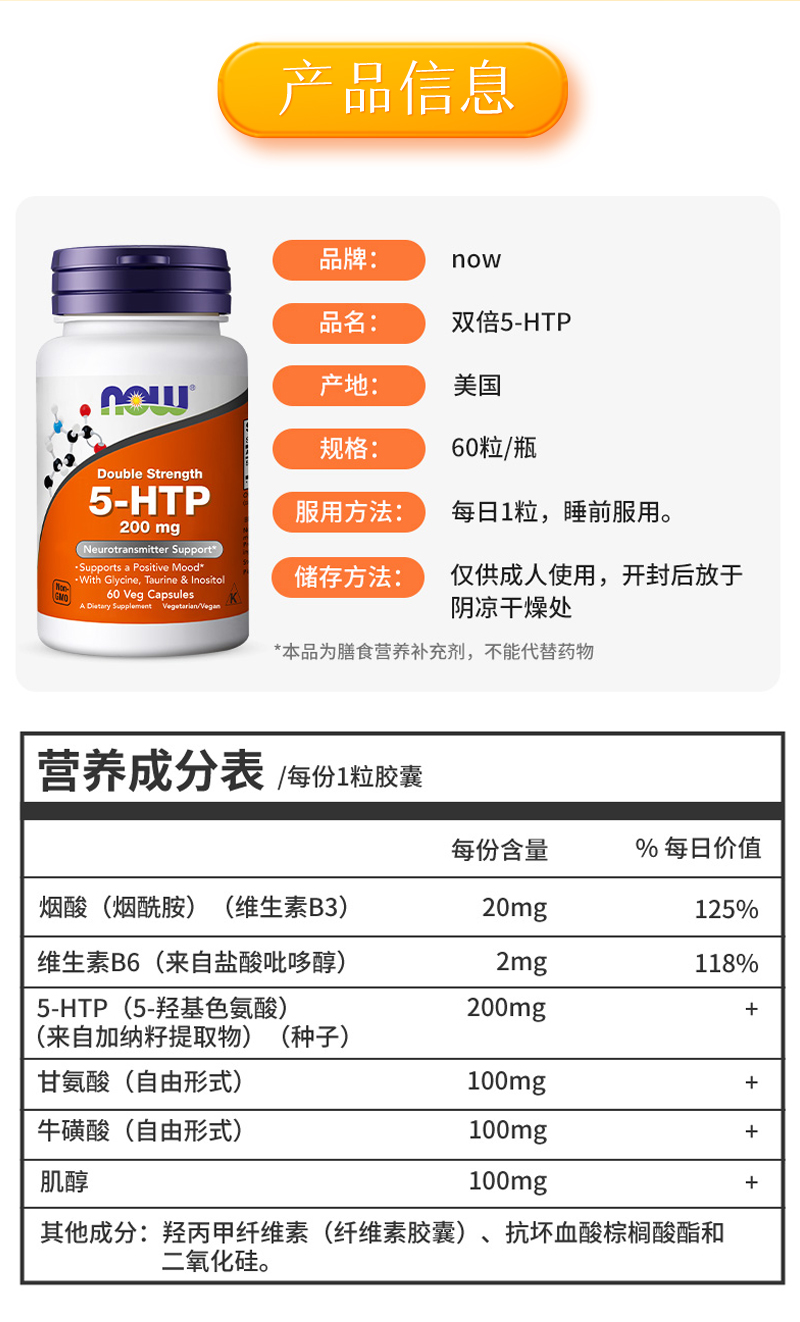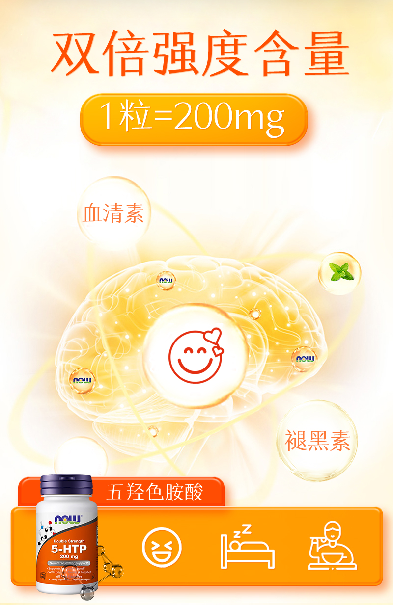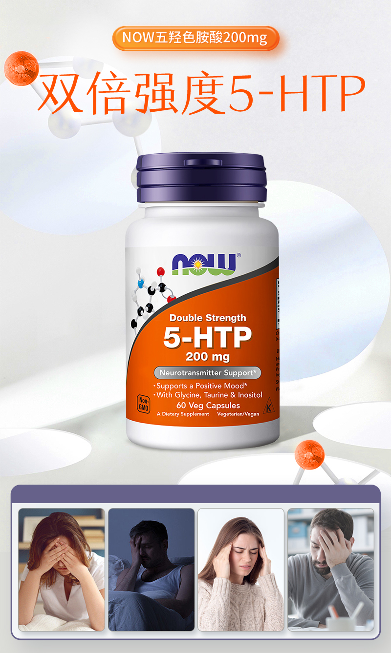 【NOW】美国 诺奥 5-羟色胺 双倍强度五羟色胺胶囊(200mg)