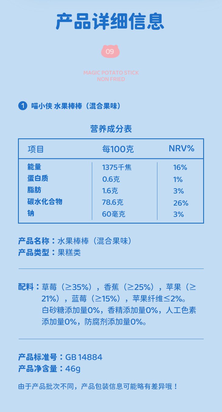 喵小侠水果棒棒混合果味46g