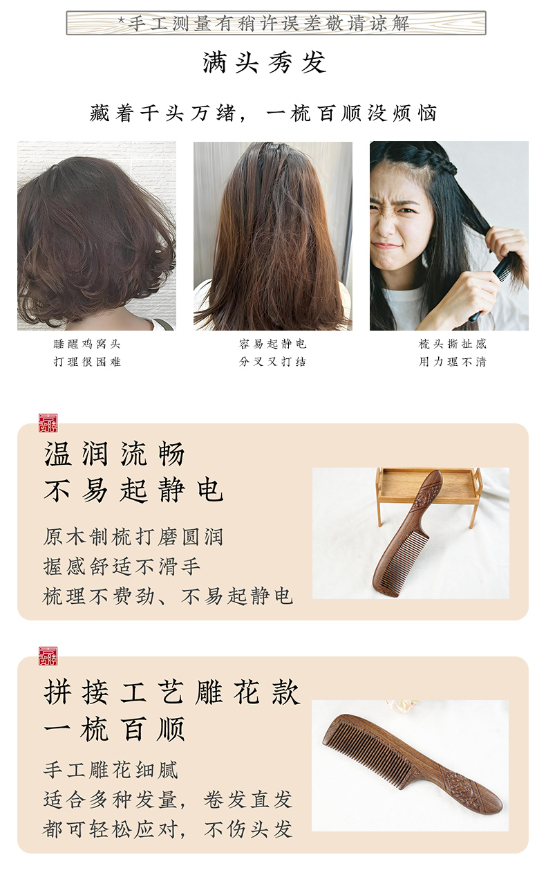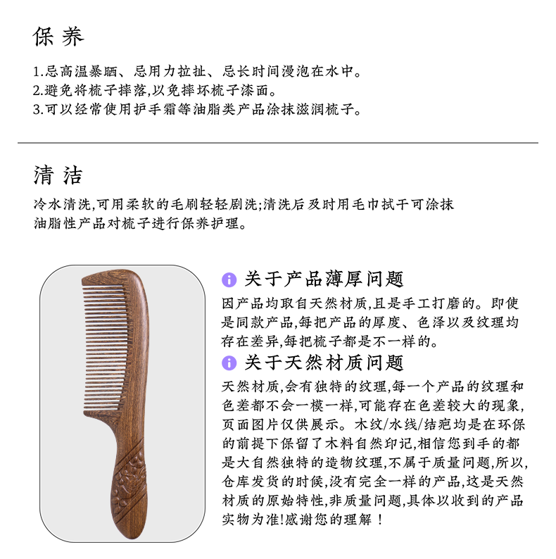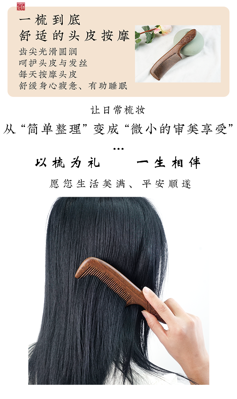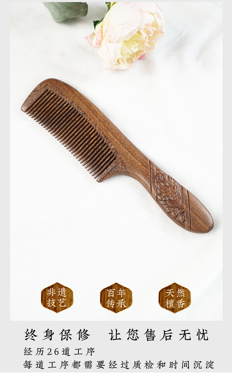 周广胜正品南美酸枝绶带鸟合木梳防静电个人清洁护理送女士长发家用便携