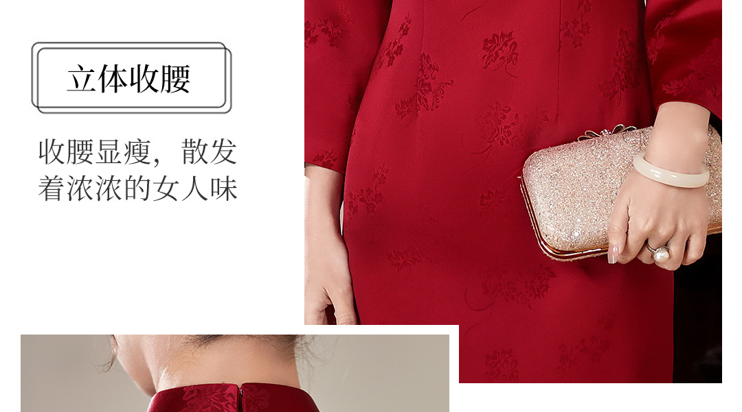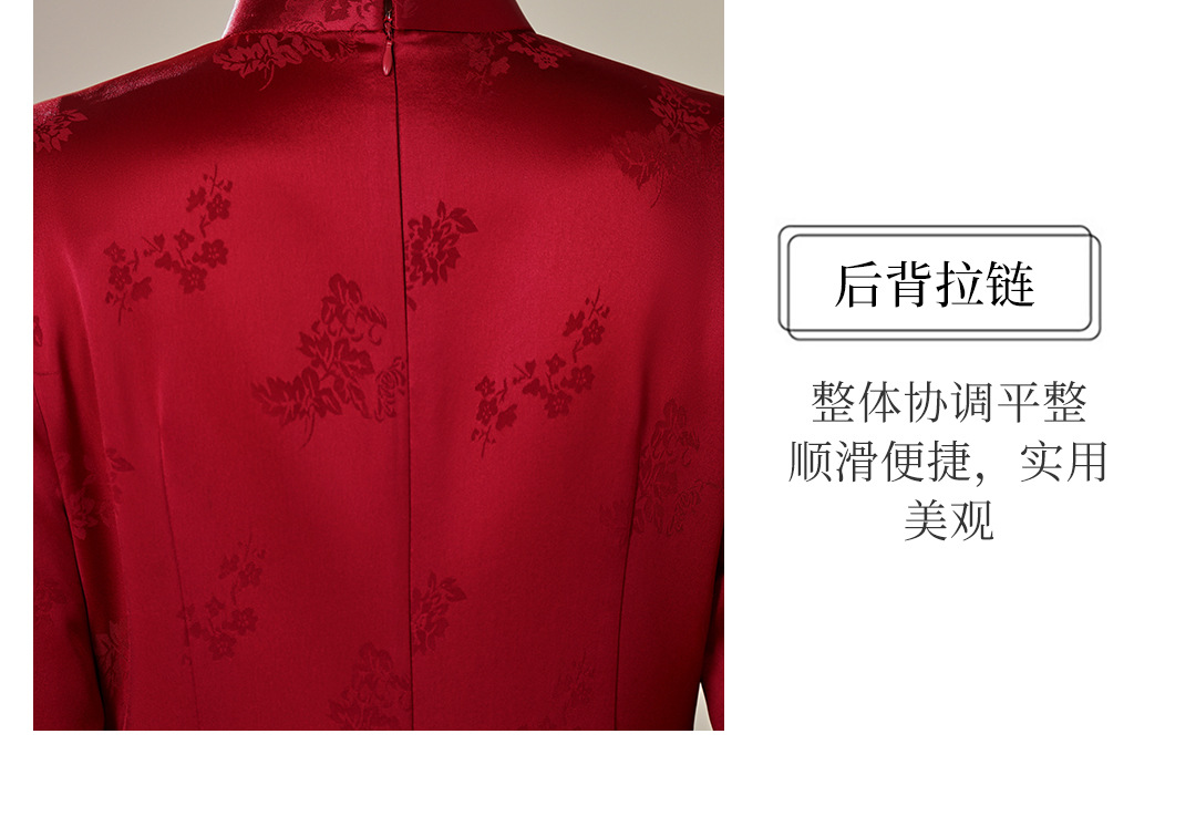 QZ 60728酒红旗袍高级感婚宴妈妈礼服喜婆婆连衣裙 商品图4