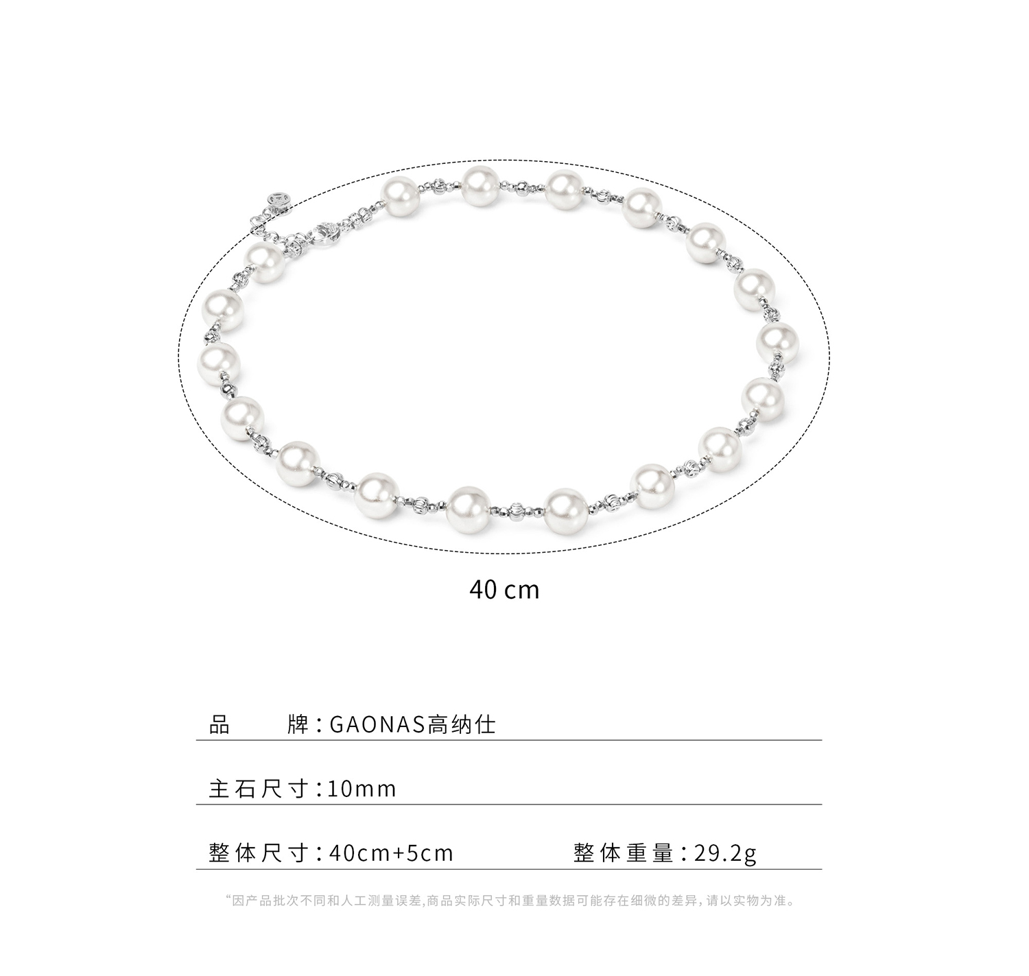 GAONAS 时尚百搭10mm白色珠项链11447XW