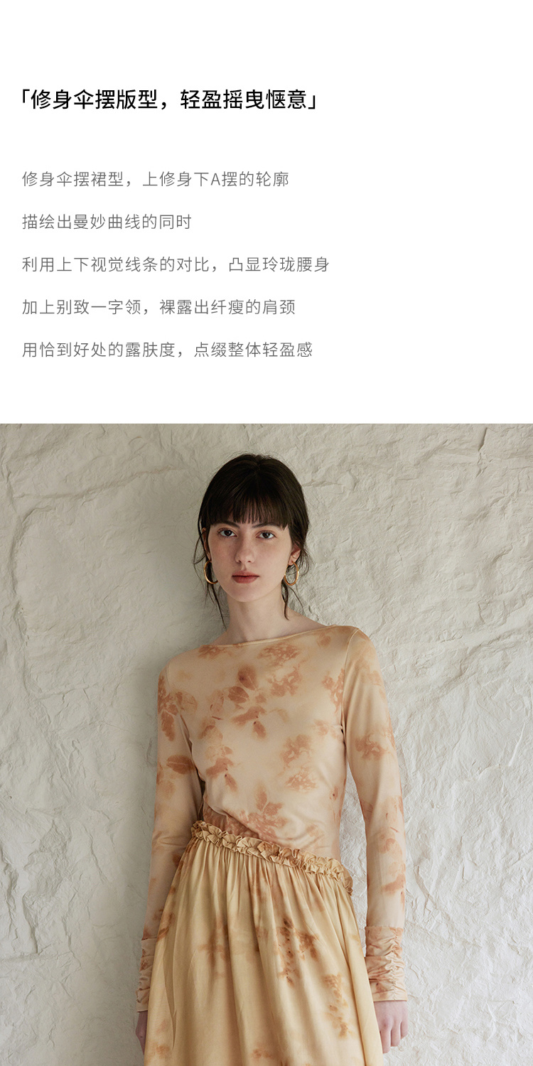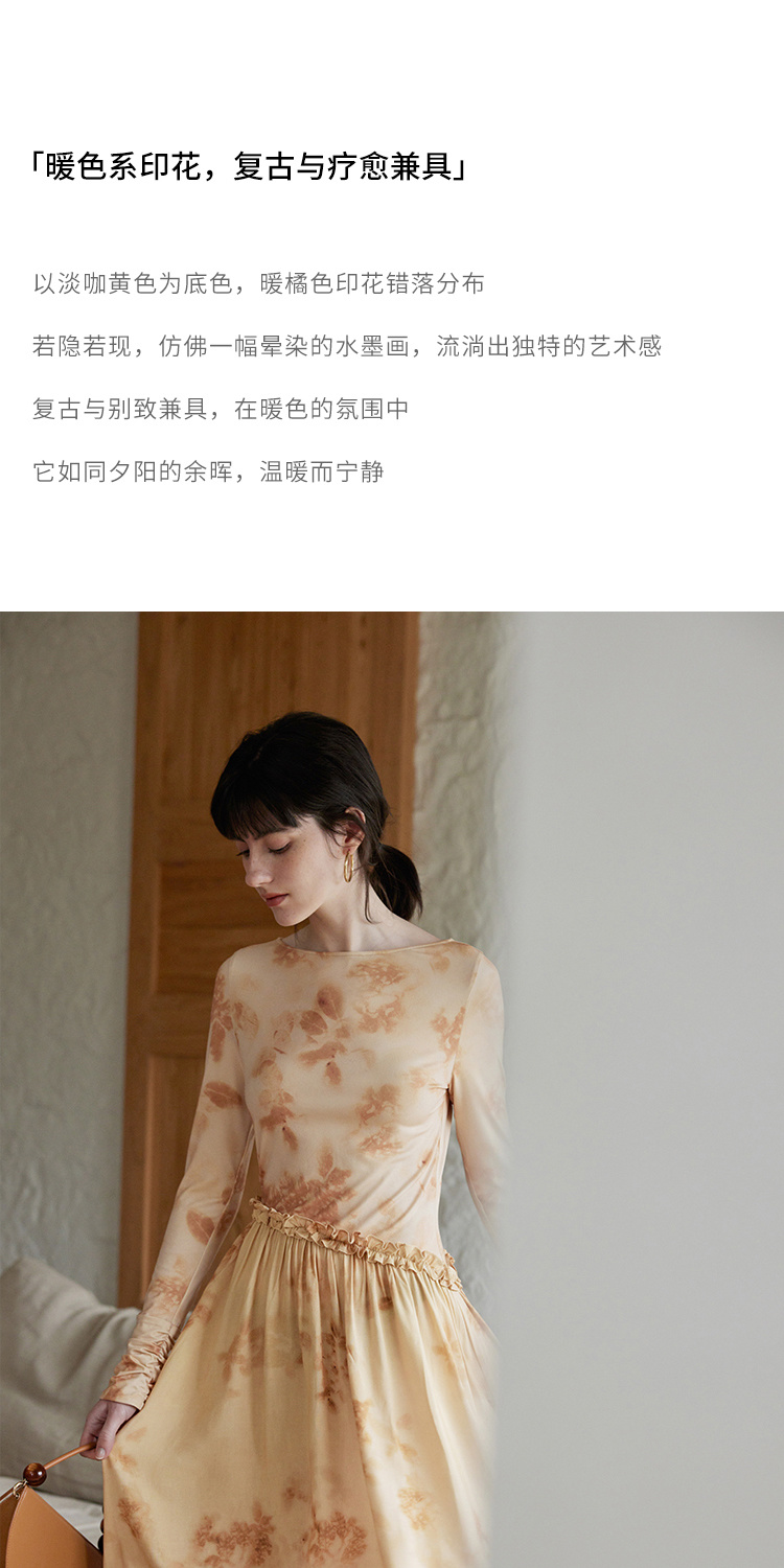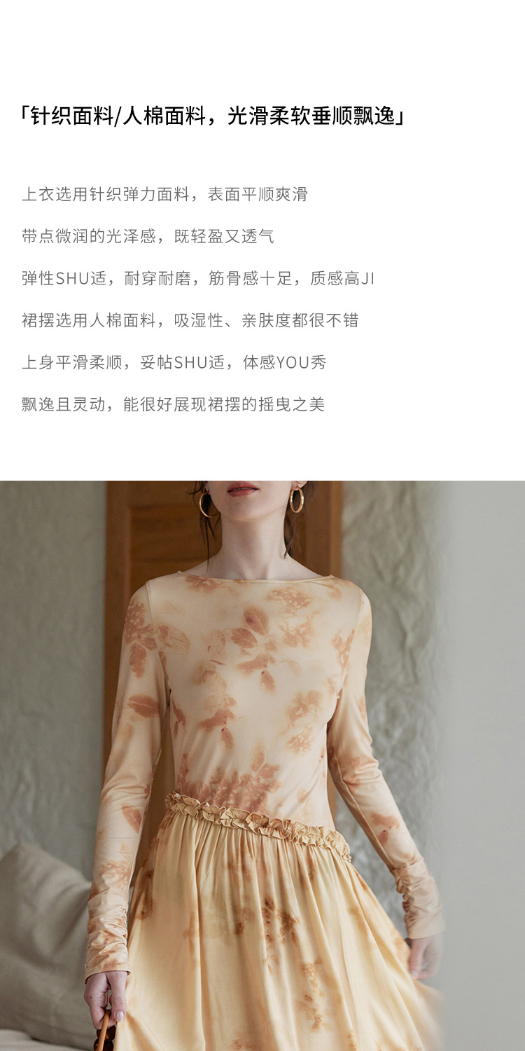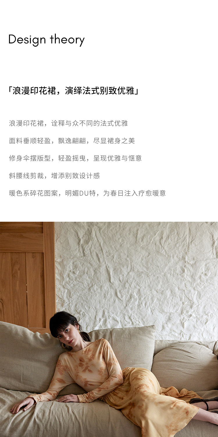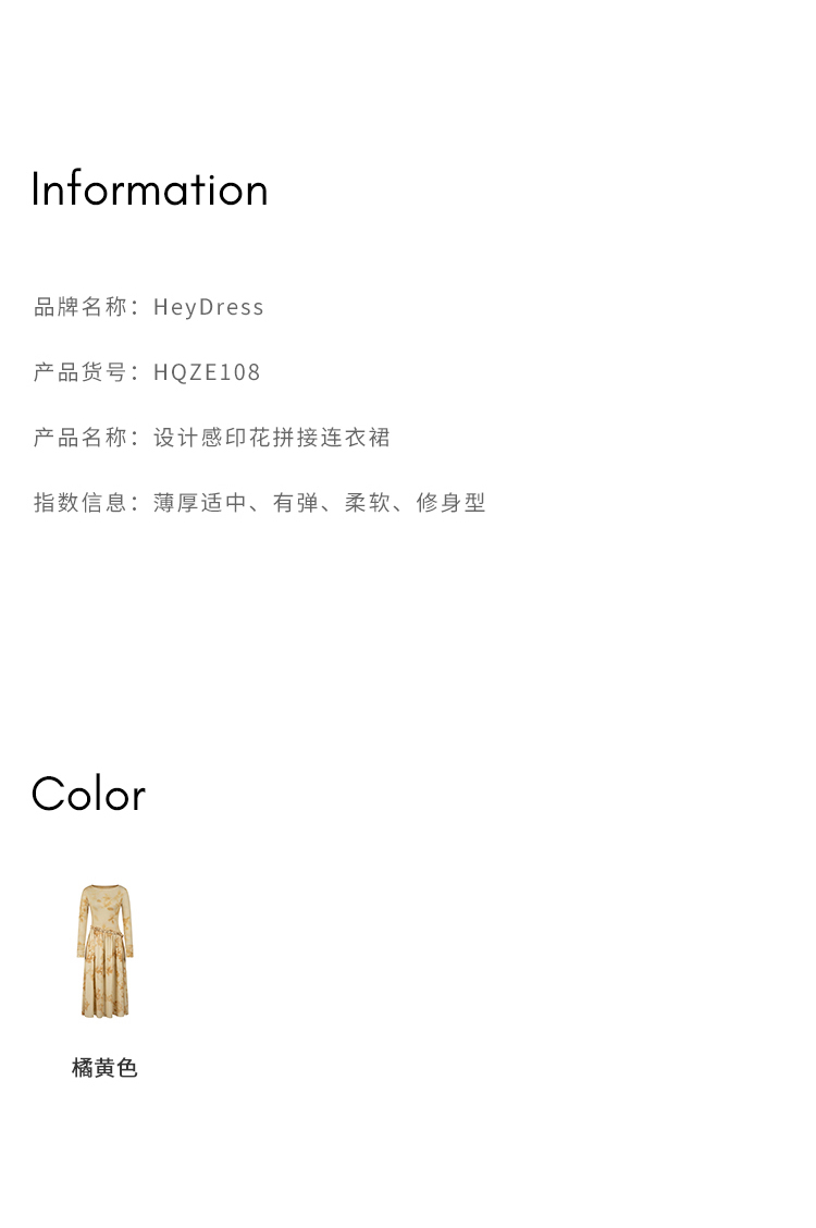 HeyDress斜腰印花连衣裙女春季法式复古收腰拼接设计优雅气质裙子