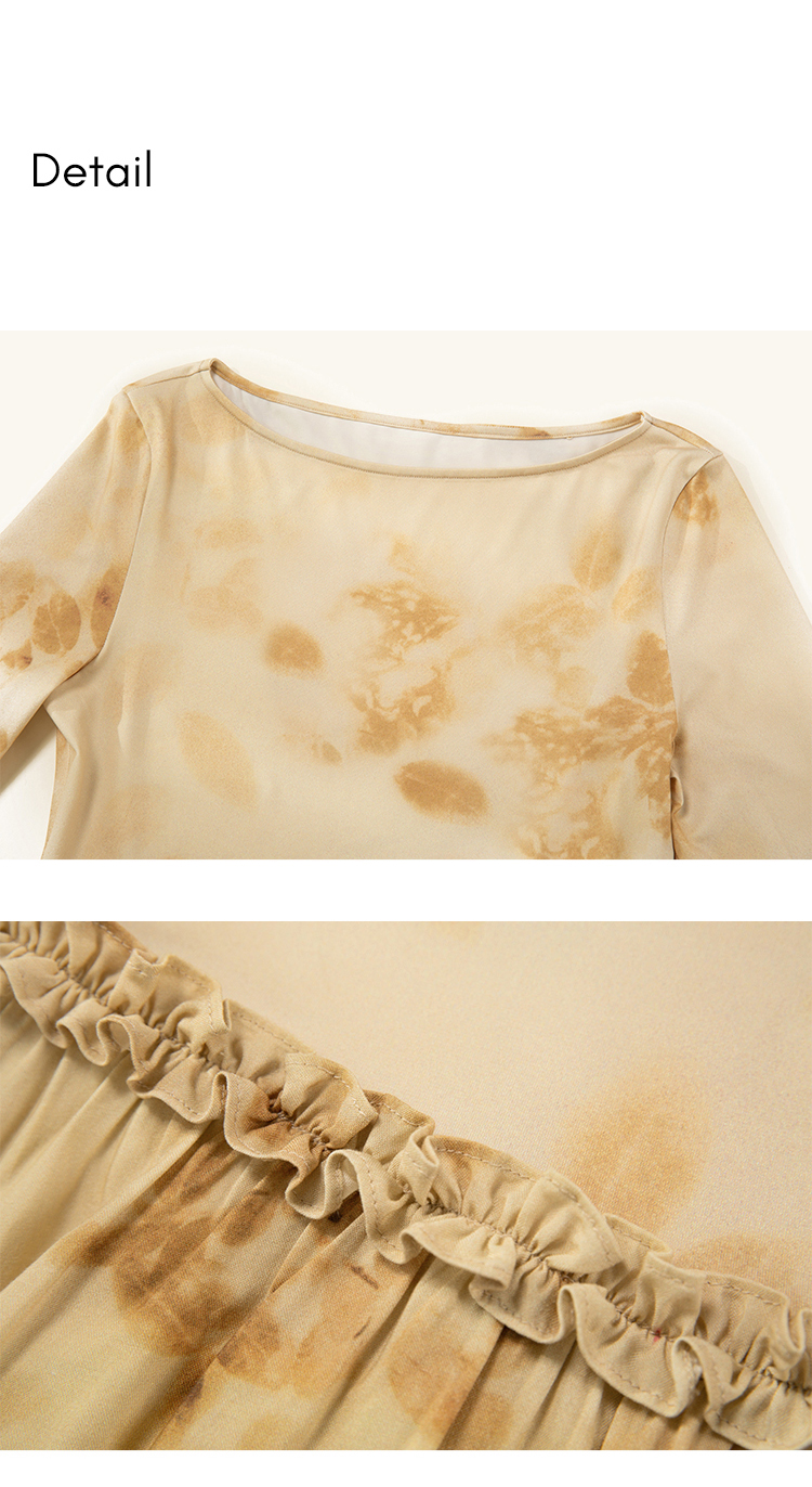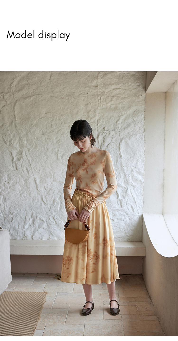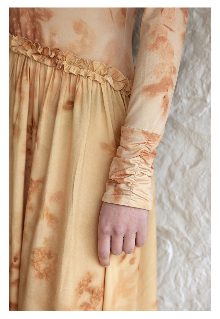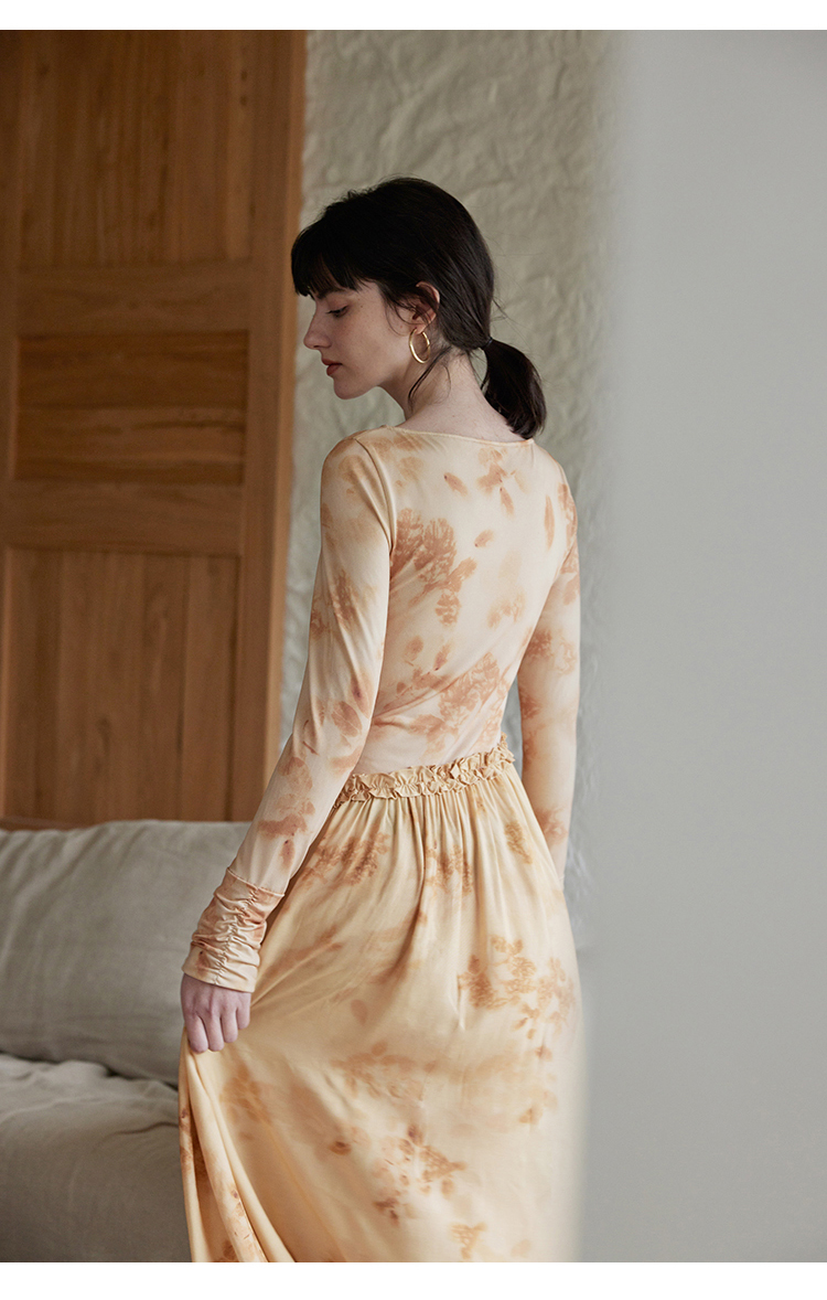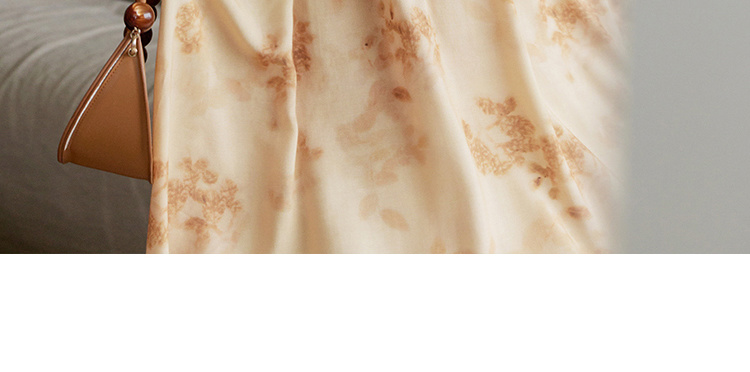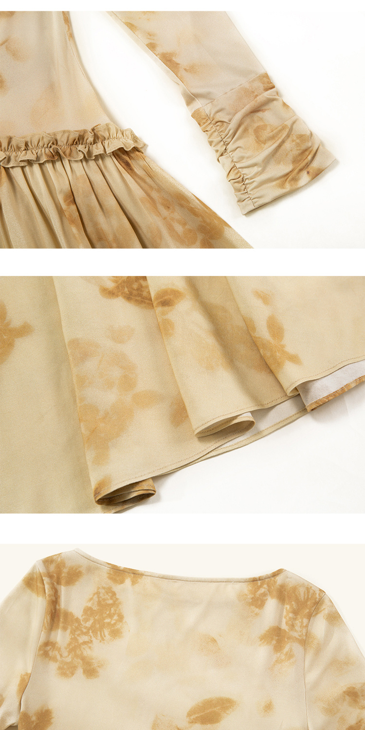 HeyDress斜腰印花连衣裙女春季法式复古收腰拼接设计优雅气质裙子