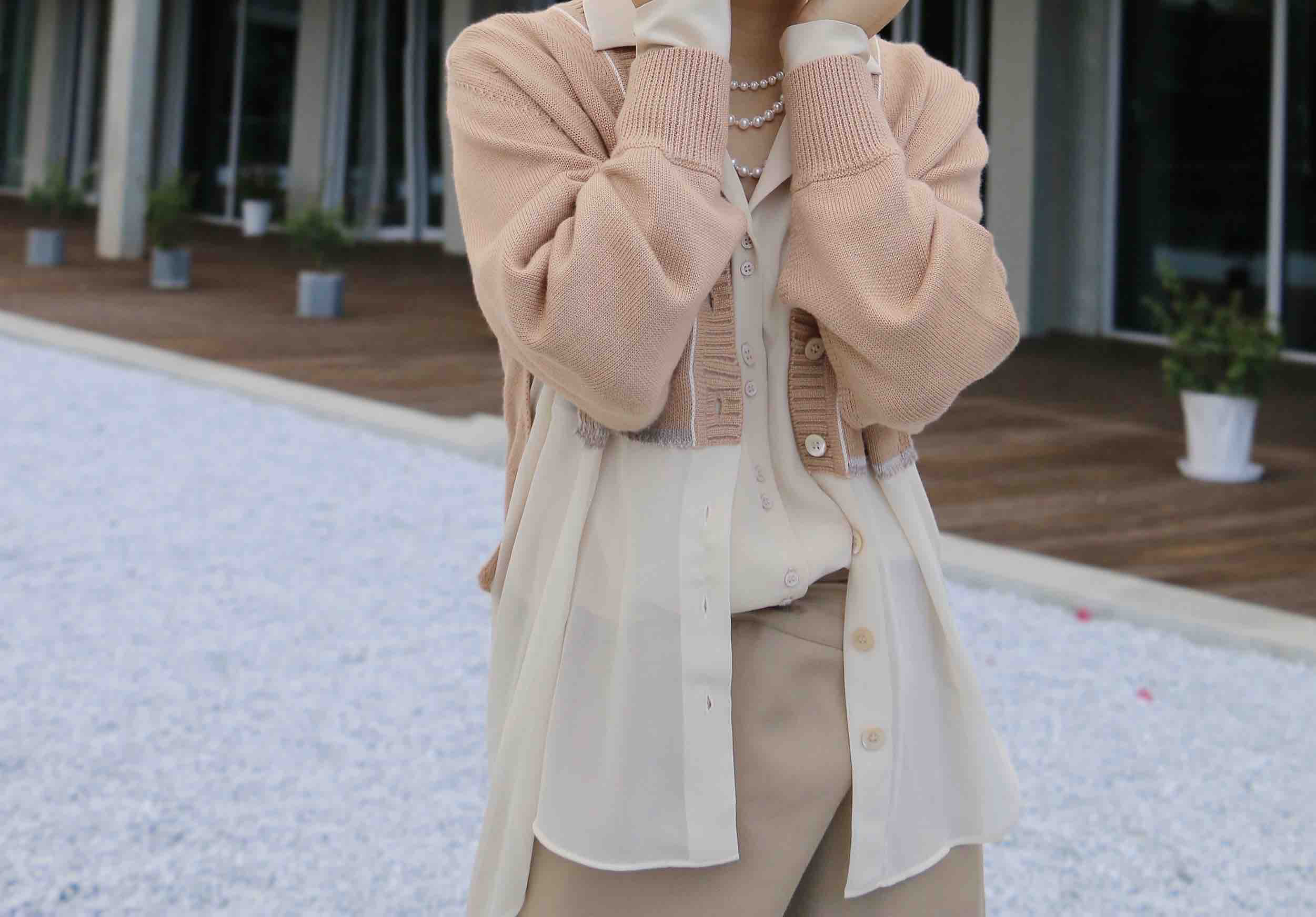 【à perles精奢】羊绒真丝拼接,贝壳扣,精致嵌边,超飘逸洋气开衫【特价清仓】