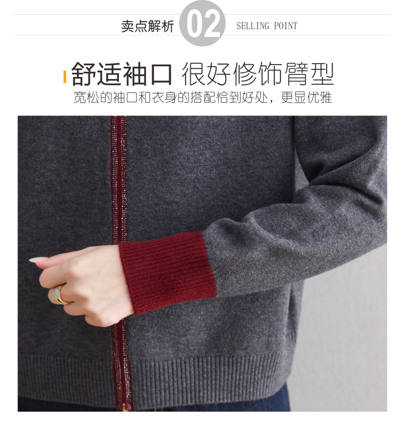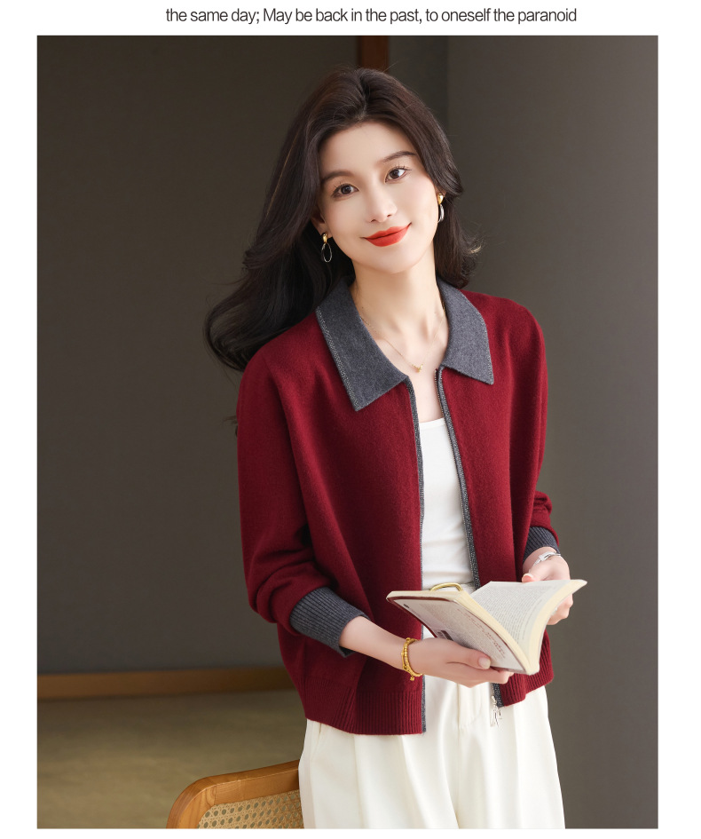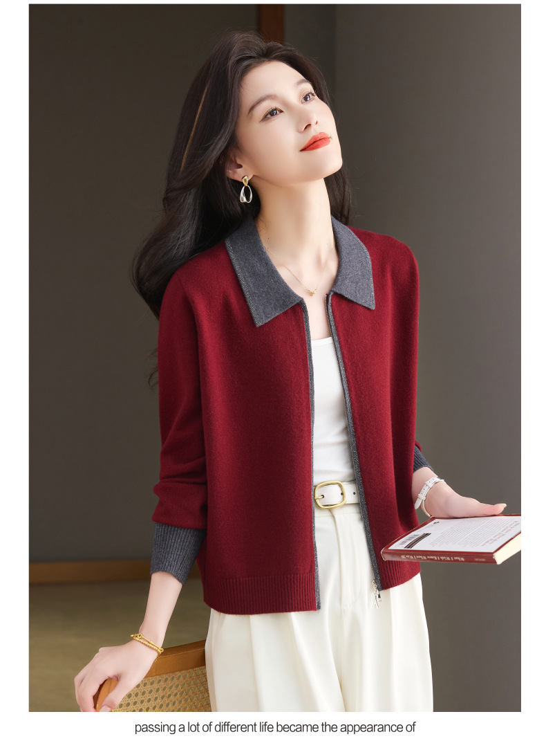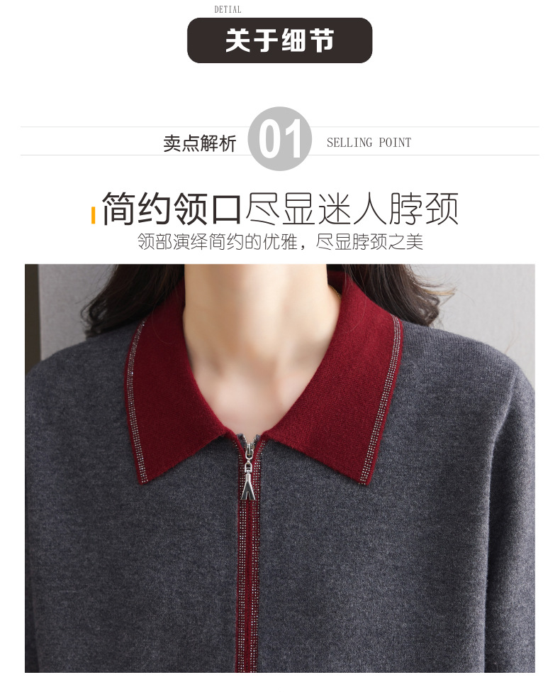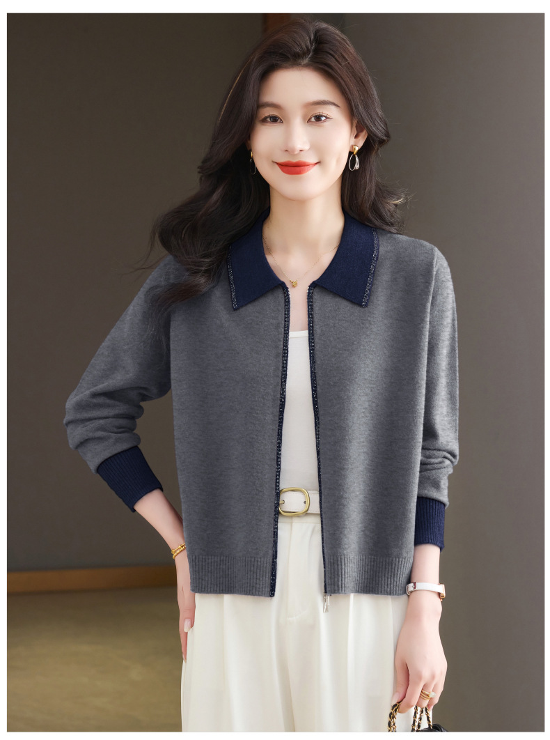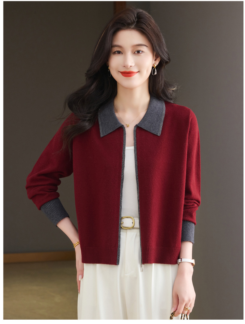 CC翻领拉链上衣女春秋高级感撞色针织开衫2025新款大码毛衣外套胖mm