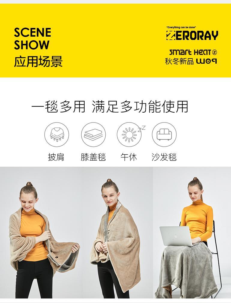 零界纤维 Zeroray 智能温控发热盖毯办公室取暖冬季被窝暖身毛毯
