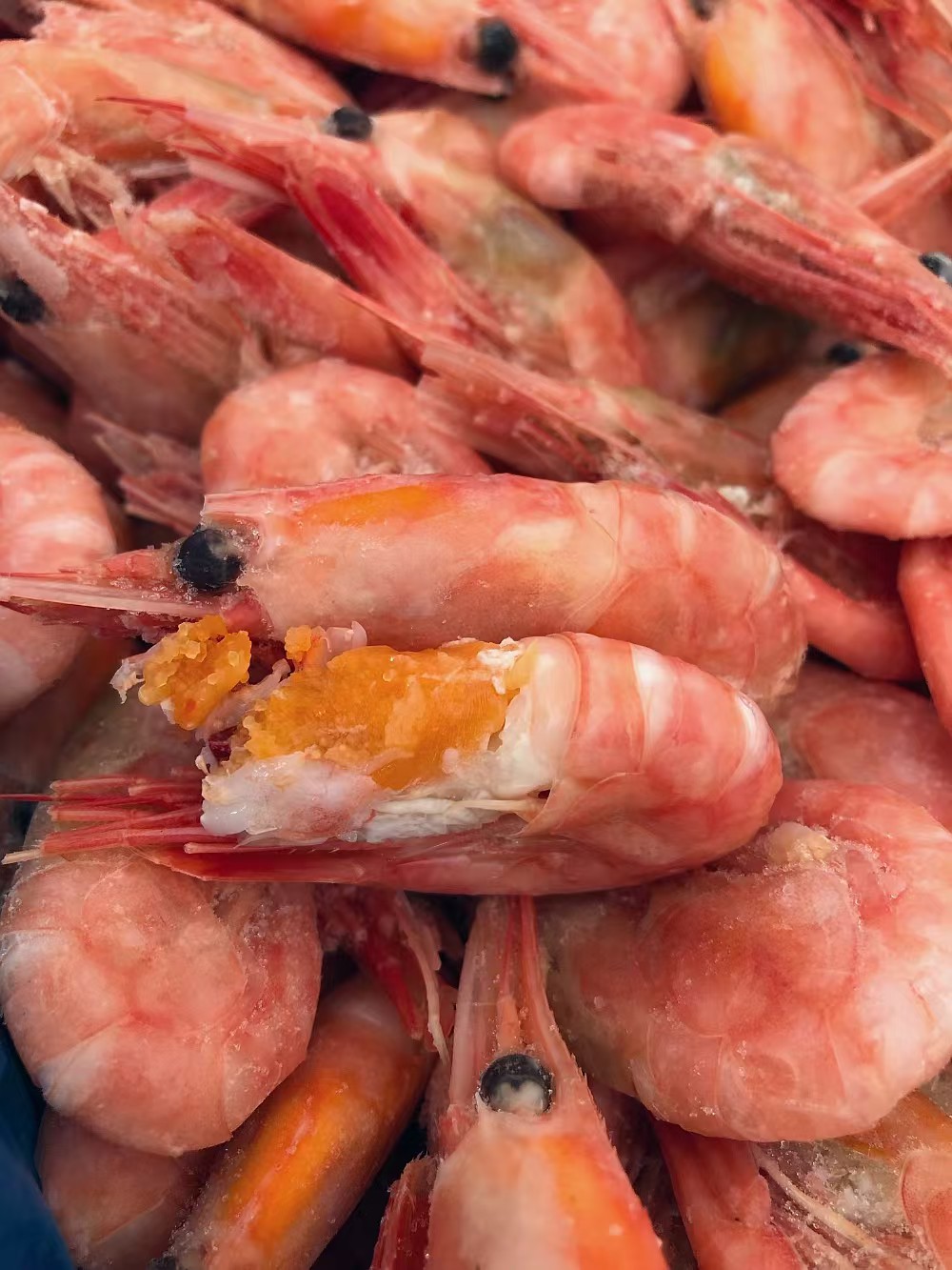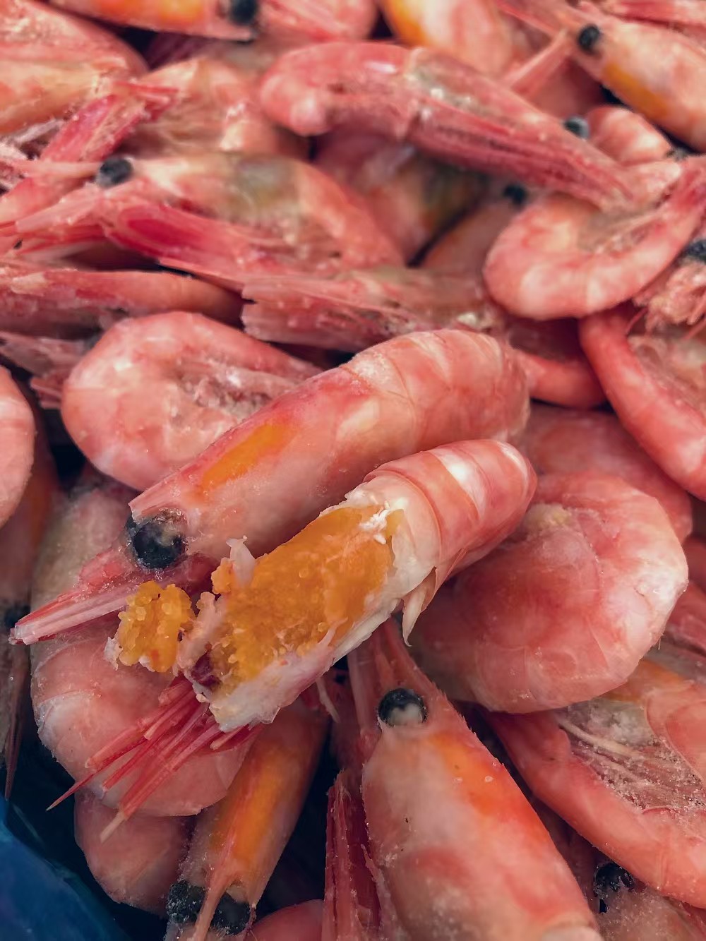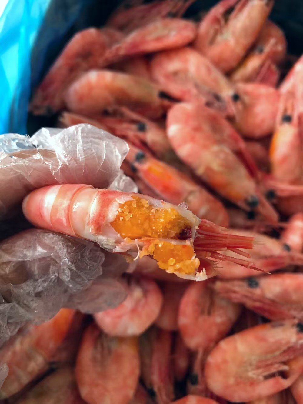 吃头籽的季节,鲜香鲜香的头籽,实属一种美味!满籽率很高的头籽北极虾,80%以上的满籽率!