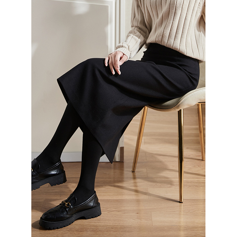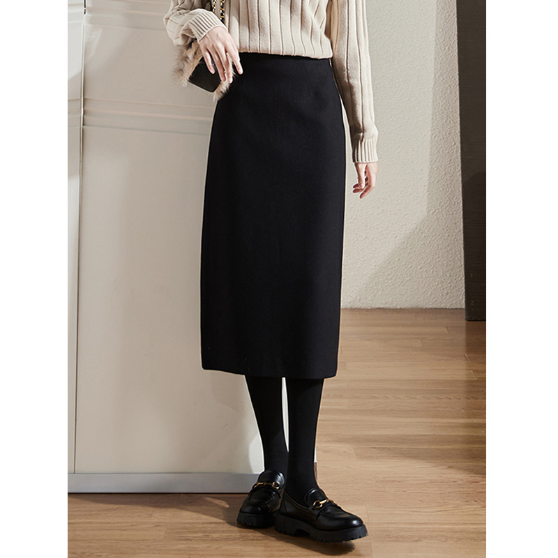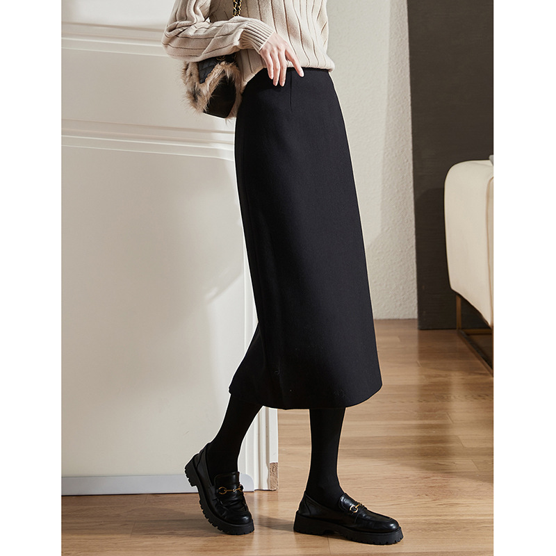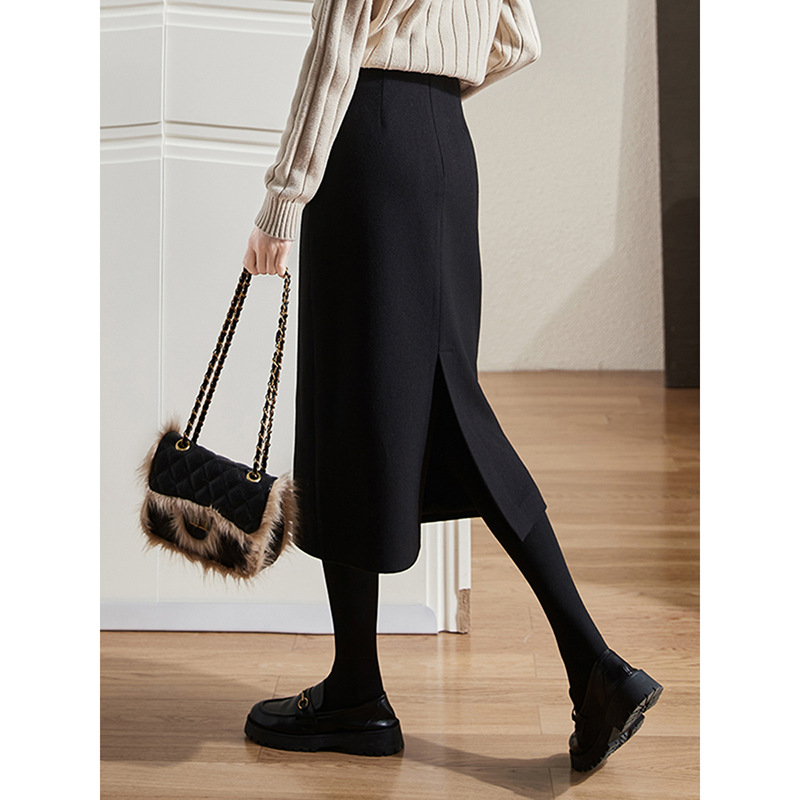 雀说 毛呢半身裙女秋季新款百搭显瘦中长款裙子开叉高腰包臀裙3ZF-121107