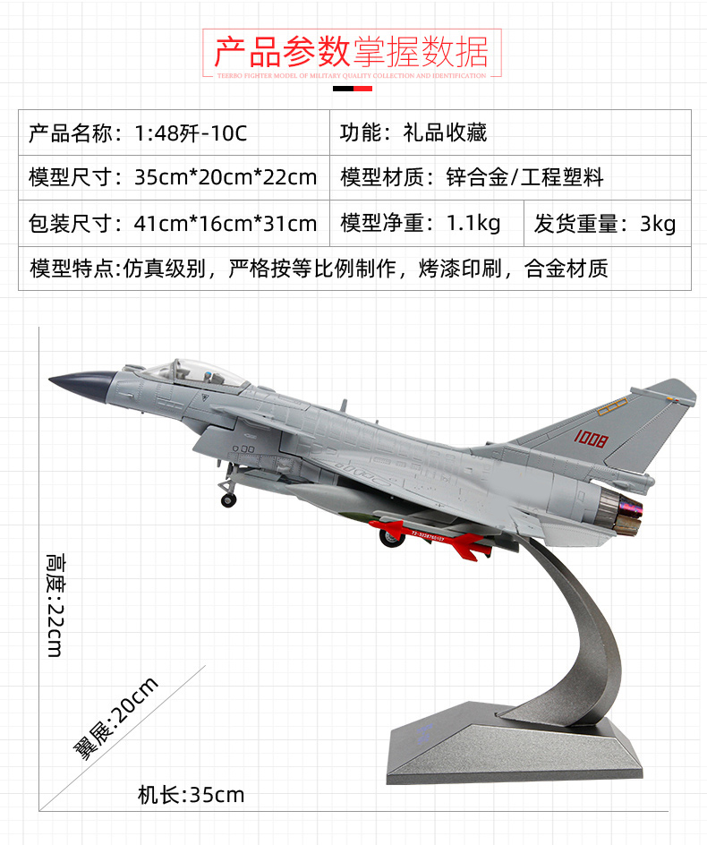 【中航工业官方正品 长春航展、九三阅兵纪念品】 特尔博-1:72 1:48歼10C 巴基斯坦涂装歼十阅兵仿真军事模型航展纪念品歼10 J10 J10C