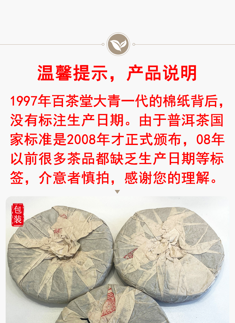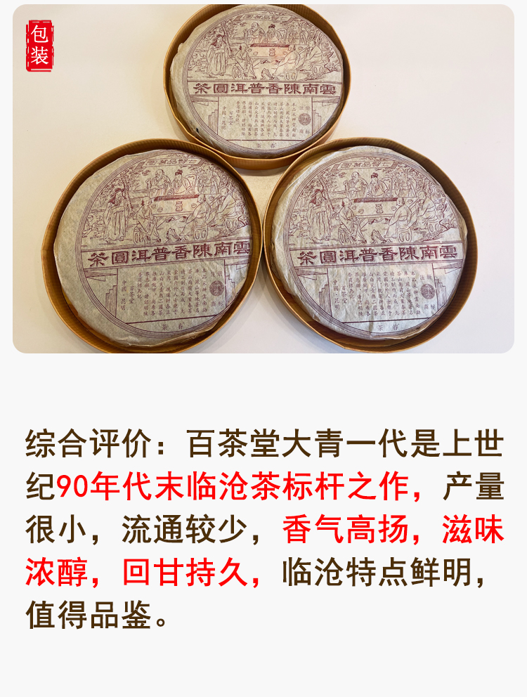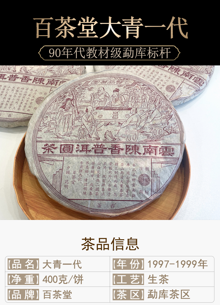 百茶堂大青一代青一普洱老生茶 经典百茶堂代表茶品 干仓真品支持鉴定 单片标价