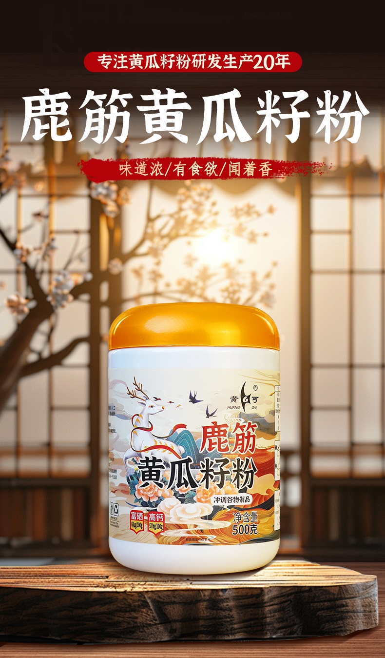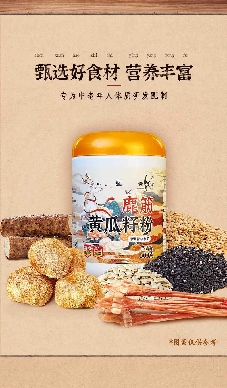【买4赠1】鹿筋黄瓜籽粉 长春老字号 甄选鹿乡鹿筋+长白山黄瓜籽 富硒 高钙 精细碾磨 粉质细腻 中老年健康优选 500克/罐