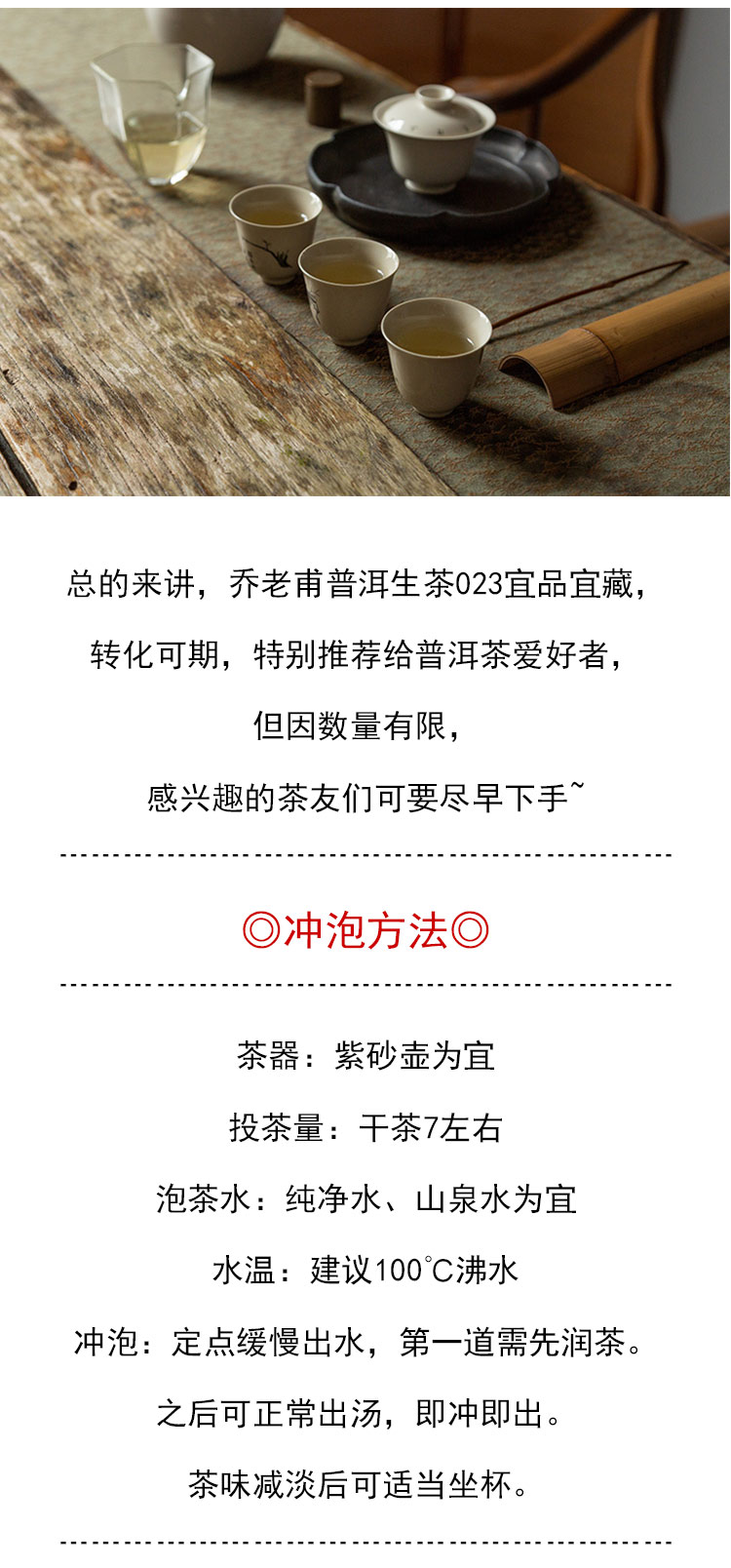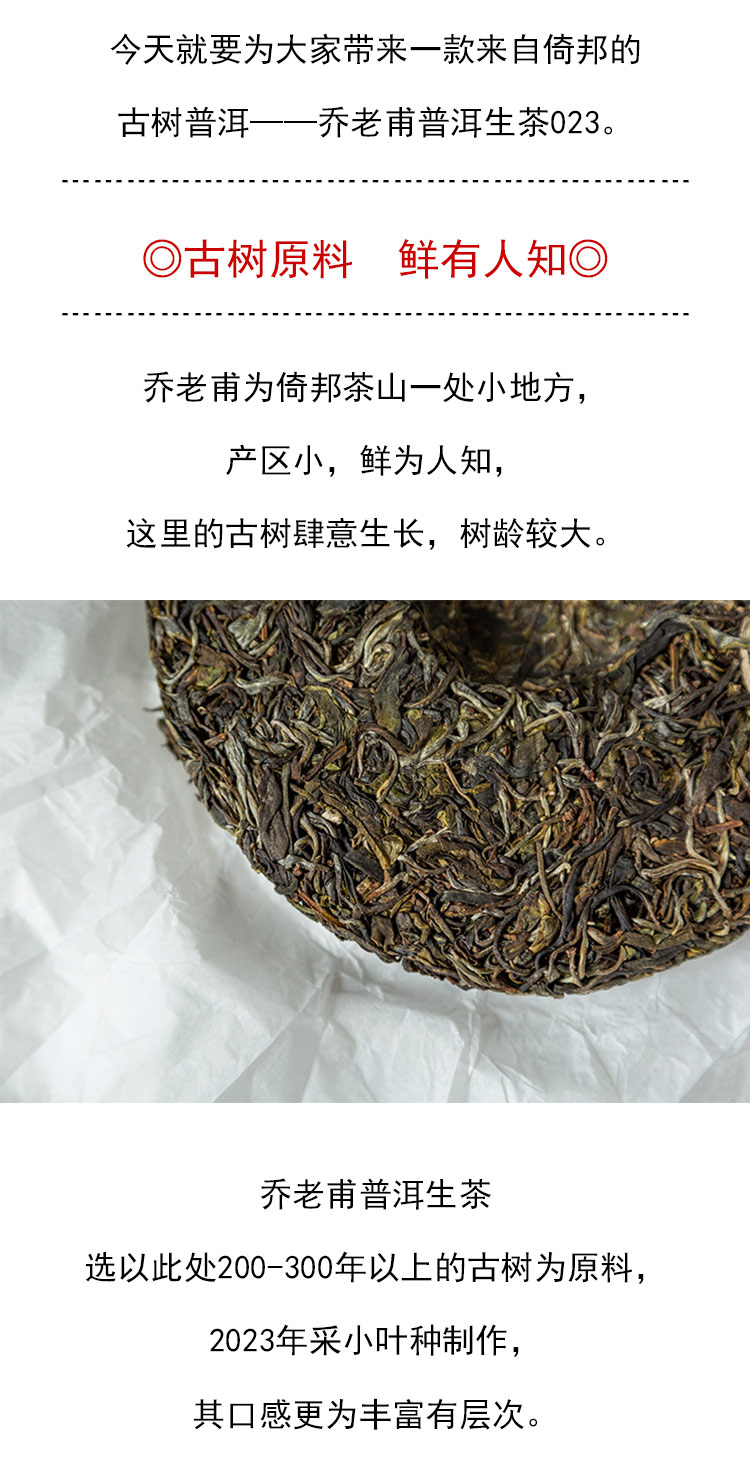茶香记 乔老甫普洱生茶023 倚邦古树生普 小叶种 气韵强 馥郁花香