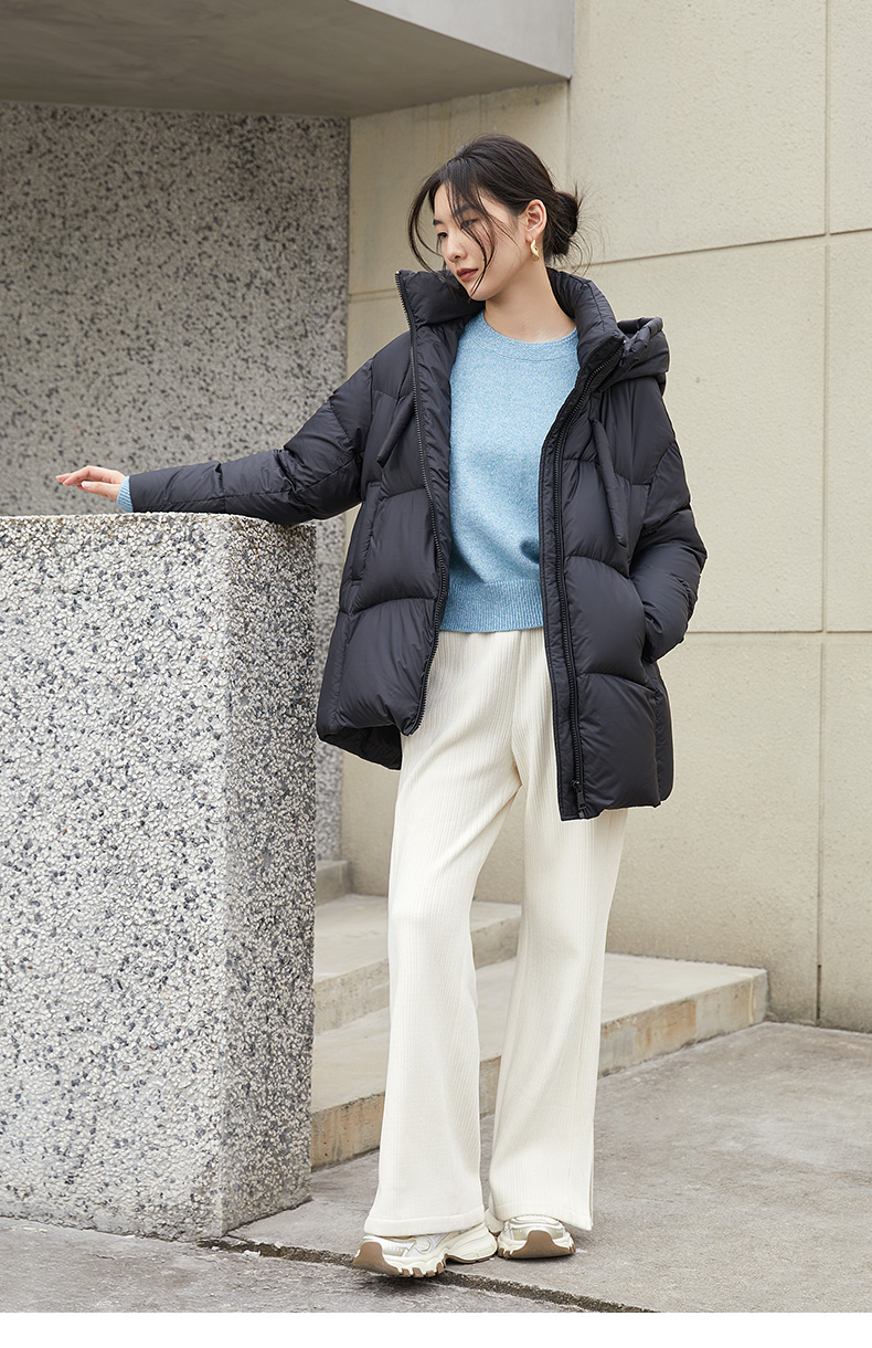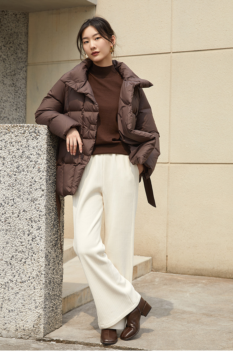 2025 秋冬奶白色坑条阔腿休闲裤女 高腰松紧腰垂感微喇叭裤 柔软亲肤通勤百搭显瘦宽松直筒长裤