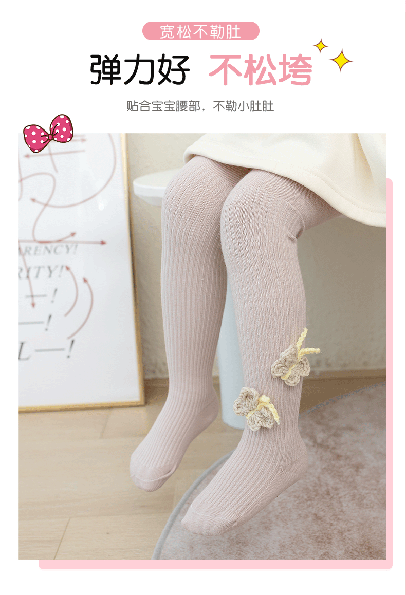 【A类精梳棉!亲肤触感】独立三角档,防掉档,爆品宝宝连裤袜小月龄婴儿打底裤两只蝴蝶a类棉春秋女童裤袜外穿。rb