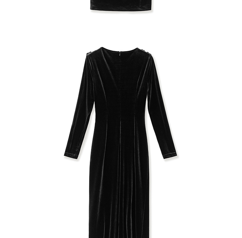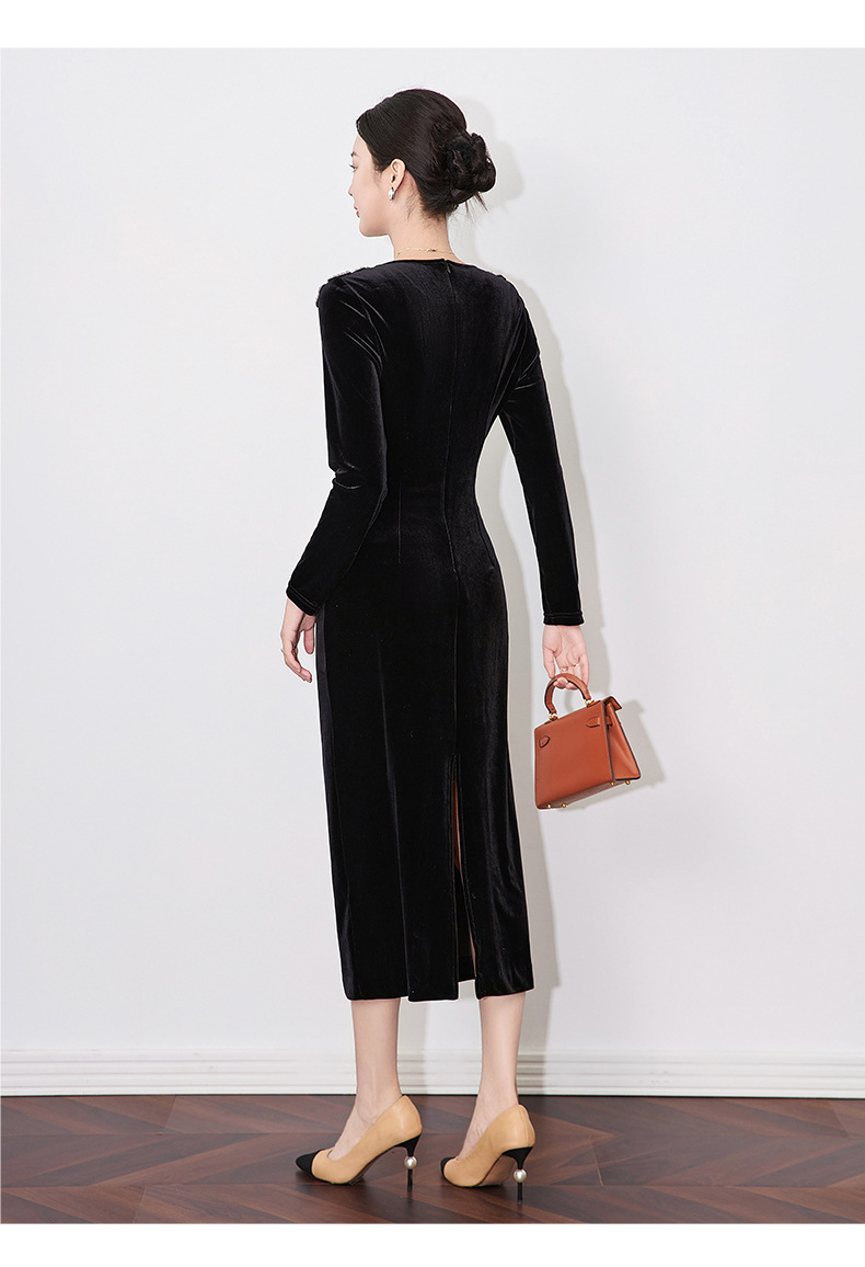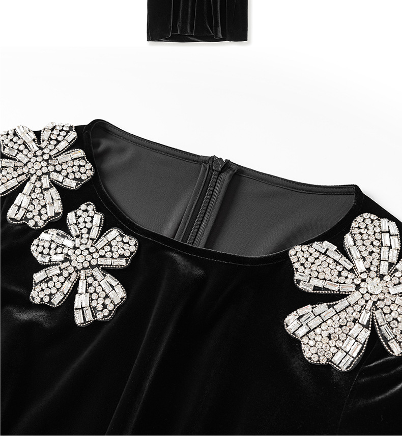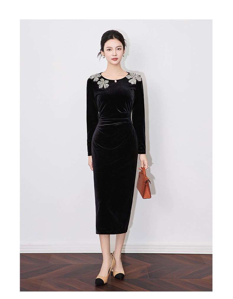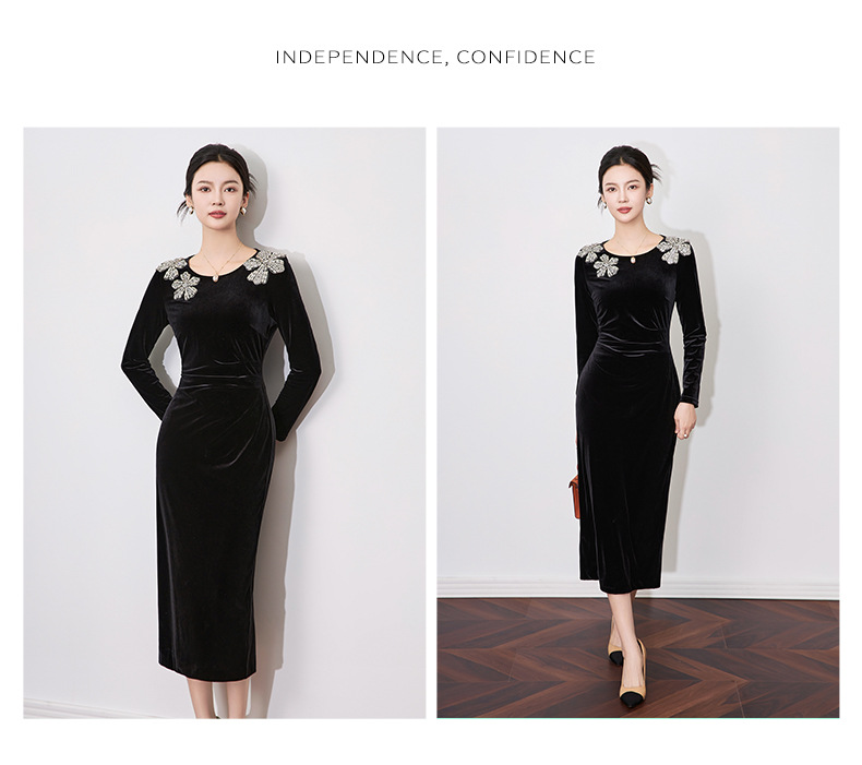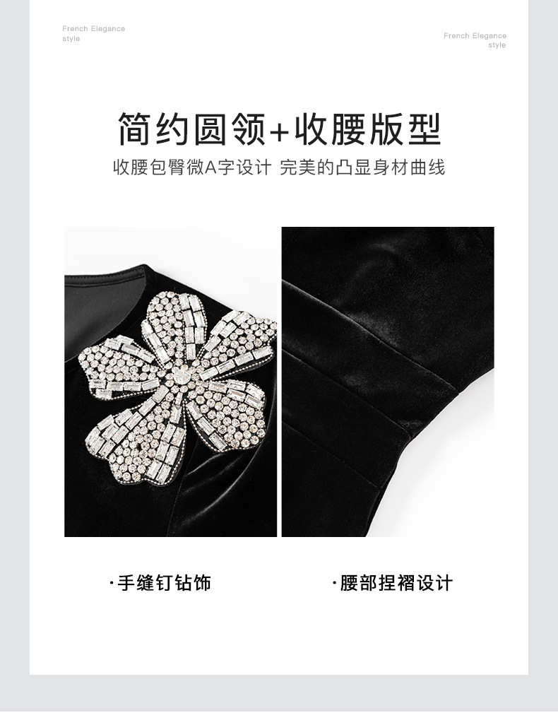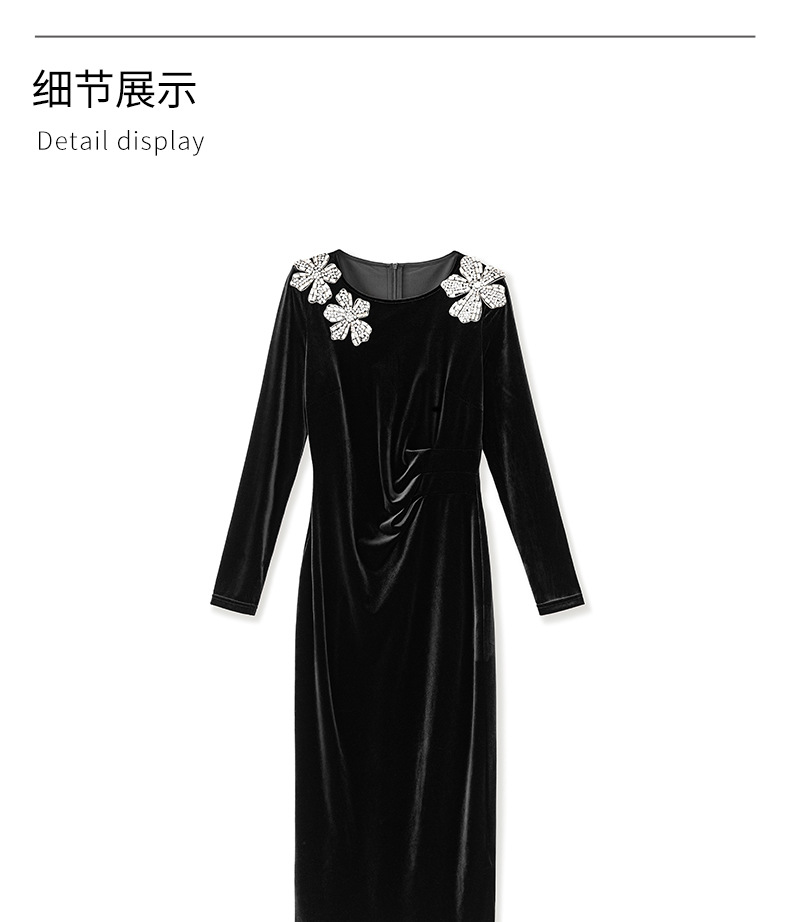 【高货wl】全新升级【铂金会员312/天猫419/差价107】(42554) 洛诗琳早春钉珠花朵丝绒长袖高级感修身气质中式连衣裙