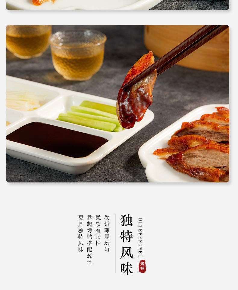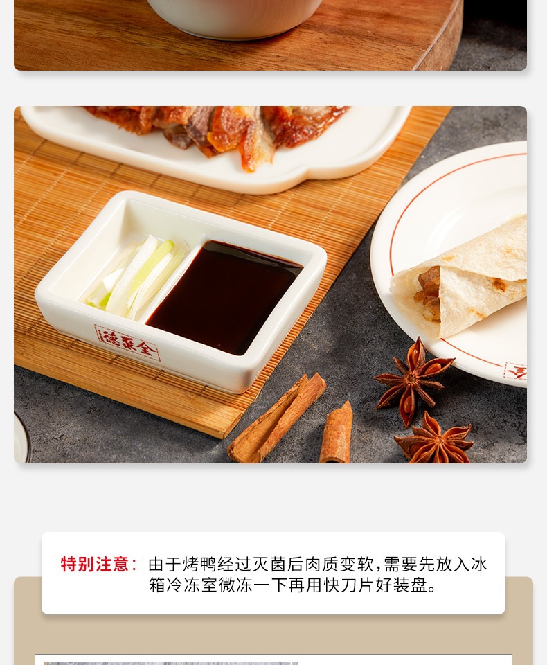 前门店【原味真空烤鸭礼袋装】包含真空烤鸭1只、卷饼2袋、甜面酱1袋