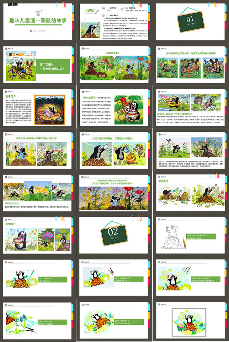 我们知道鼹鼠大都生活在稀疏灌丛林、农耕地和菜园地等等地方,在地下洞穴生活。动画片中也出现了很多经典的场景,结合自己的想象,进行绘画。在绘画时大胆地展开创想,表现出充满生机、美丽的环境,结合剪贴的方式来表现植物的多样性。并用邻近色、对比色来表现画面的丰富的色彩变化。微信公众号:创意少儿美术馆。