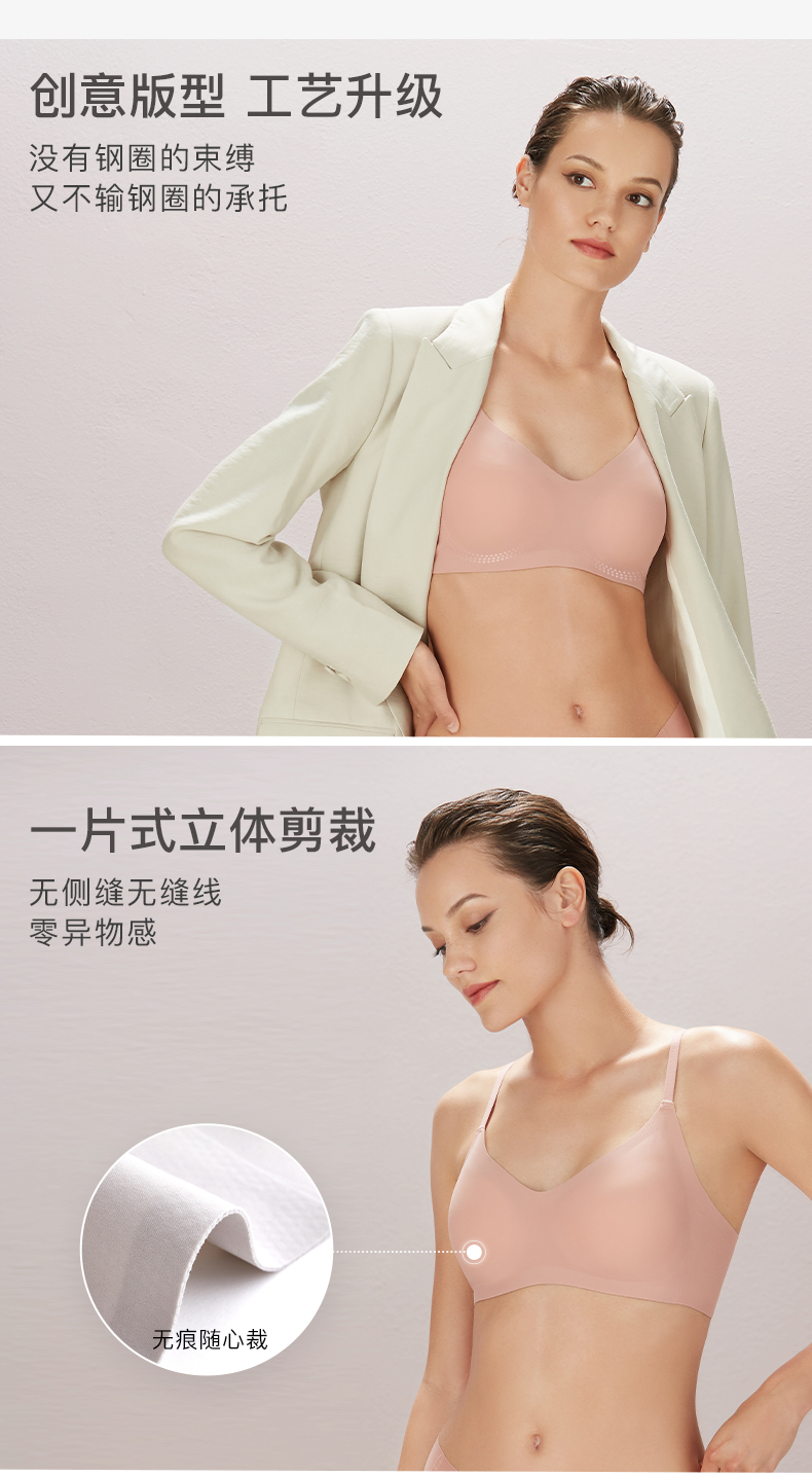 Ubras【一体织】小胸一片式无钢托无痕舒适睡眠吊带女文胸罩内衣