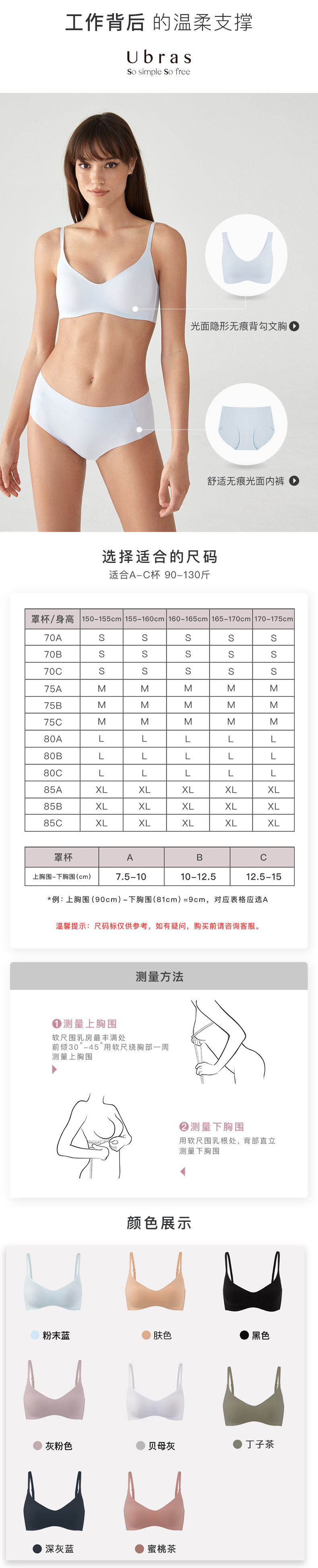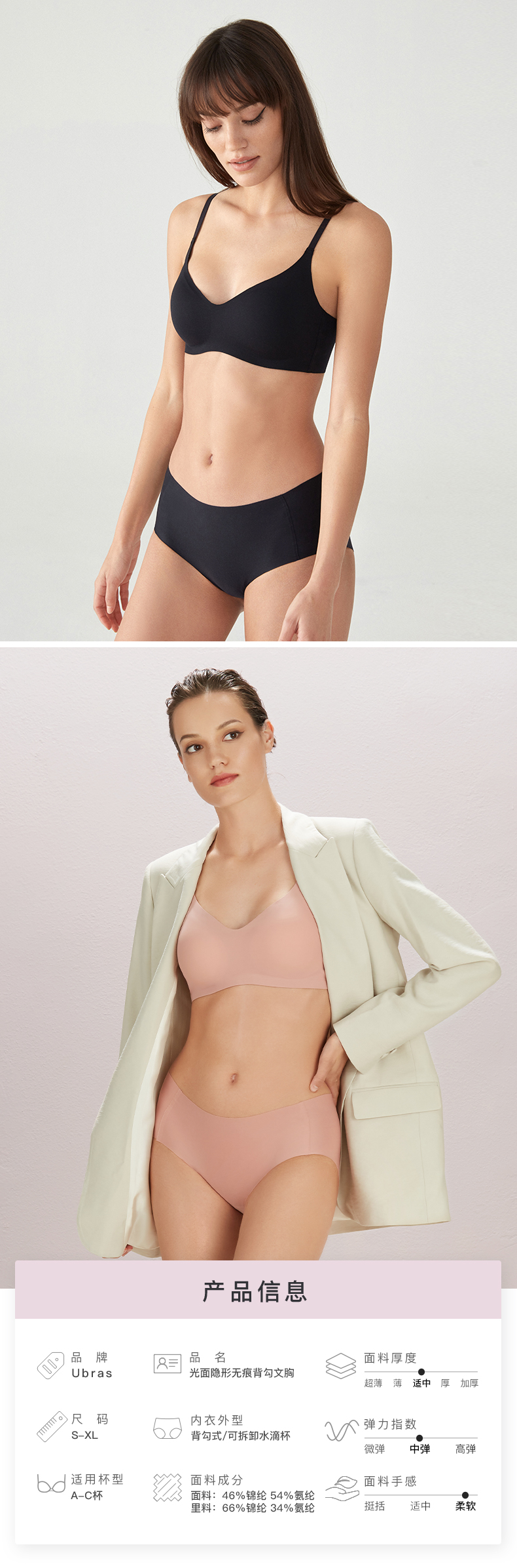 Ubras光面隐形背勾文胸无痕内衣美背舒适女无钢圈胸罩