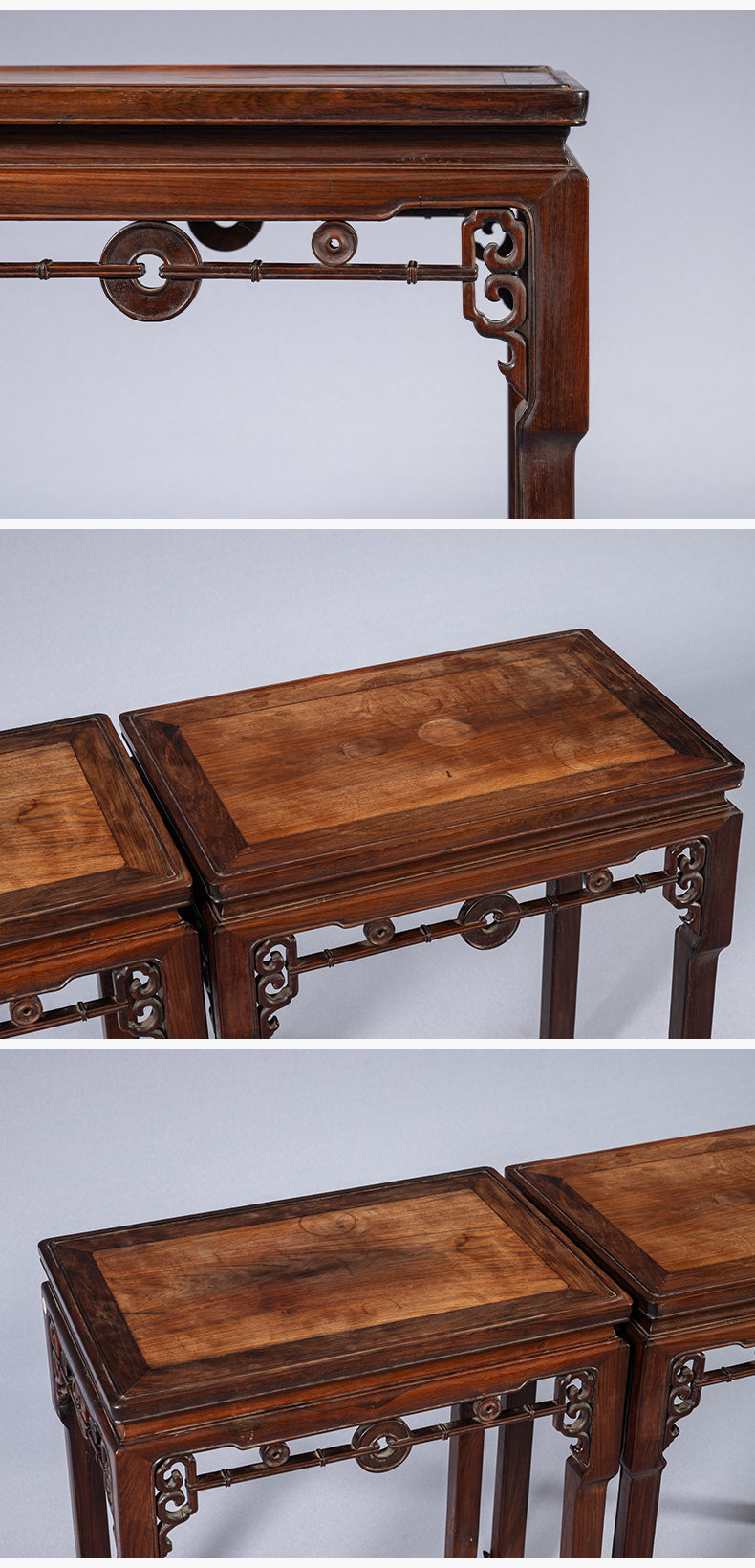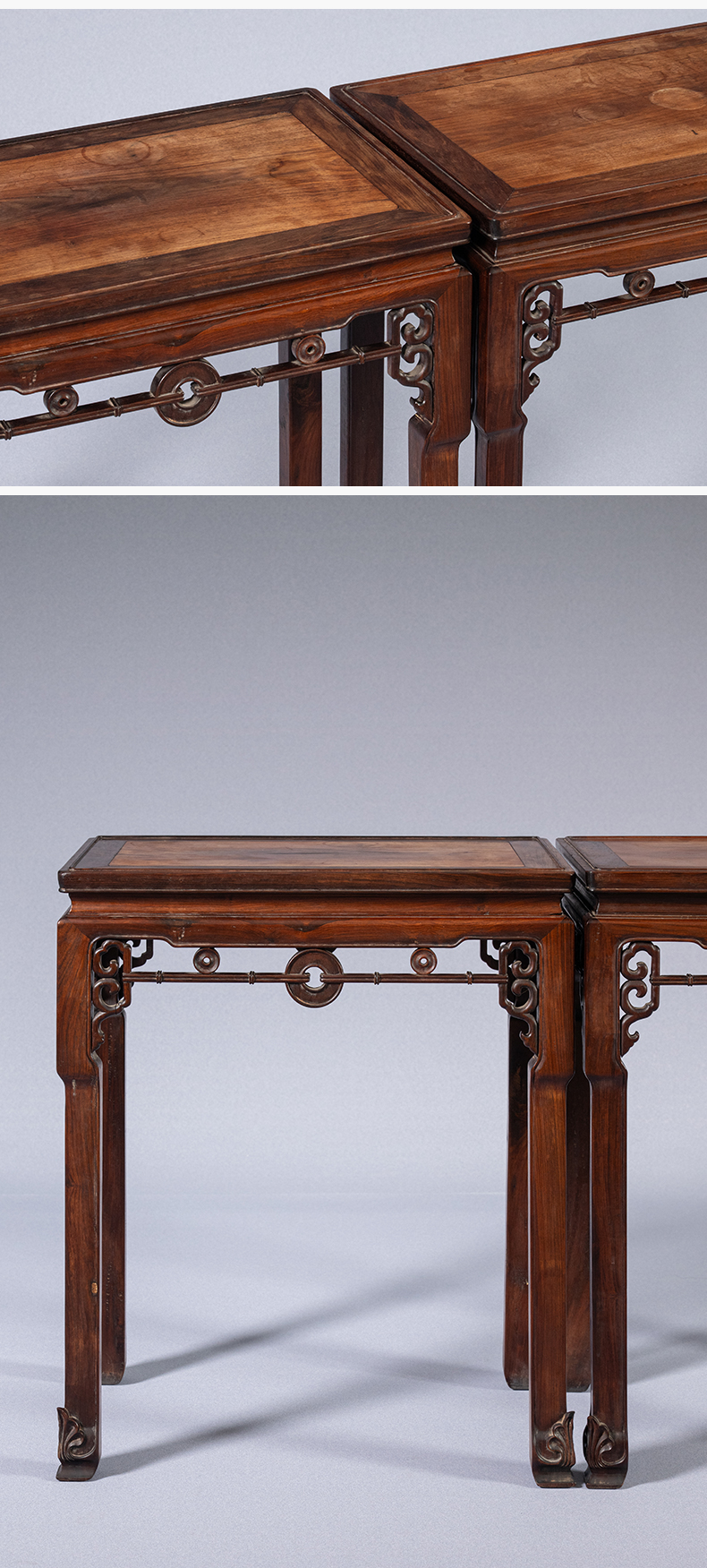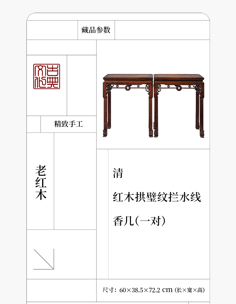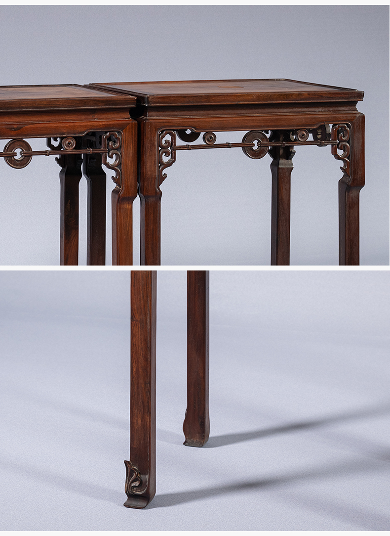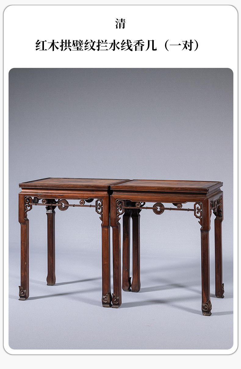 清 红木拱璧纹拦水线香几(一对)