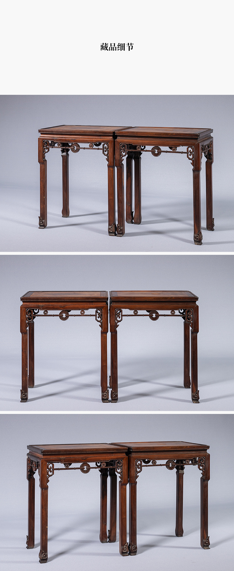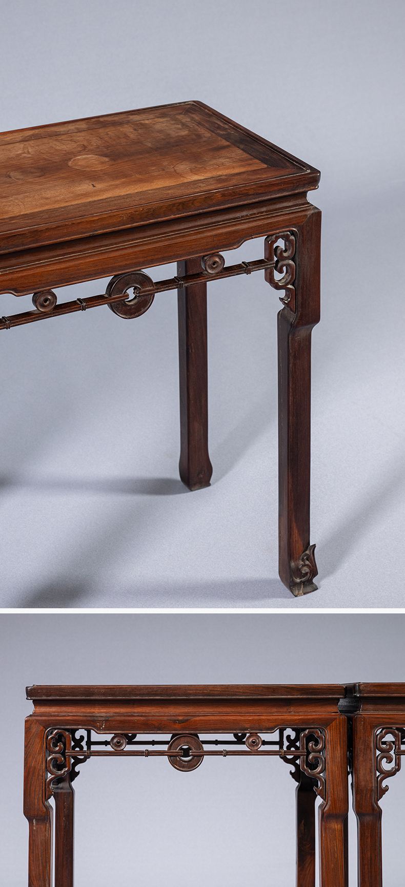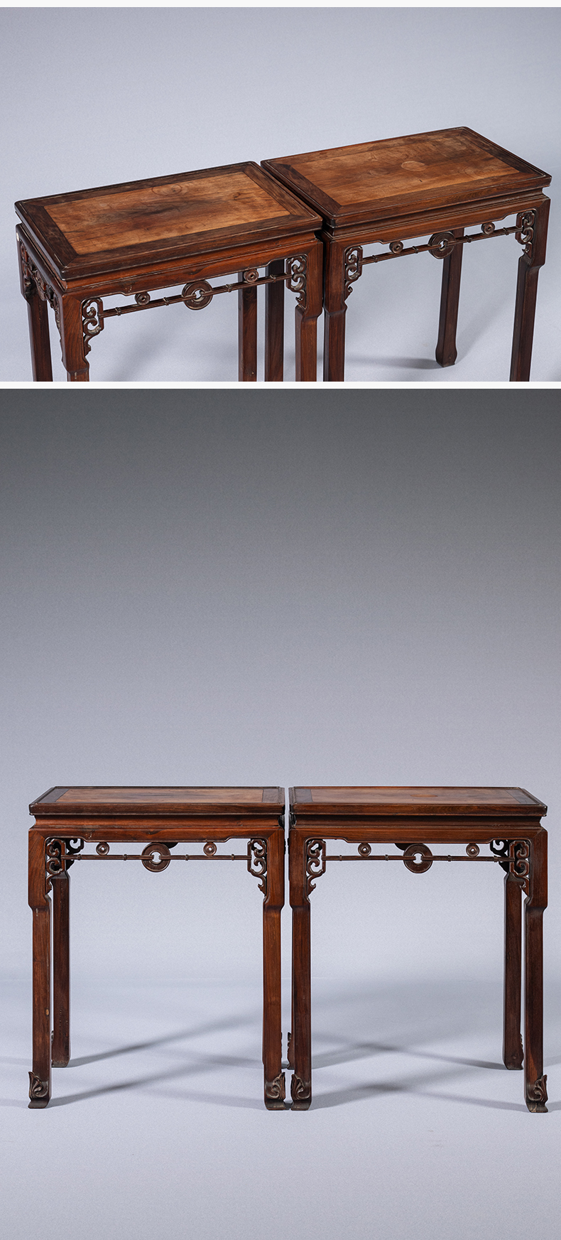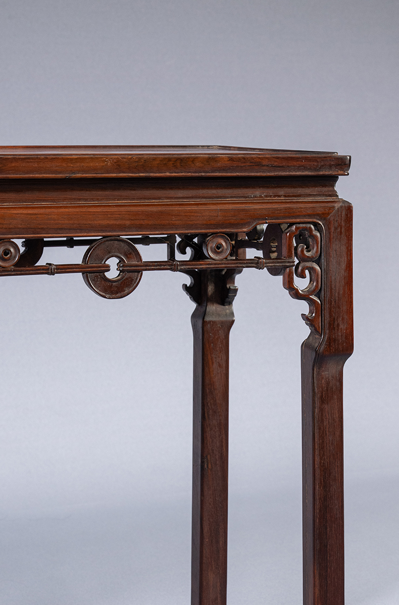 清 红木拱璧纹拦水线香几(一对)