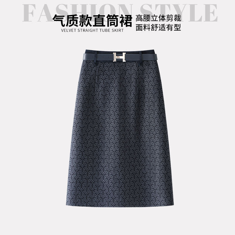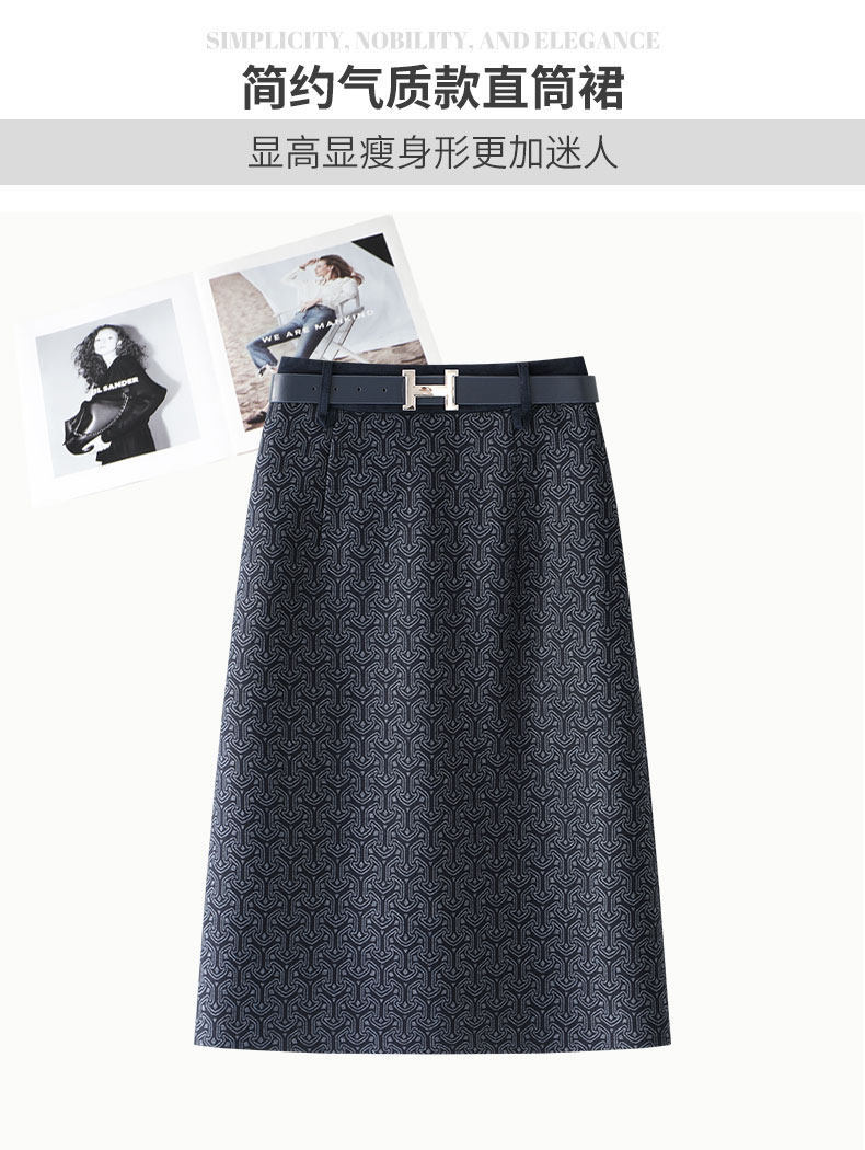 丁摩 春秋季新款轻奢千鸟格气质修身压纹直筒百搭半身裙5ZF-5136