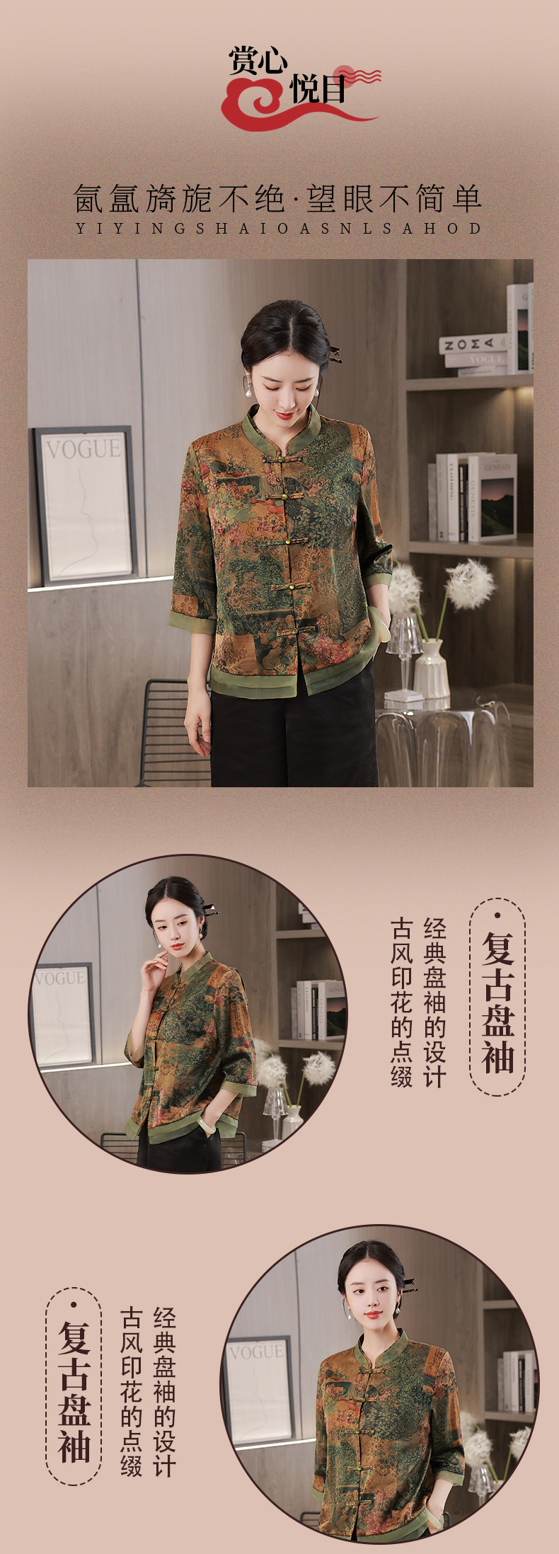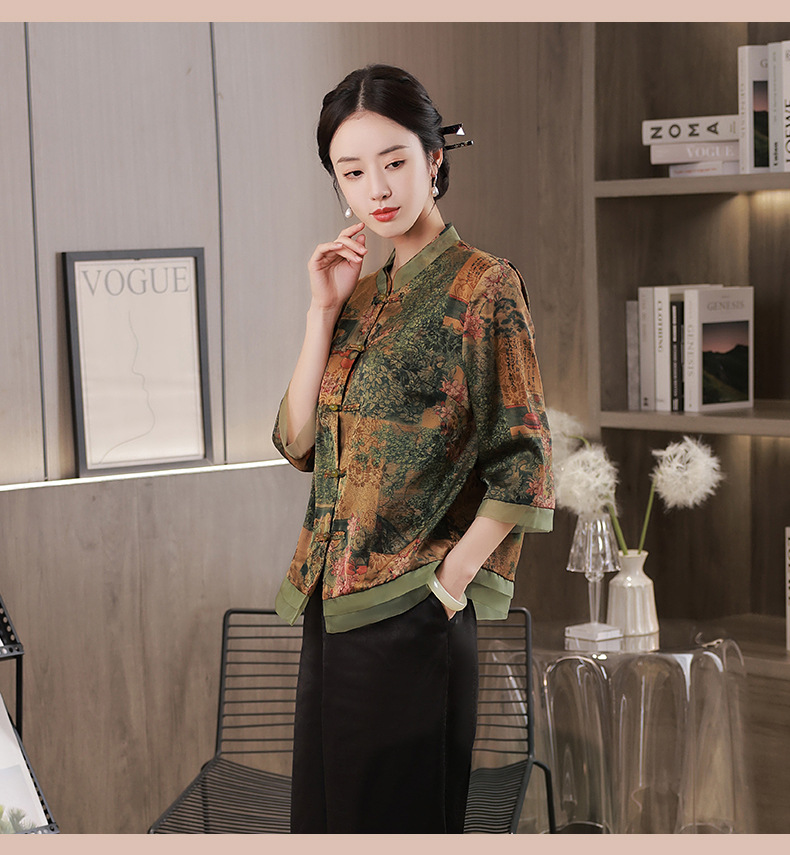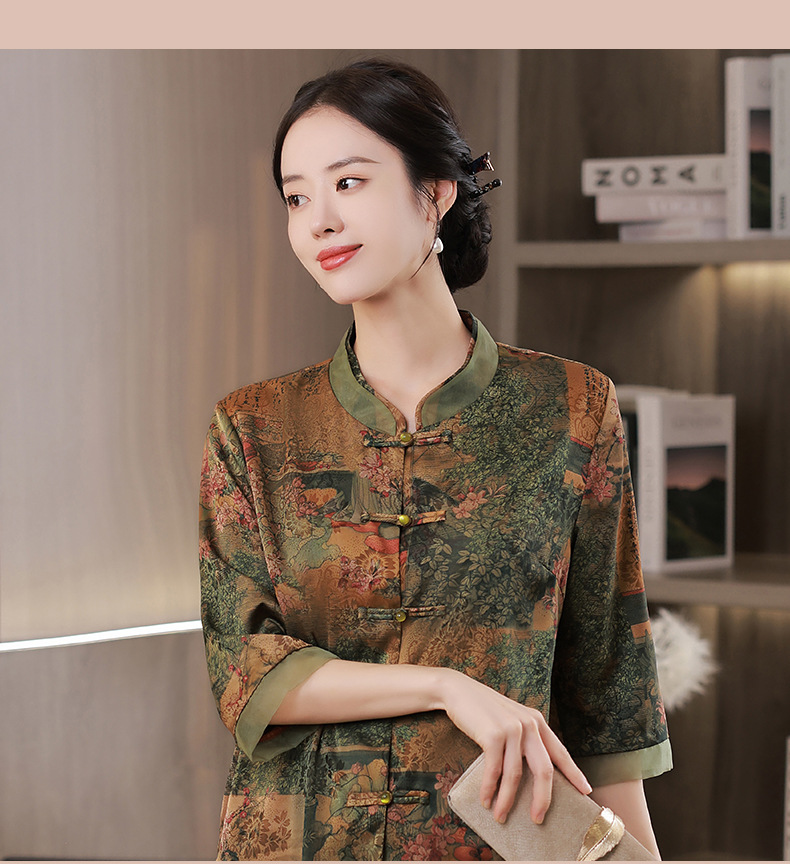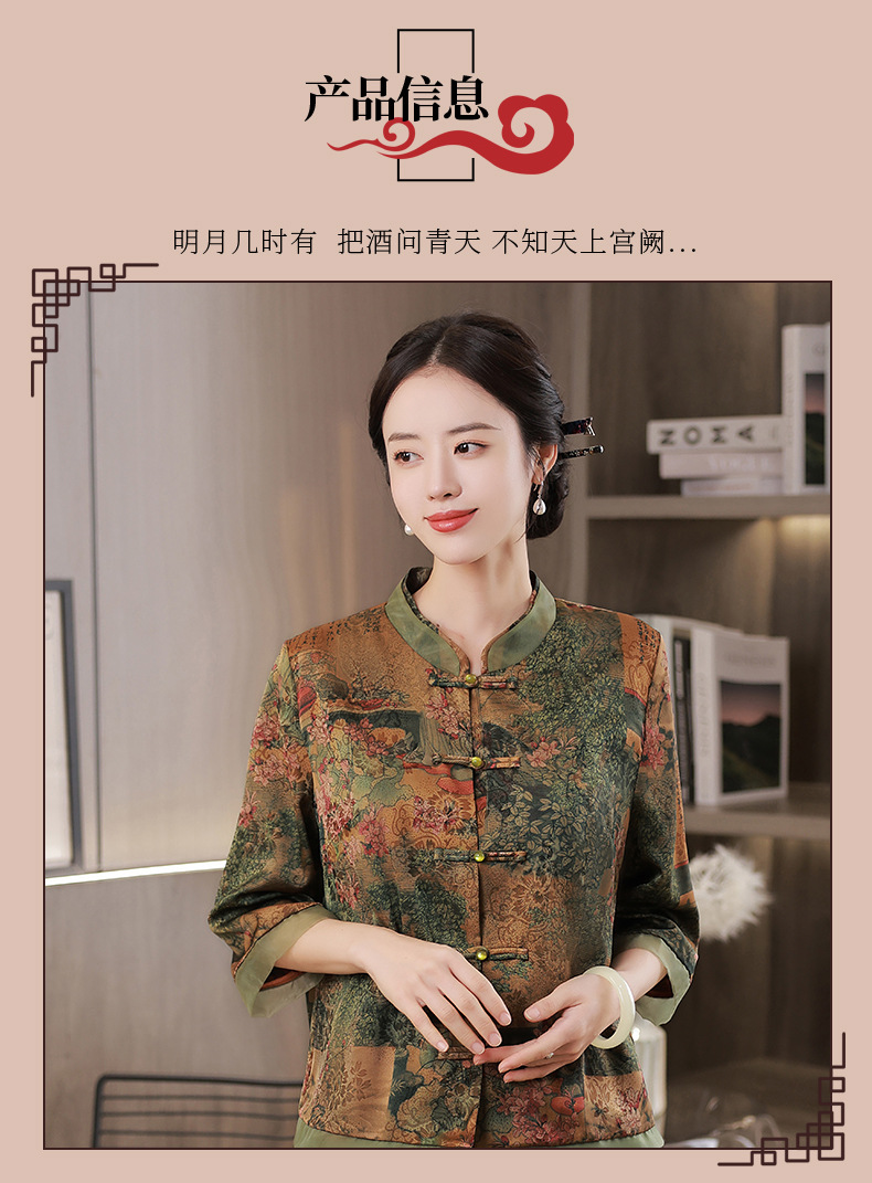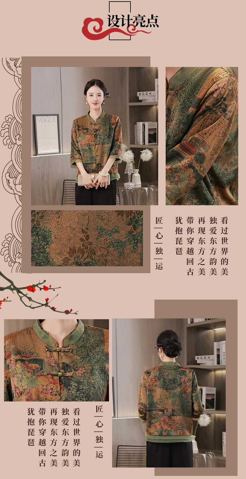 复古妈妈装日常七分袖花罗上衣JLM10593