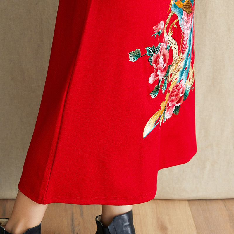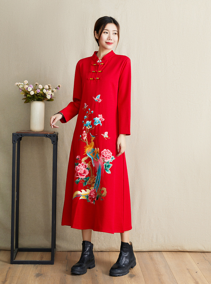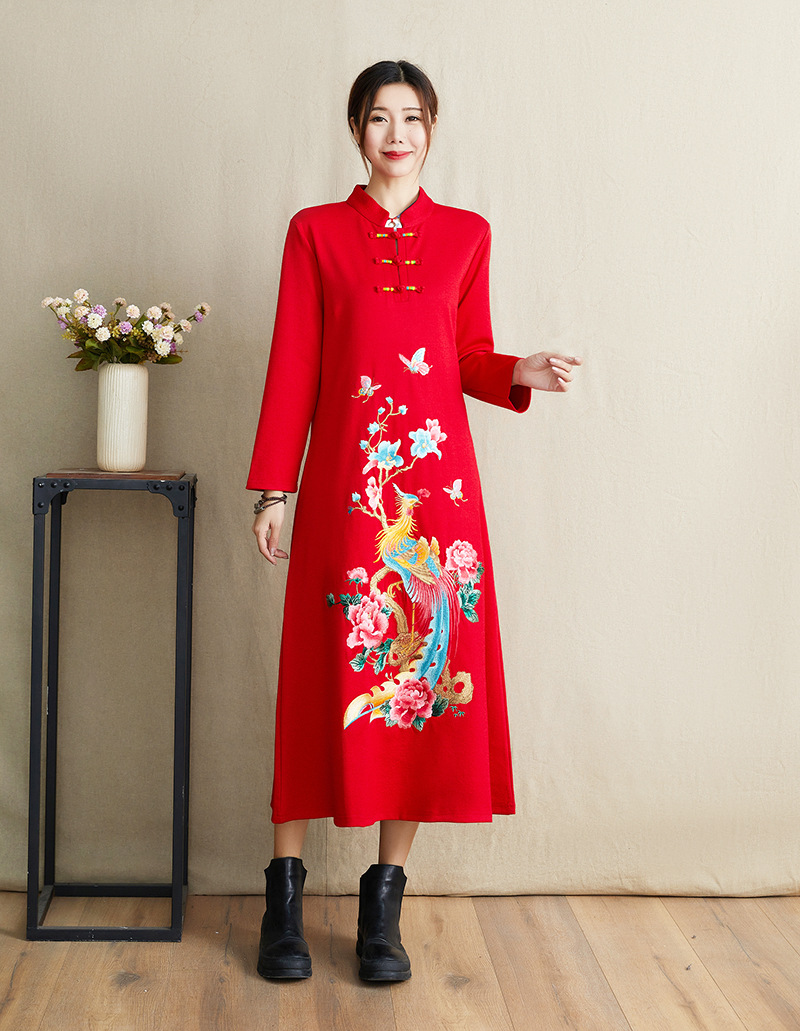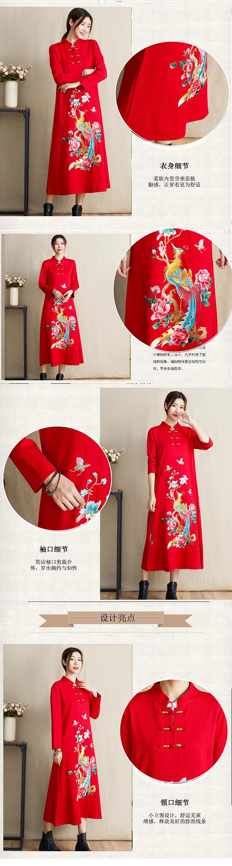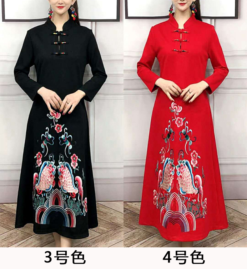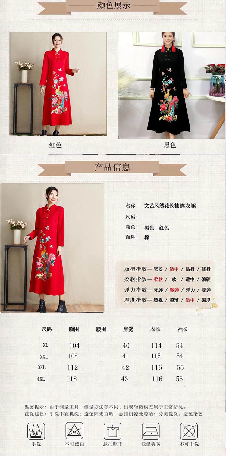 JBL-8806秋冬大码修身复古民族风精美刺绣连衣裙