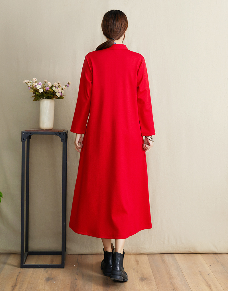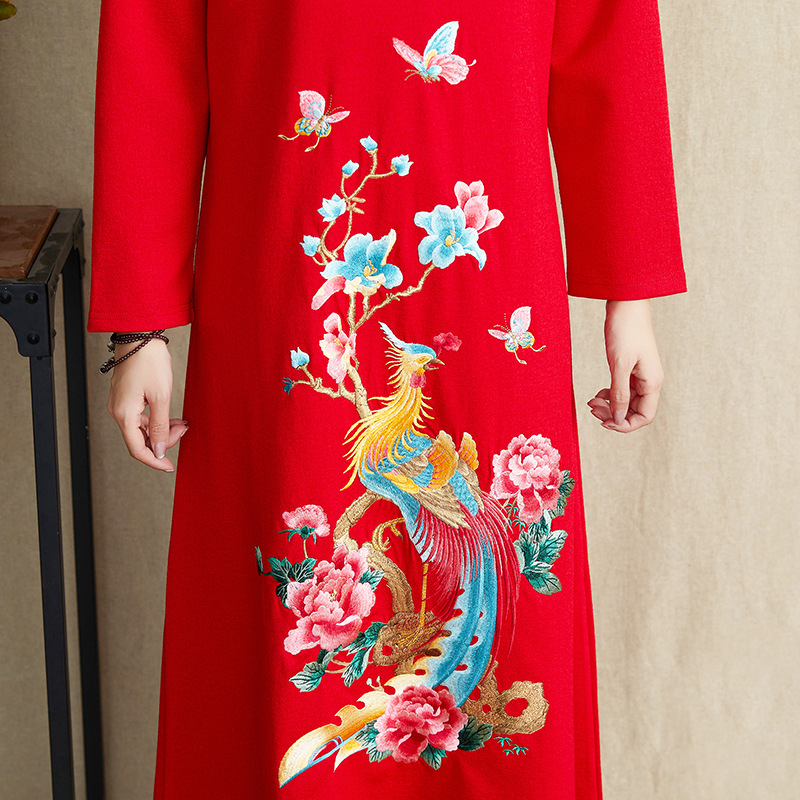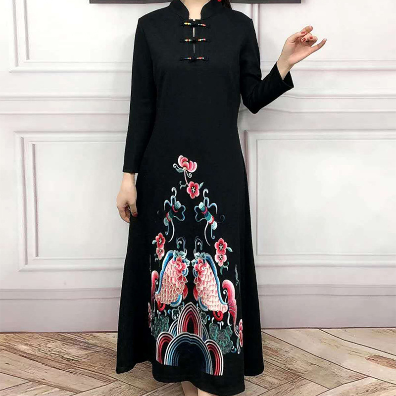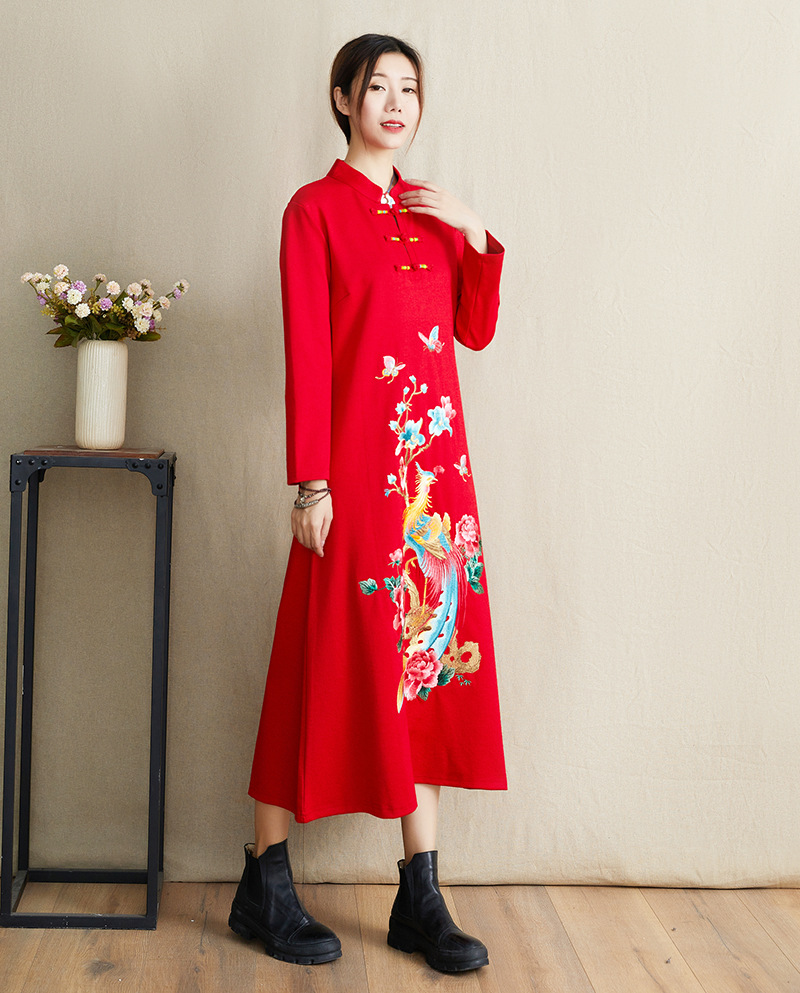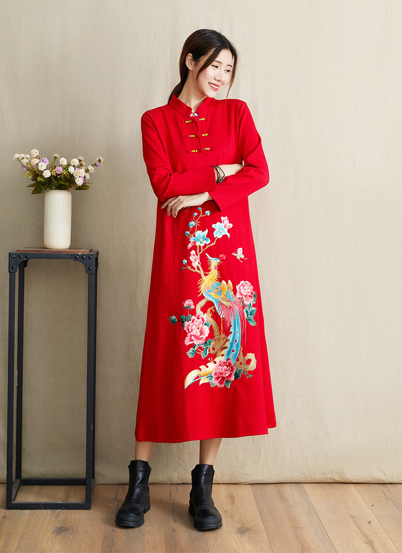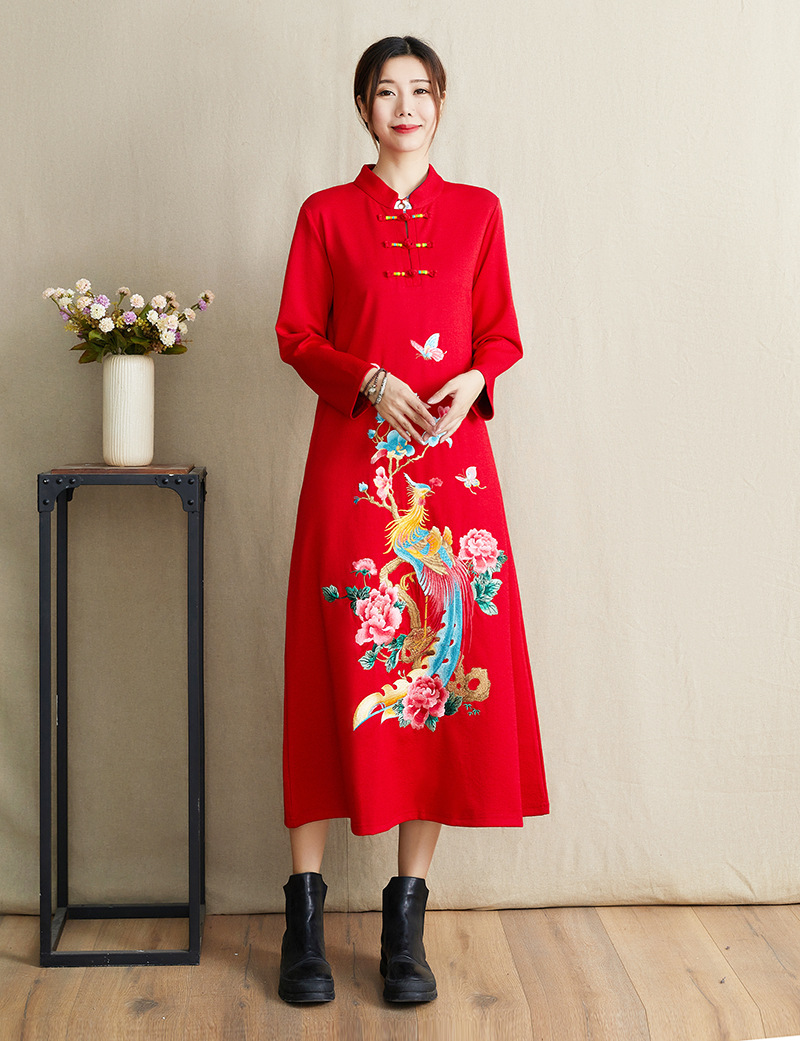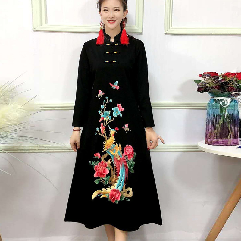 JBL-8806秋冬大码修身复古民族风精美刺绣连衣裙