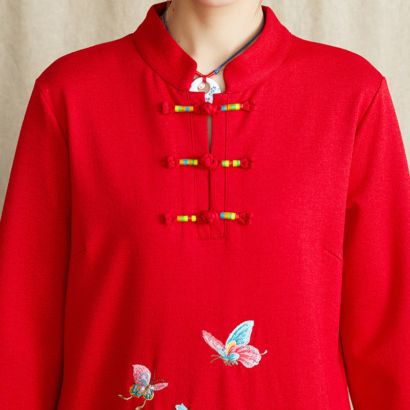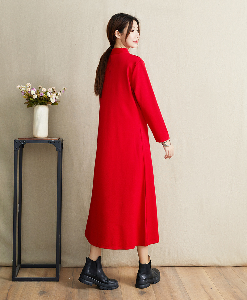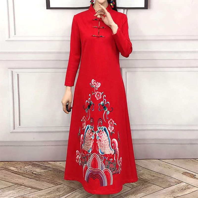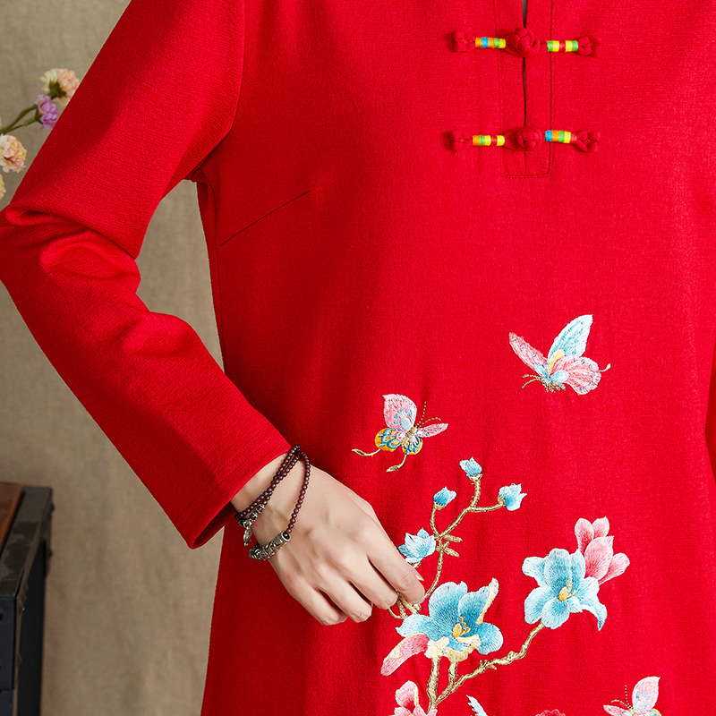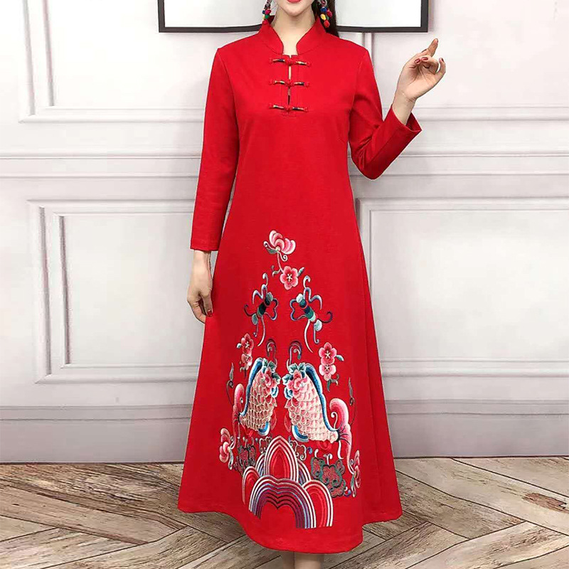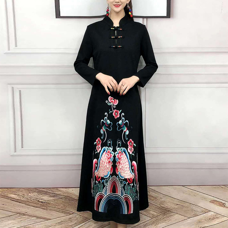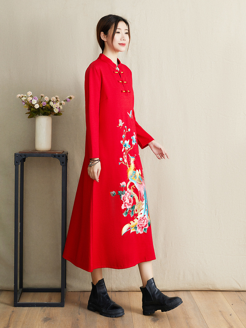 JBL-8806秋冬大码修身复古民族风精美刺绣连衣裙