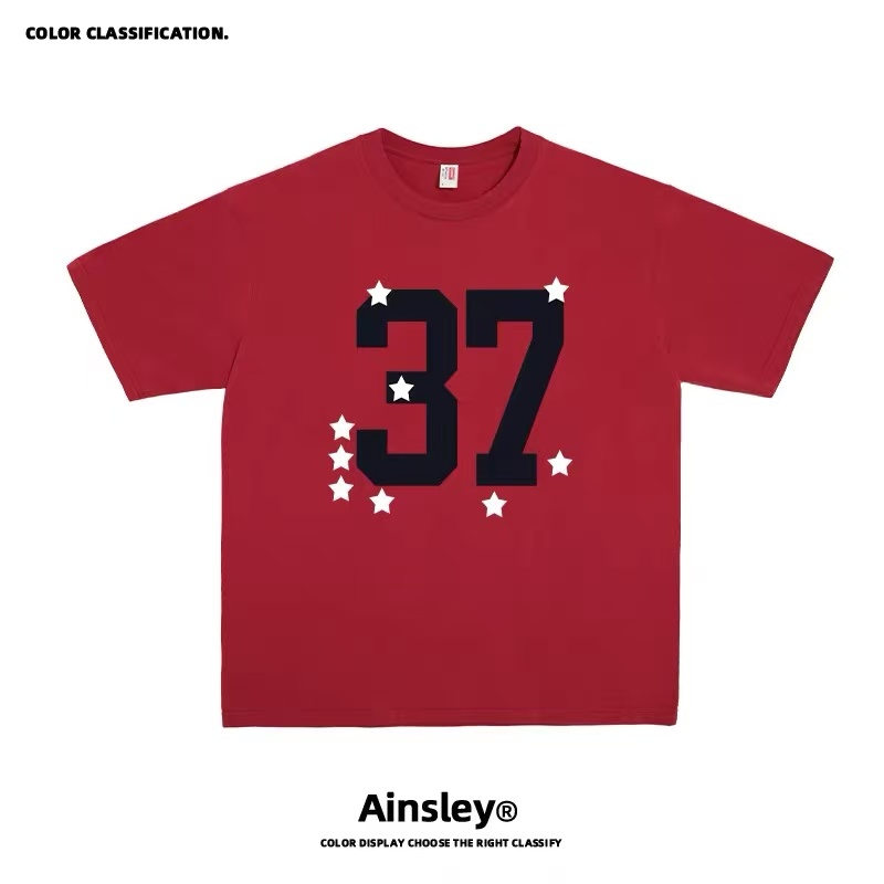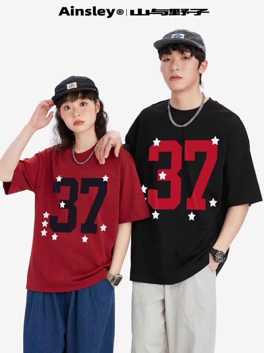 清仓价2025~情侣潮牌100%棉复古星星37数字短袖T恤-喜出