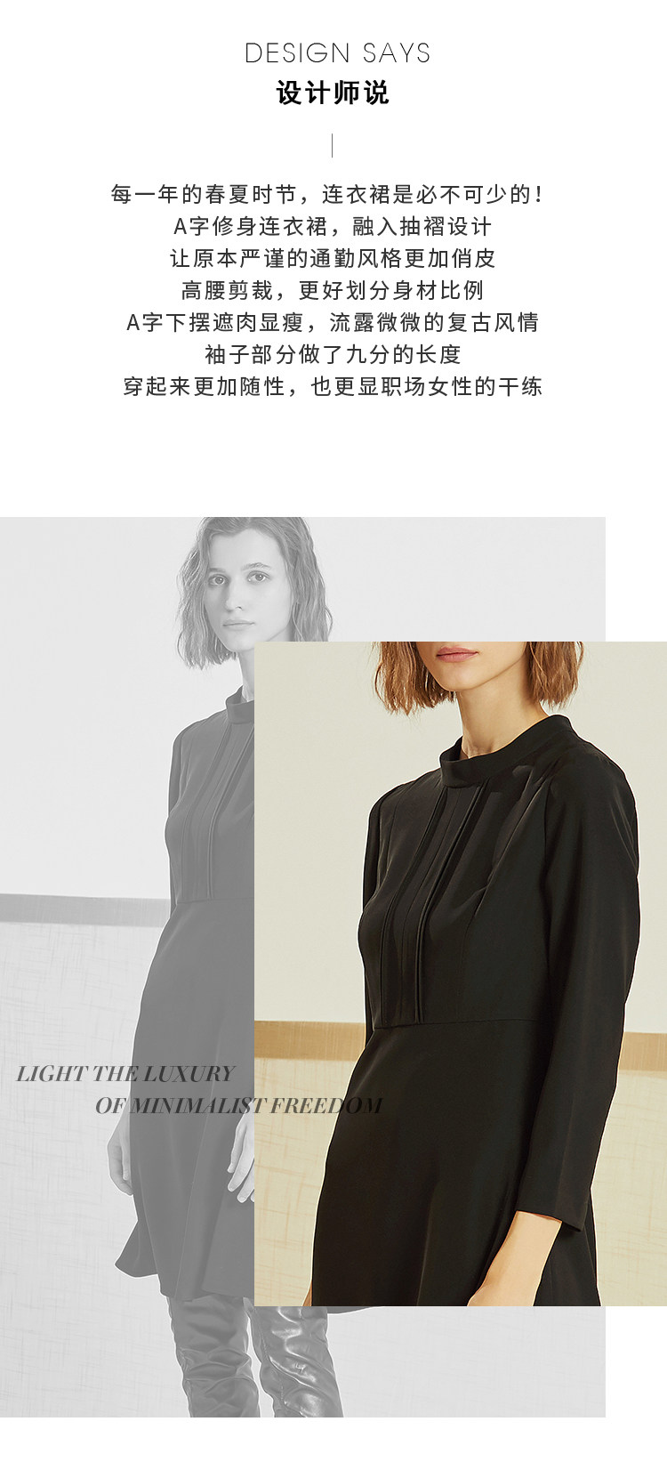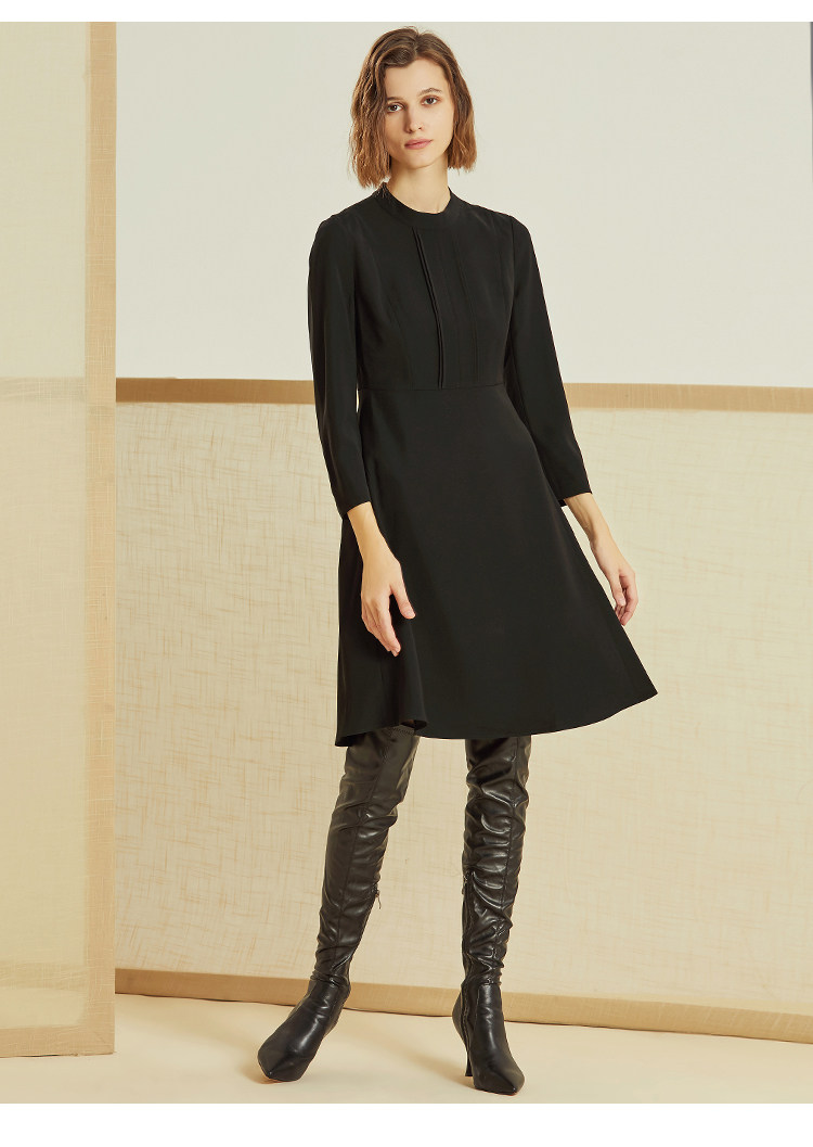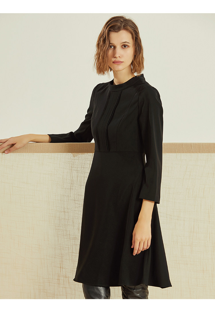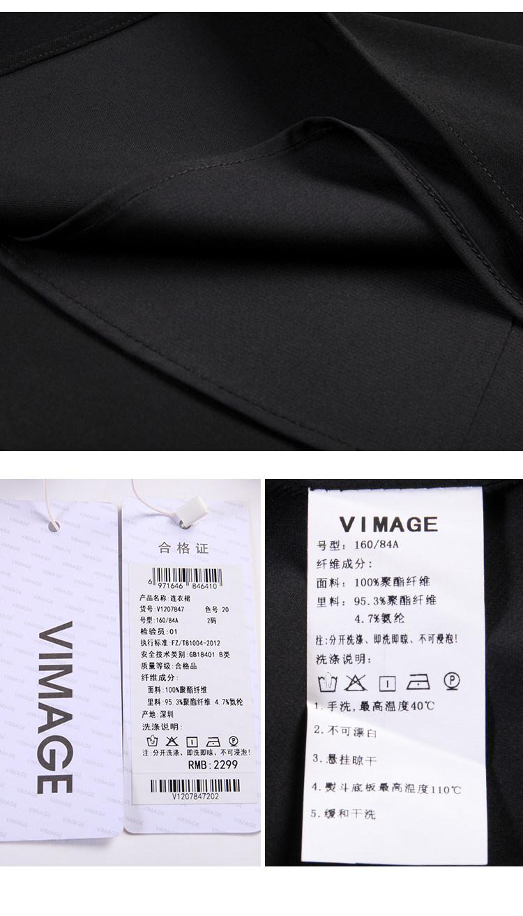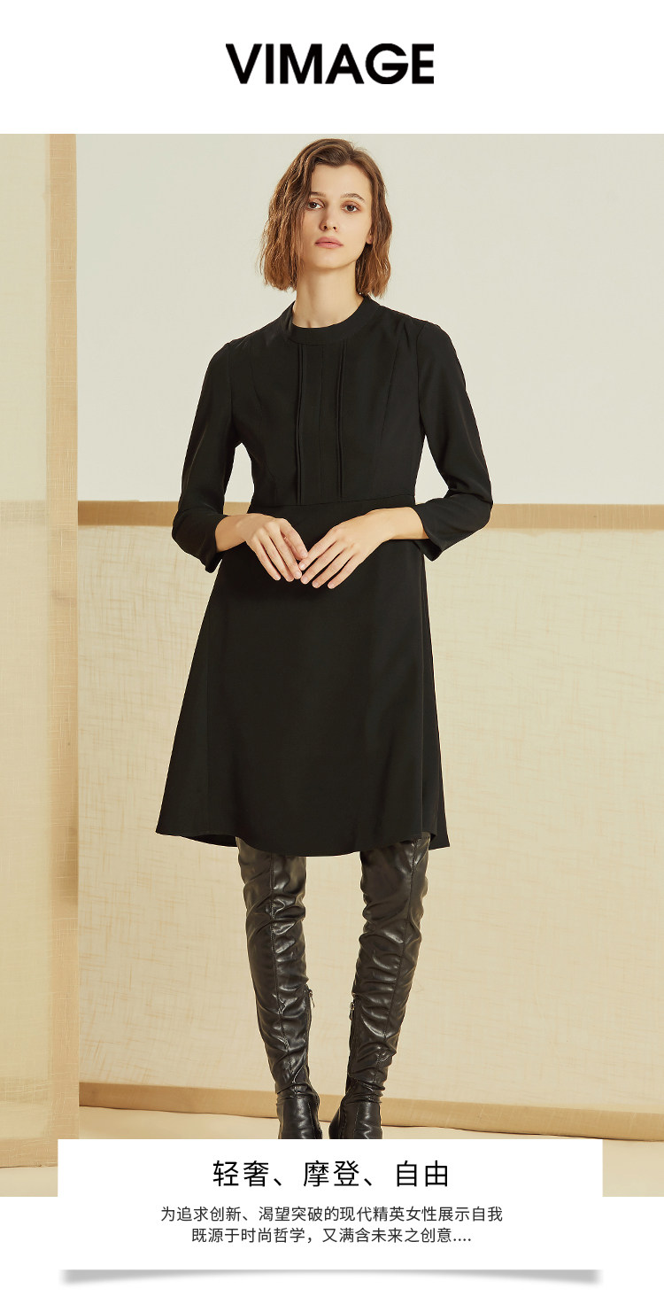 VIMAGE-纬漫纪春款通勤职业纯色百搭收腰显瘦连衣裙女中V1207847