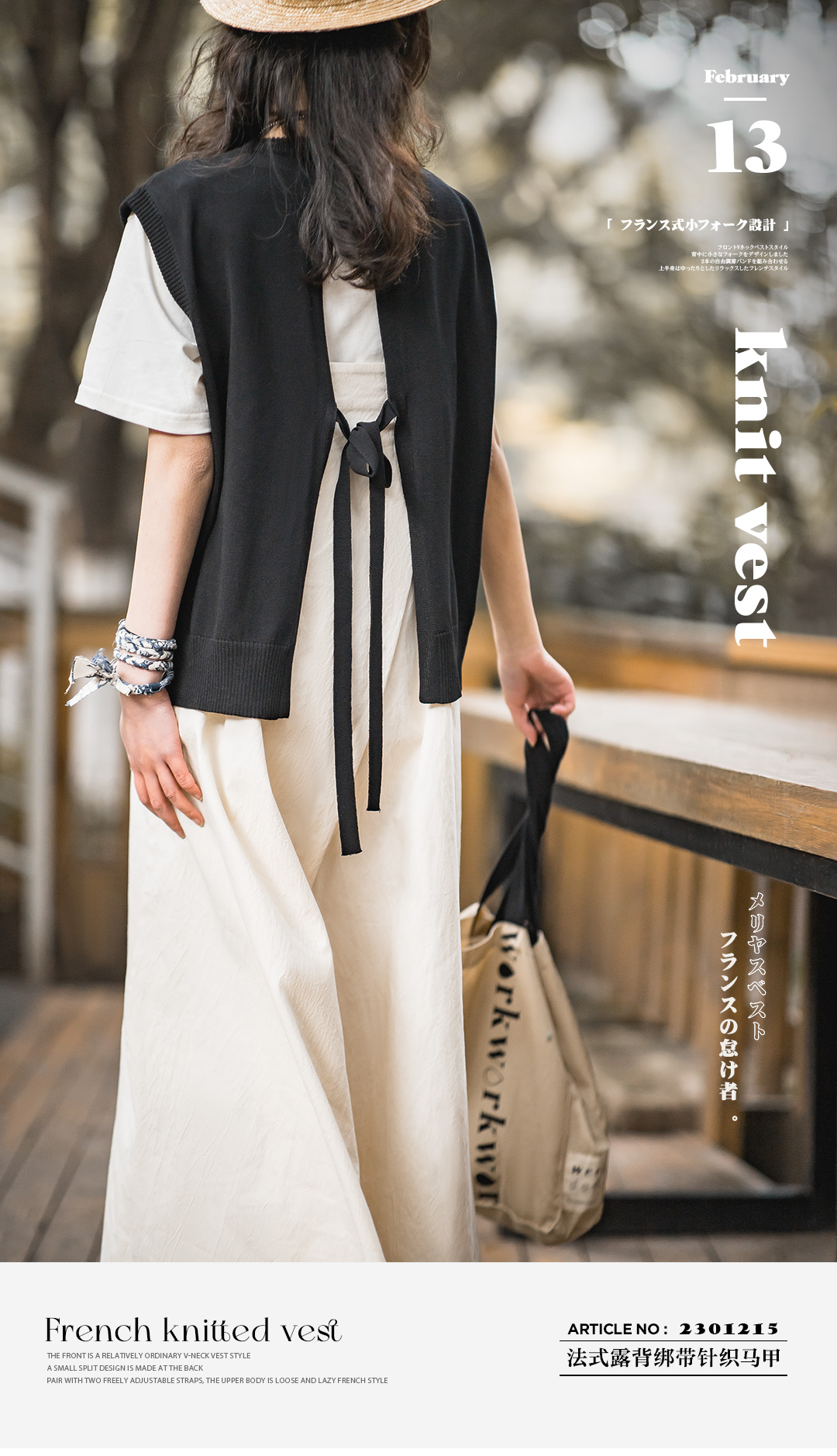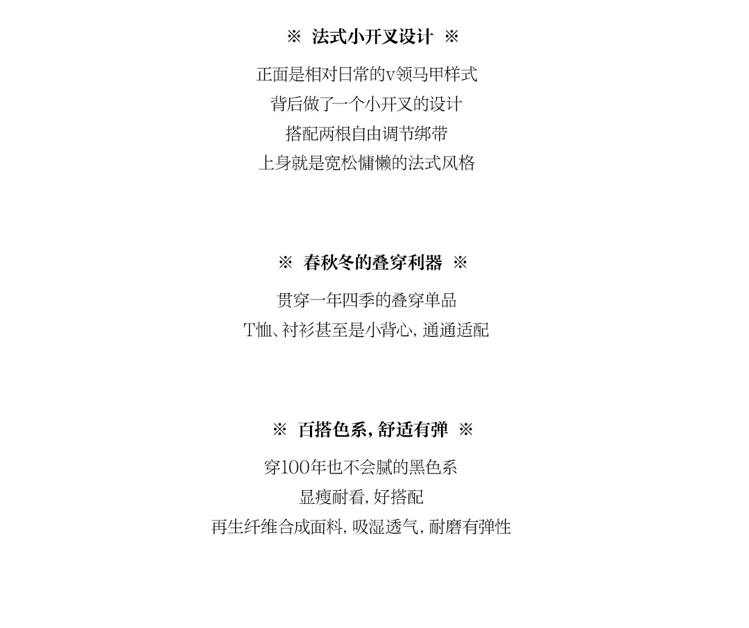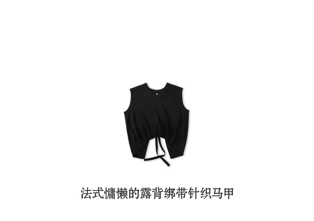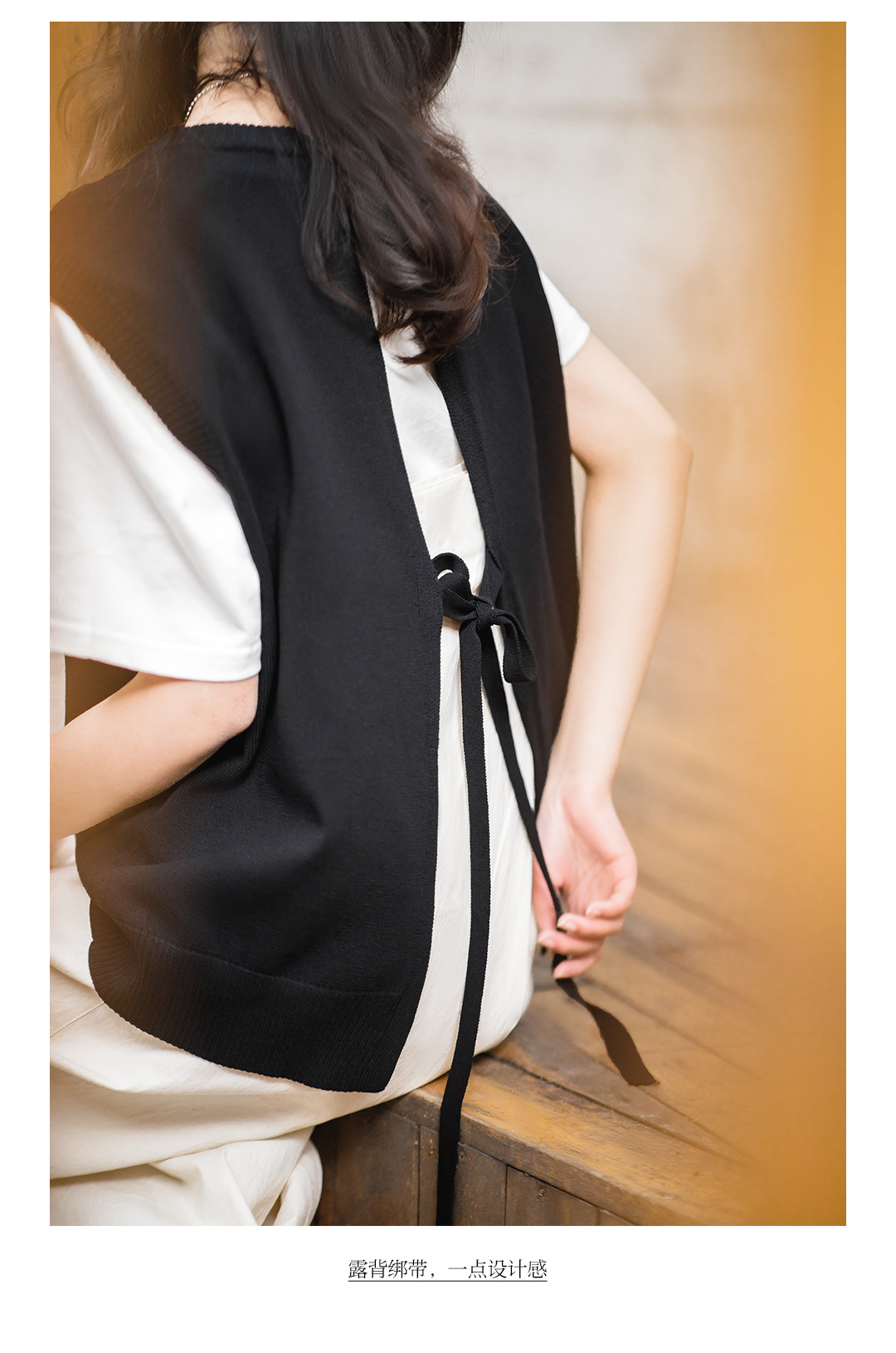 【马登】女装休闲v领系带 叠穿针织马甲无袖慵懒背心坎肩上衣