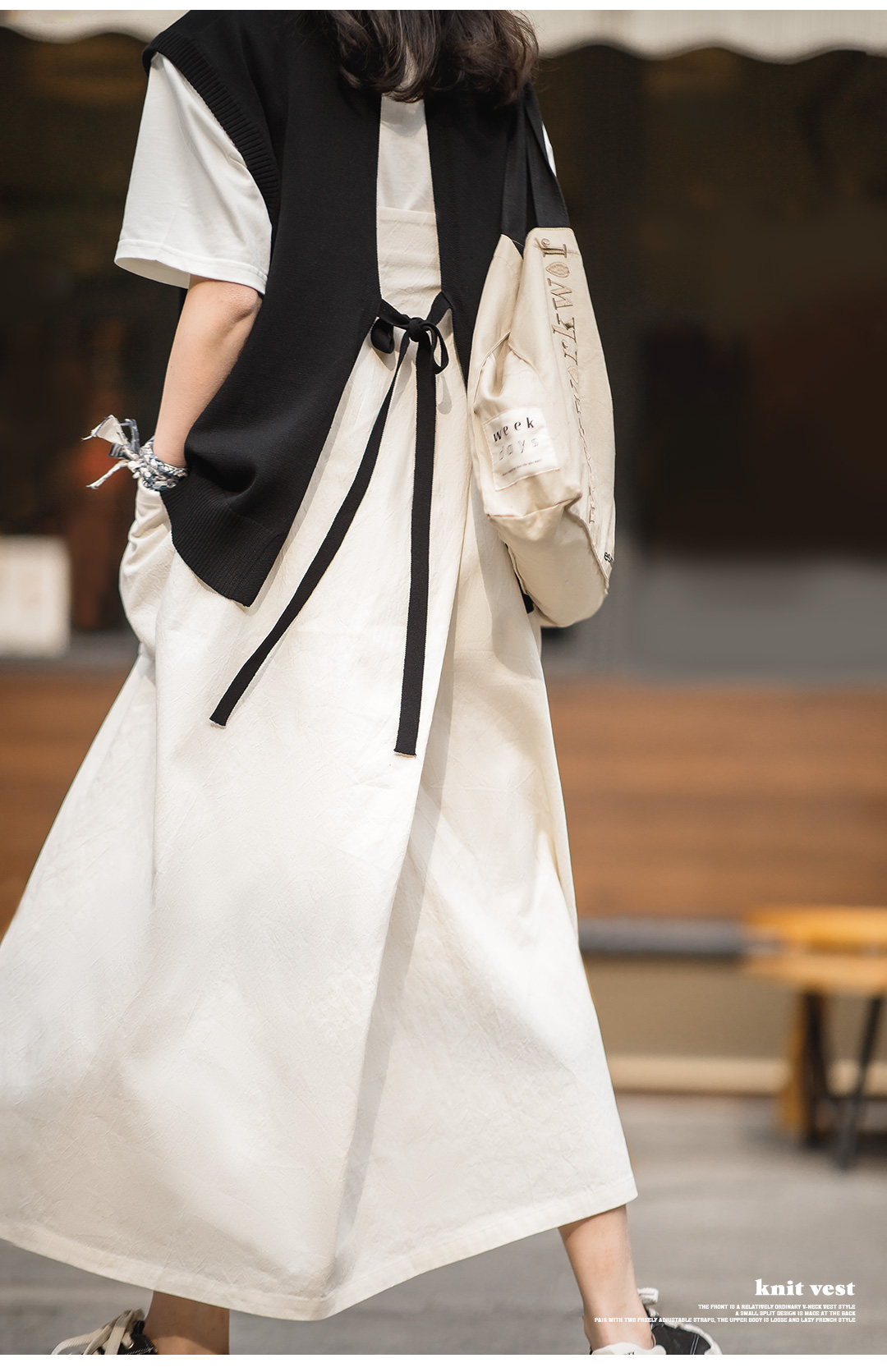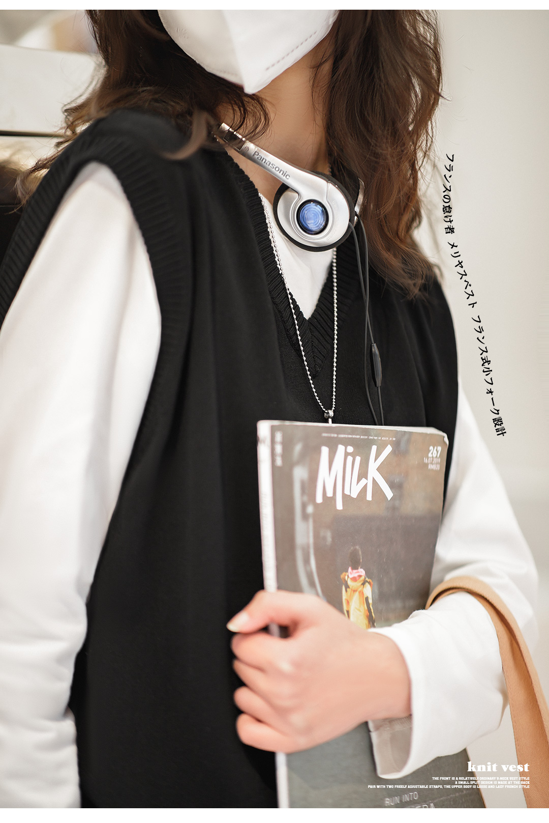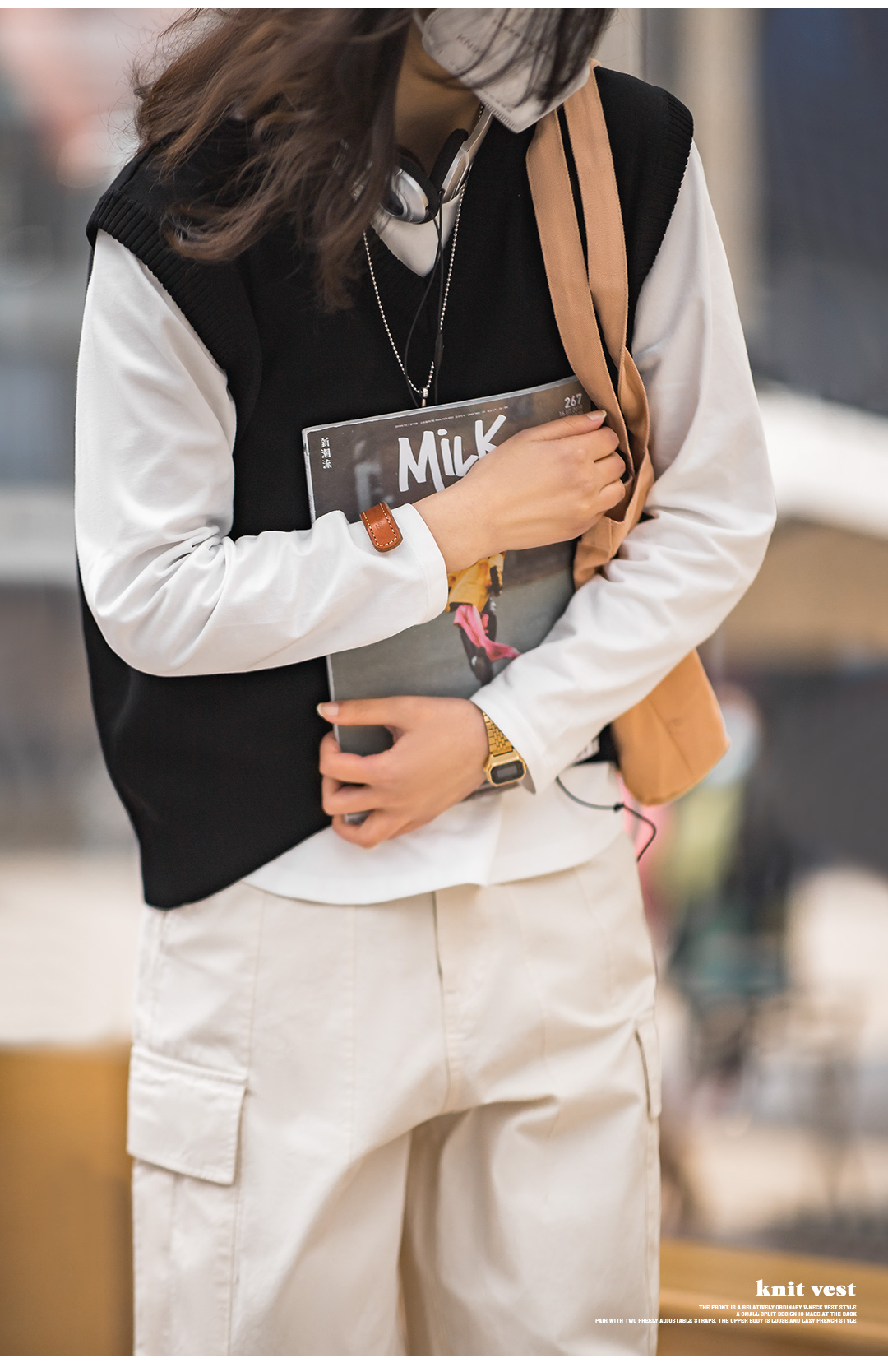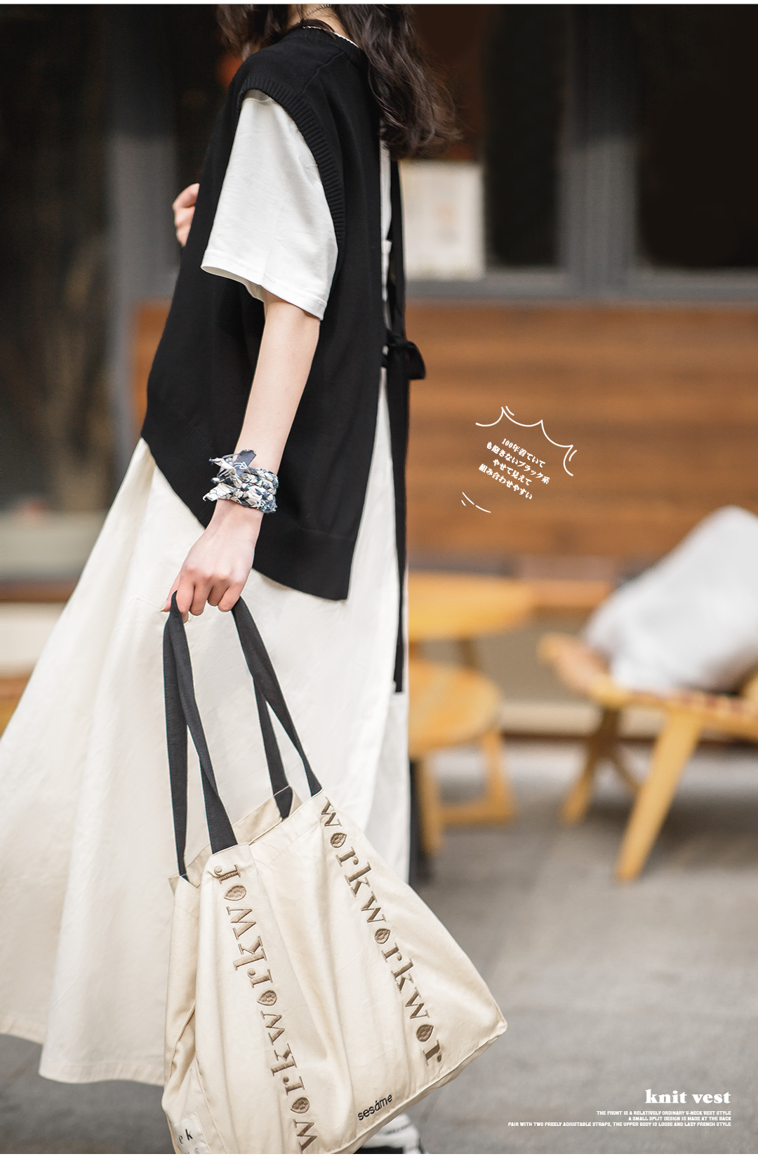 【马登】女装休闲v领系带 叠穿针织马甲无袖慵懒背心坎肩上衣
