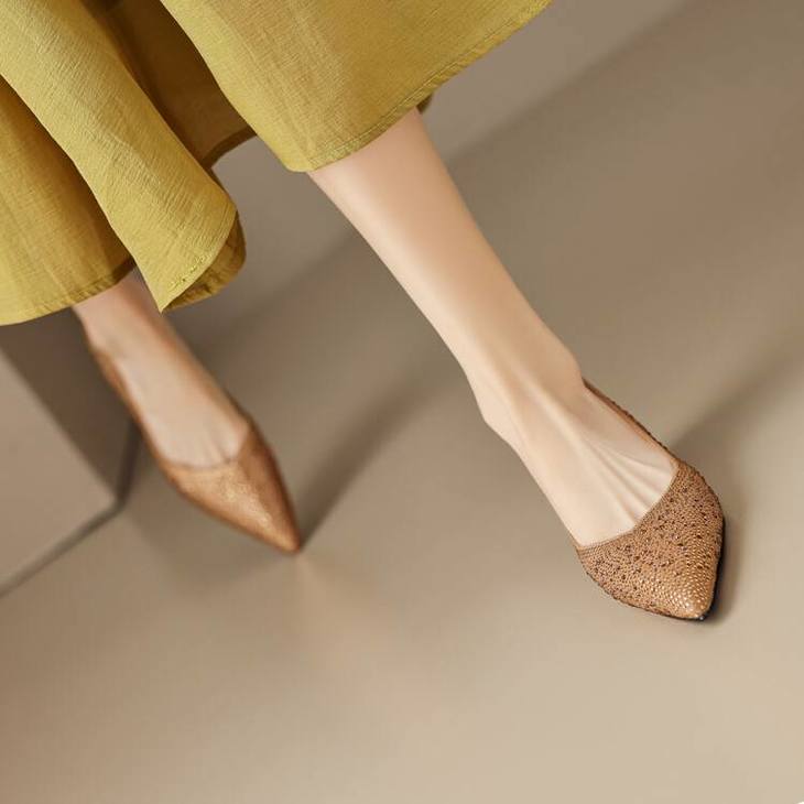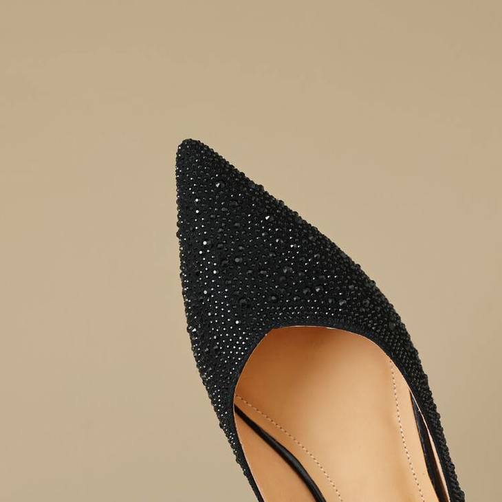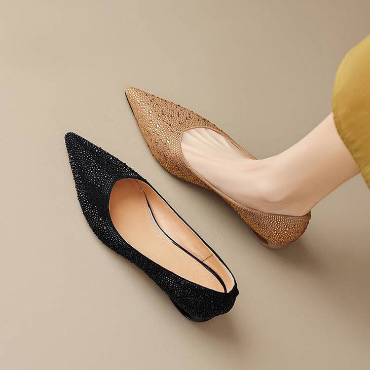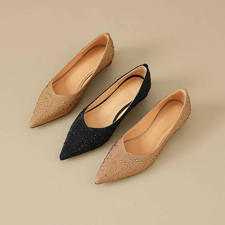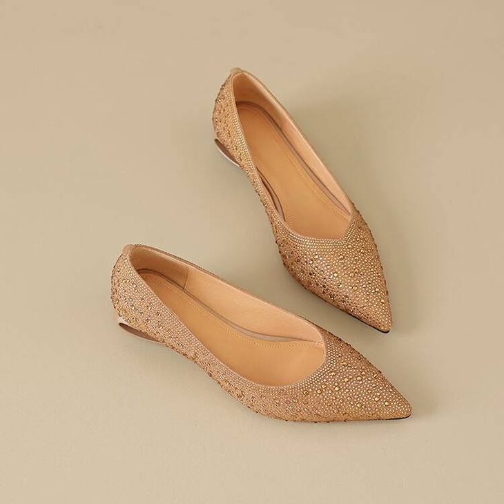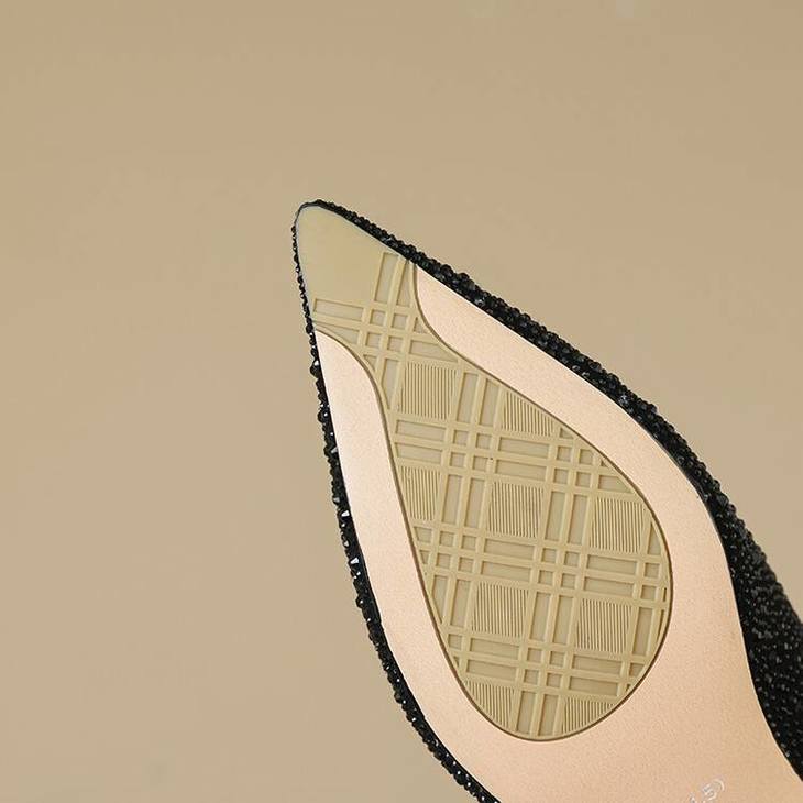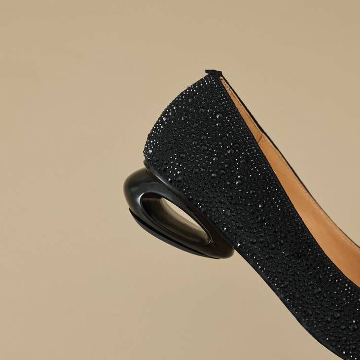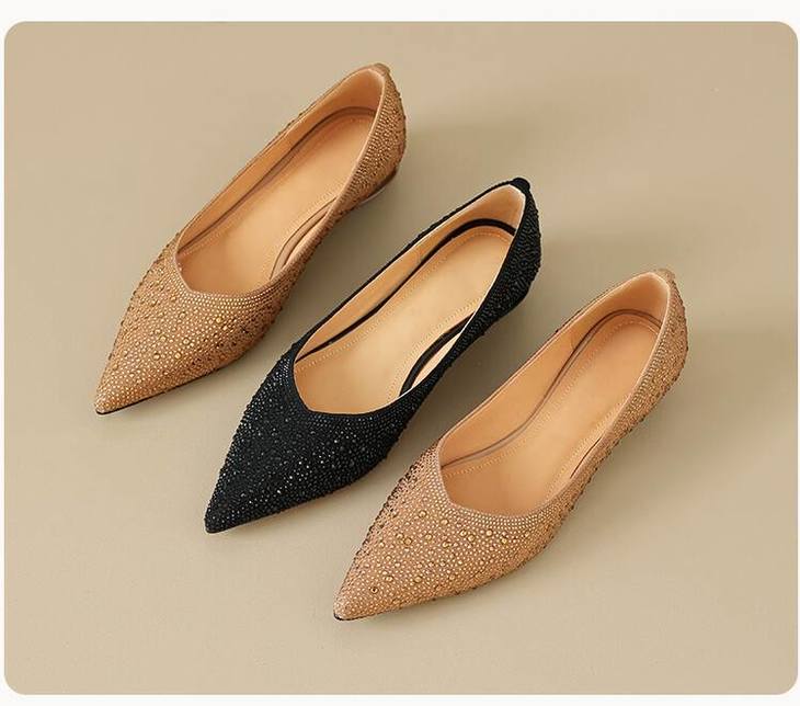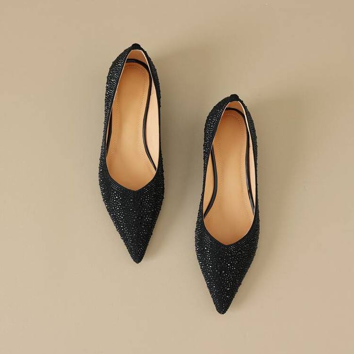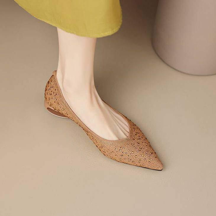 【预售5天】新款尖头真皮中跟磨砂单鞋浅口时装鞋欧美舒适粗跟水钻女鞋夏QJR&G167-9