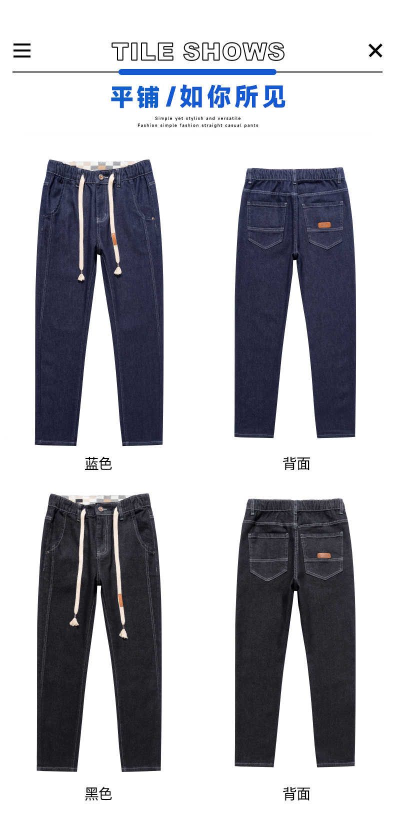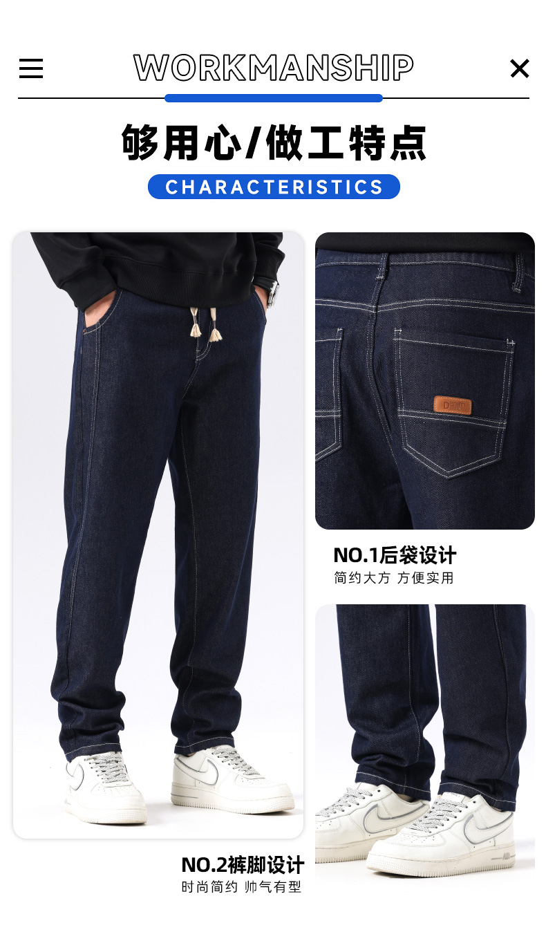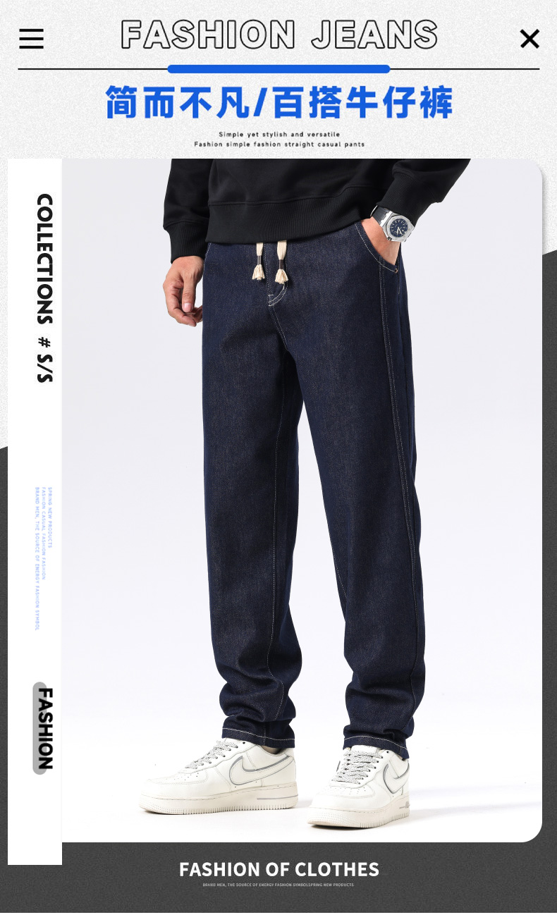 【新款DQ】大依优型大码直筒松紧腰牛仔裤长裤男舒适休闲简约百搭加肥加大男装潮款