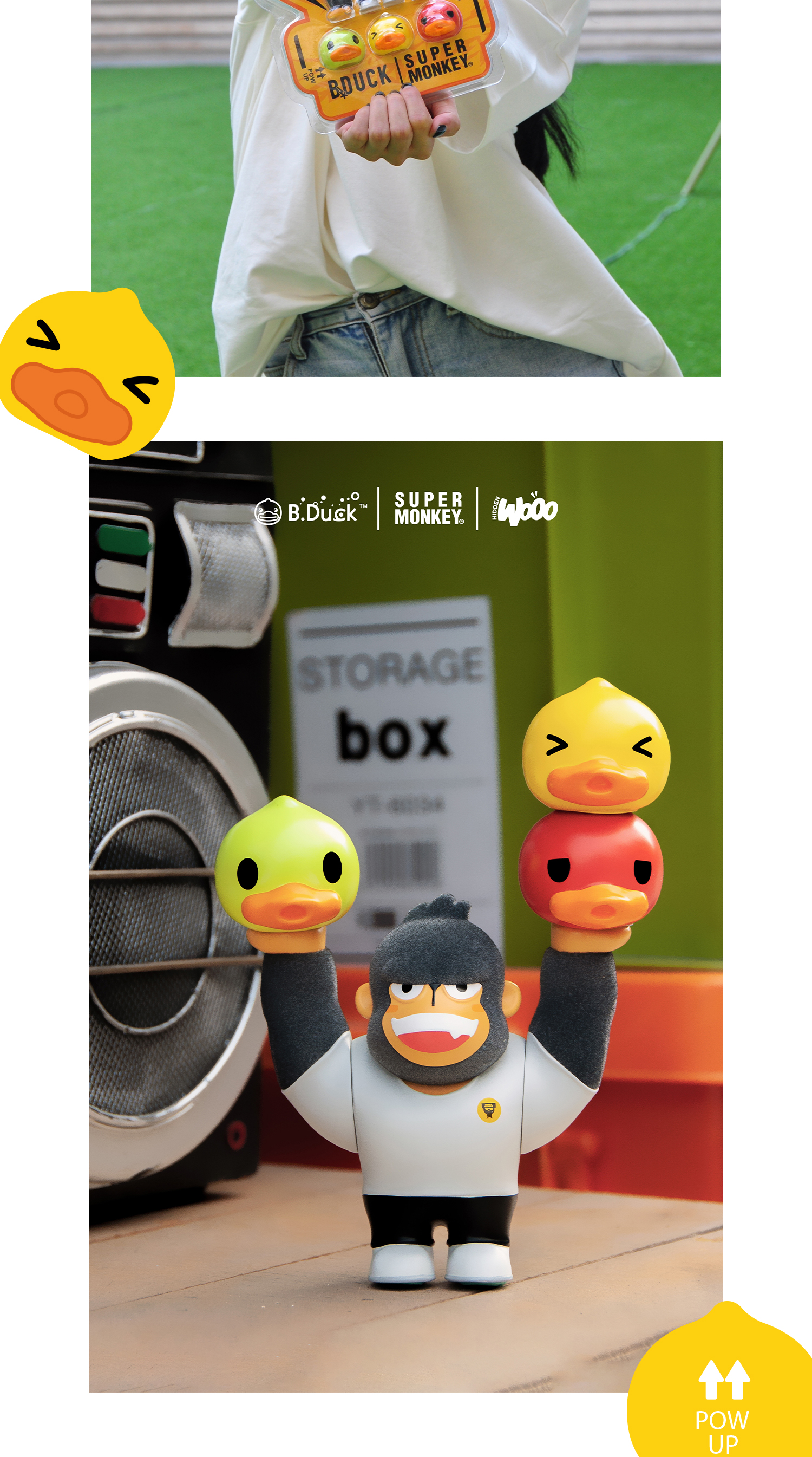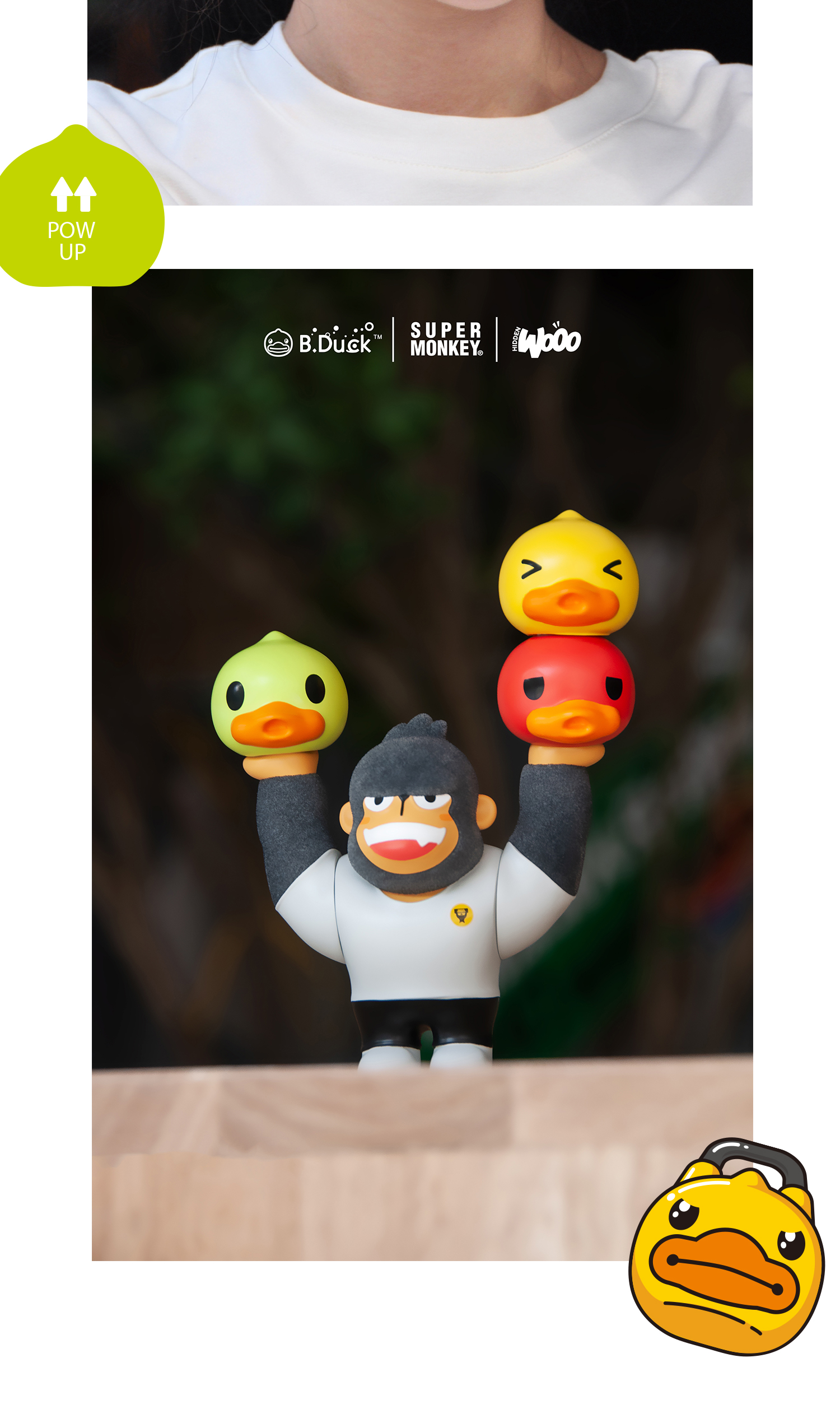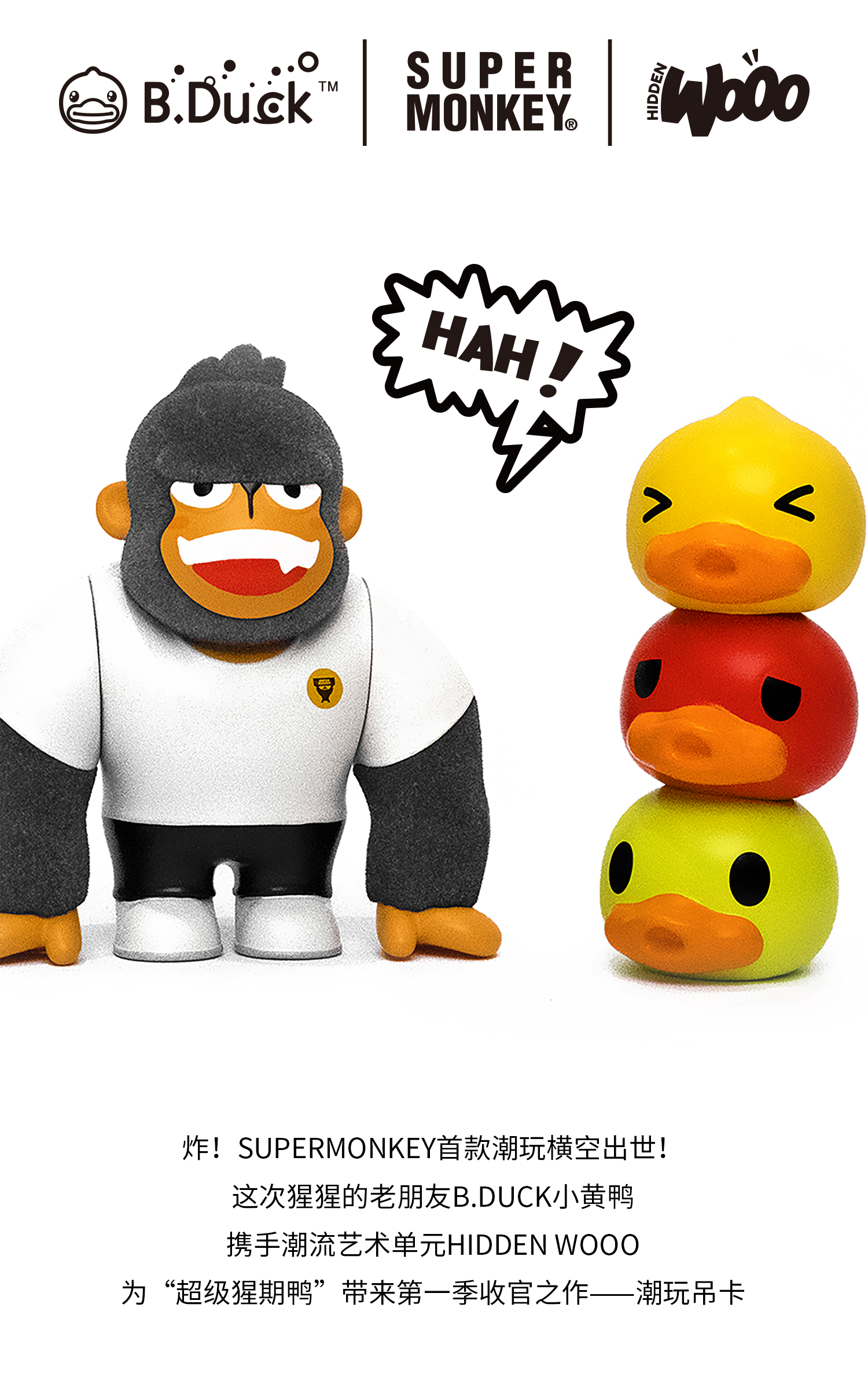 B.Duck小黄鸭 x 超级猩猩 x HIDDEN WOOO 三方联名系列 举高高 限量潮玩吊卡