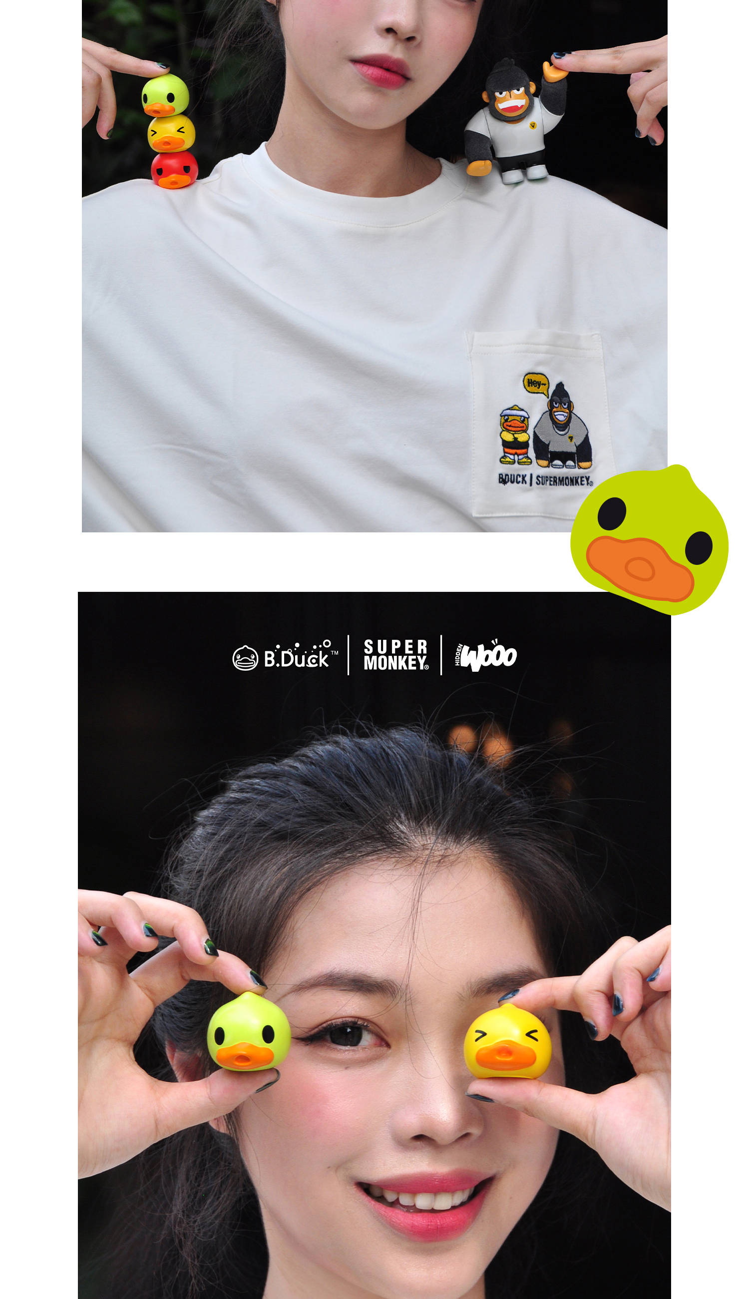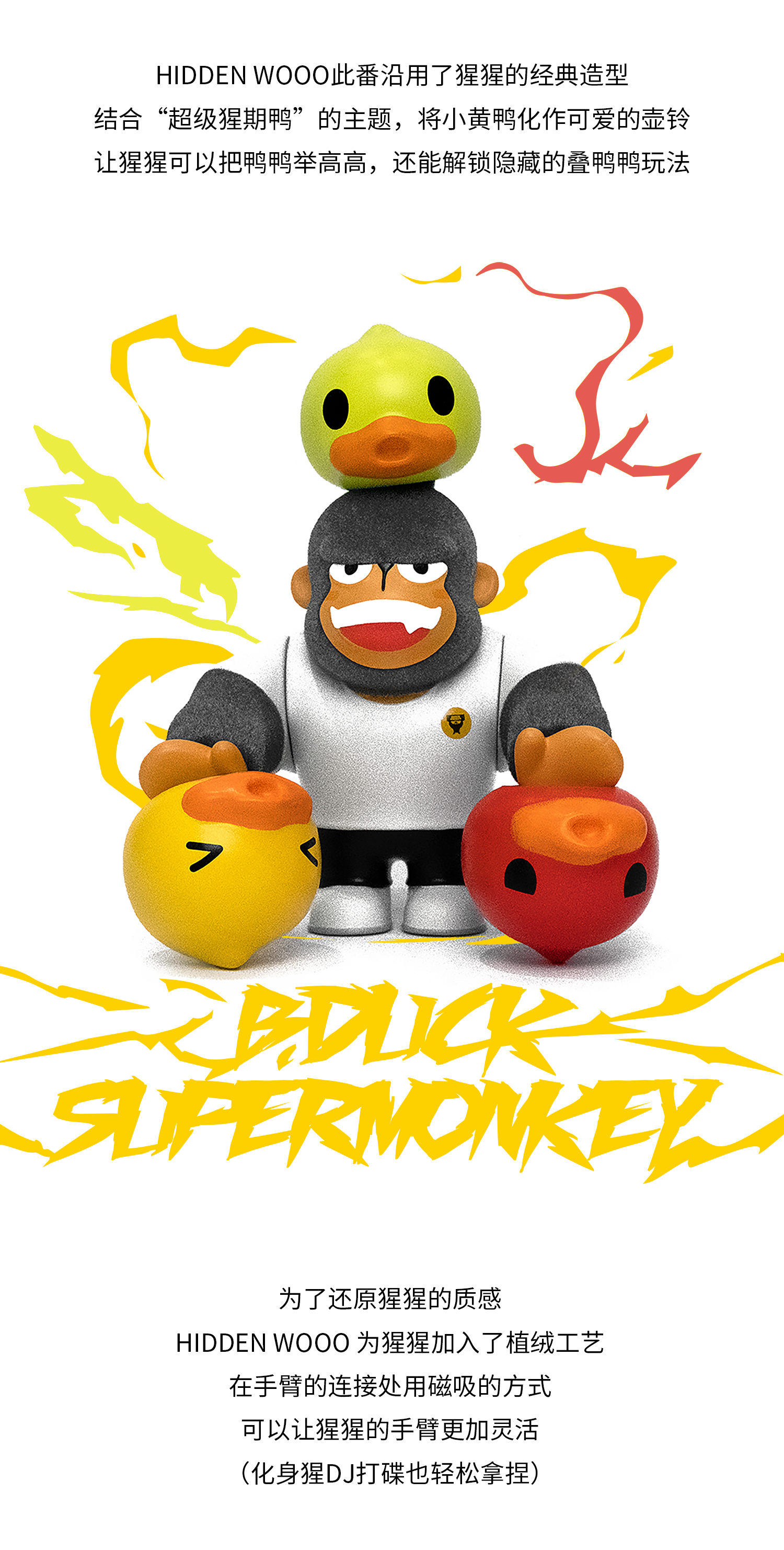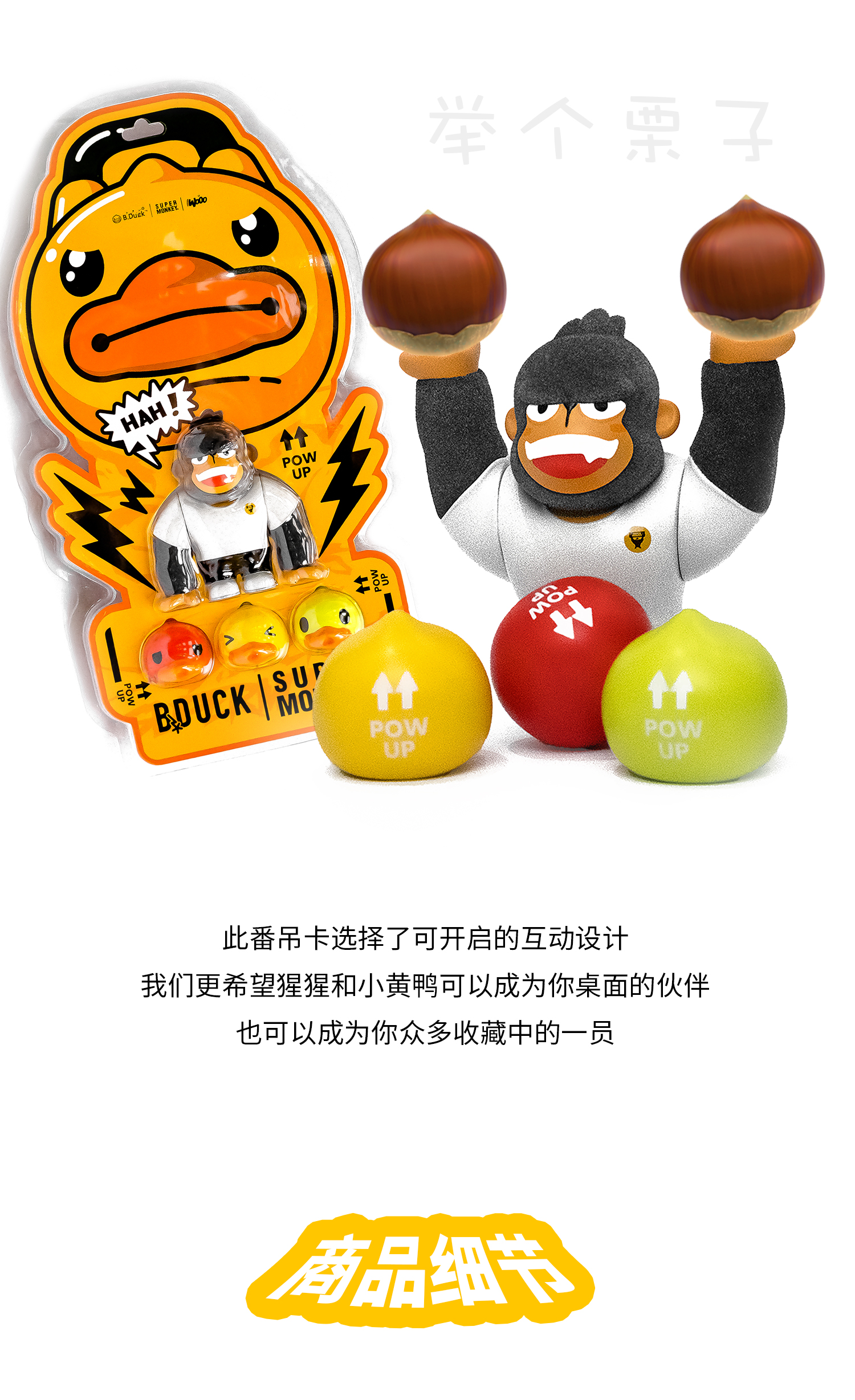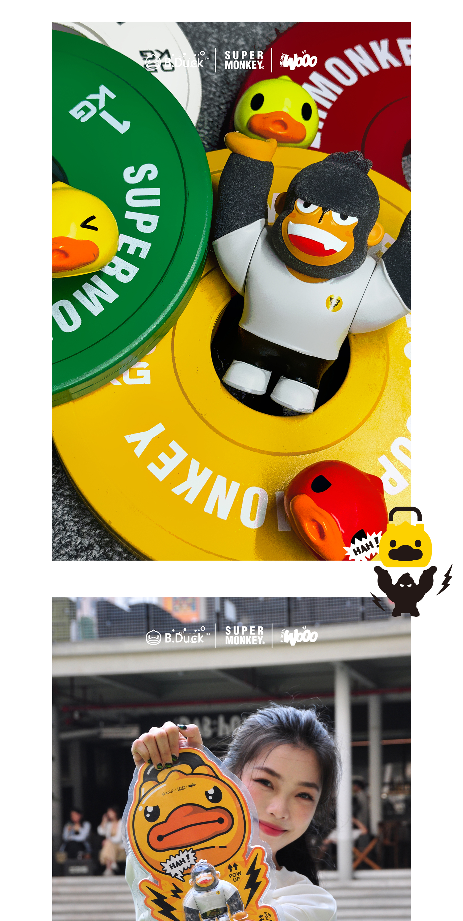 B.Duck小黄鸭 x 超级猩猩 x HIDDEN WOOO 三方联名系列 举高高 限量潮玩吊卡