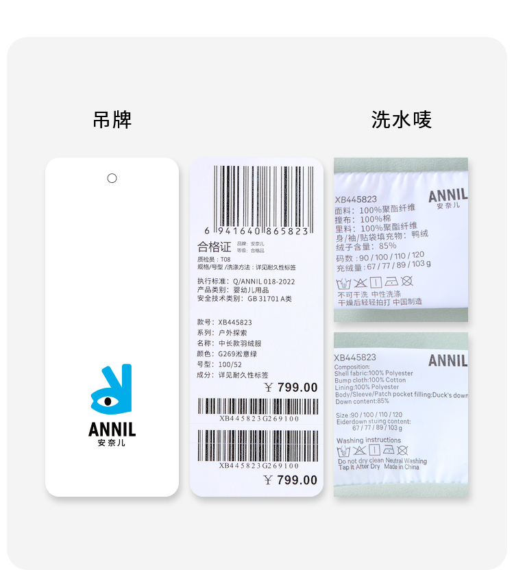 【御寒-5~5℃】男童萌趣中长款羽绒外套冬季新款安奈儿童装实体店同款XB445823