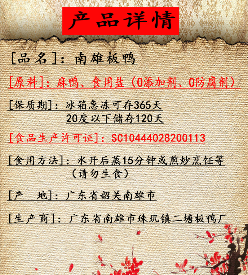 韶关特产手信【南雄珠玑二塘板鸭】百年传承制作工艺,露润霜冻,独特正宗的南雄风味~【包邮】