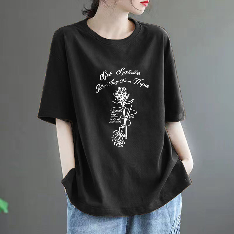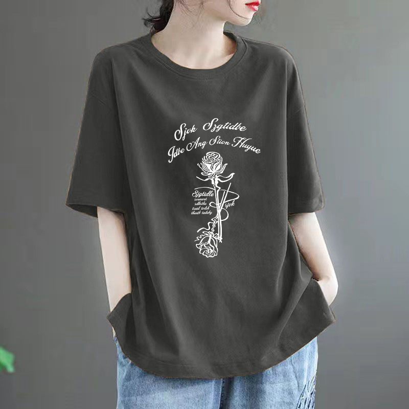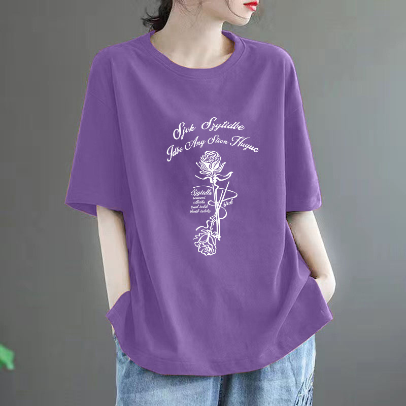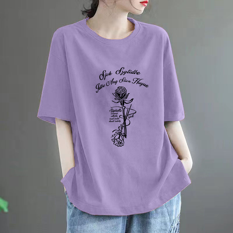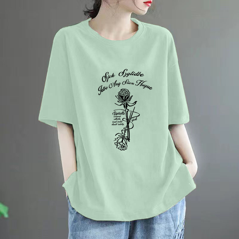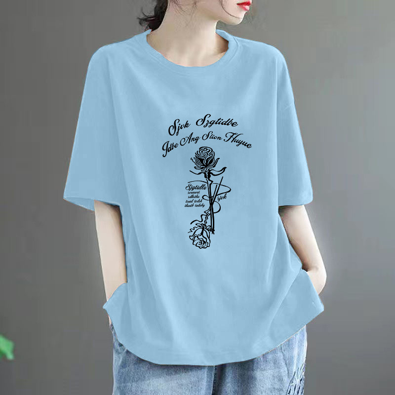 百媚生 纯棉短袖T恤圆领印花上衣1249