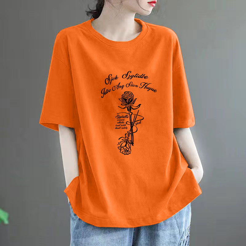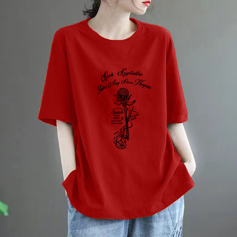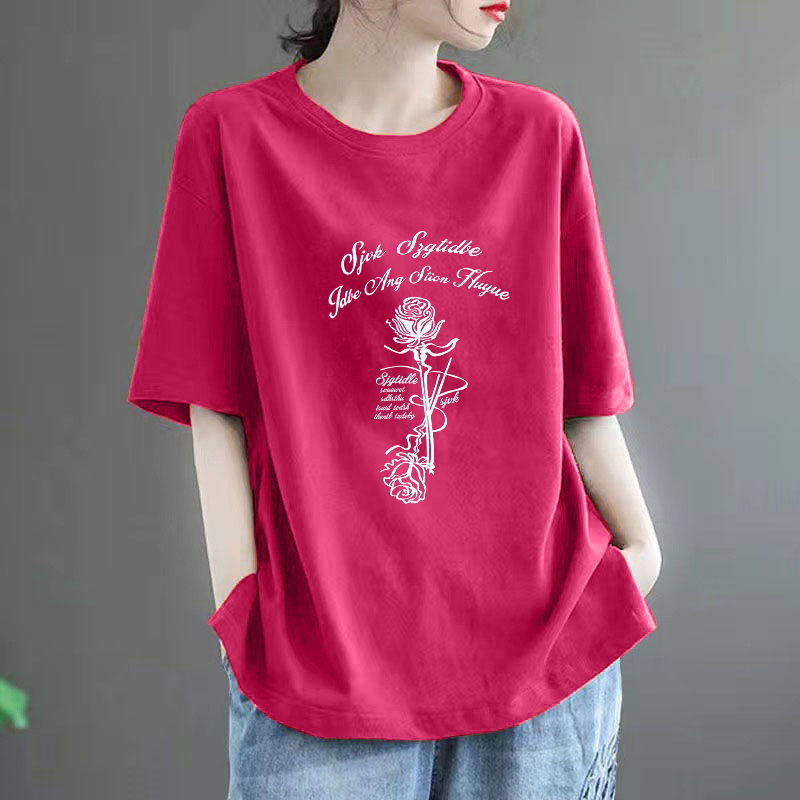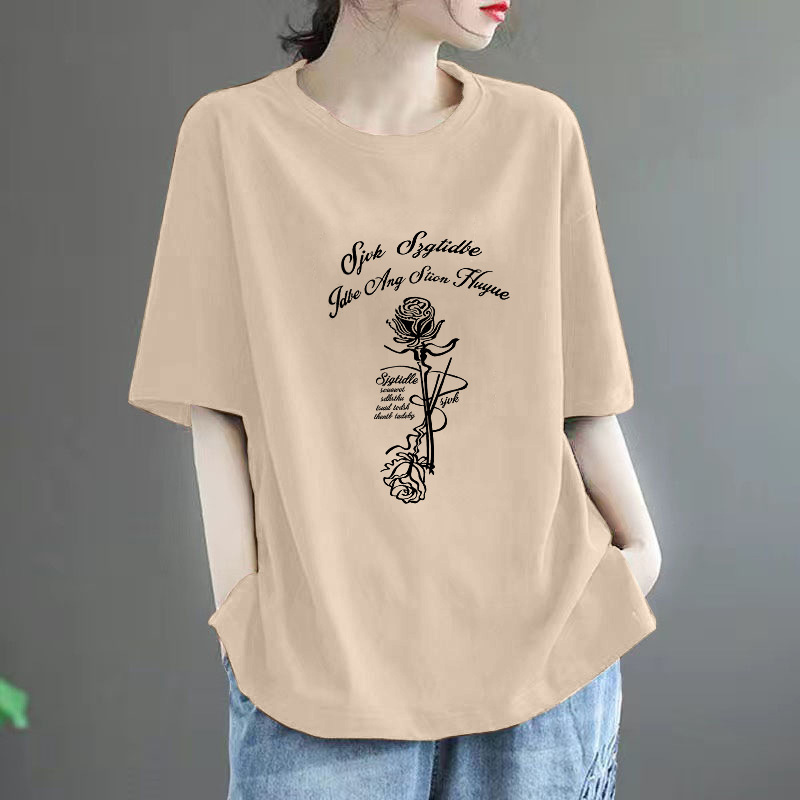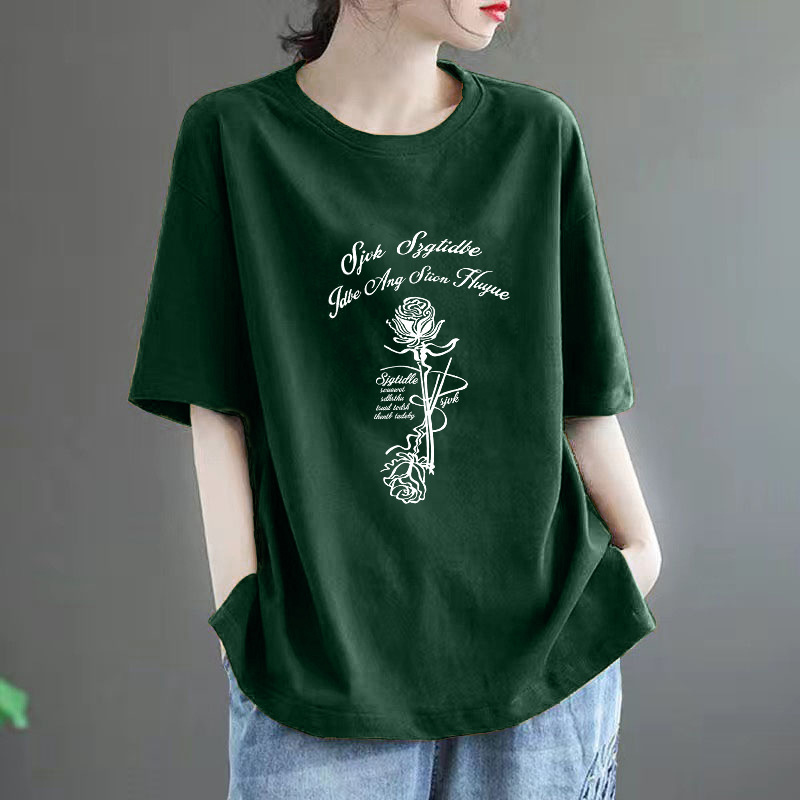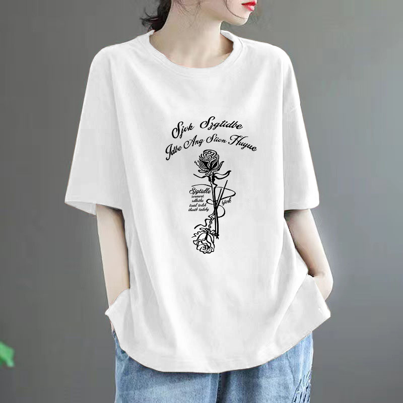 百媚生 纯棉短袖T恤圆领印花上衣1249