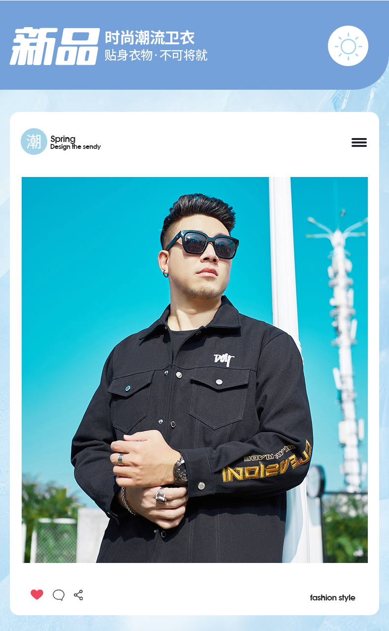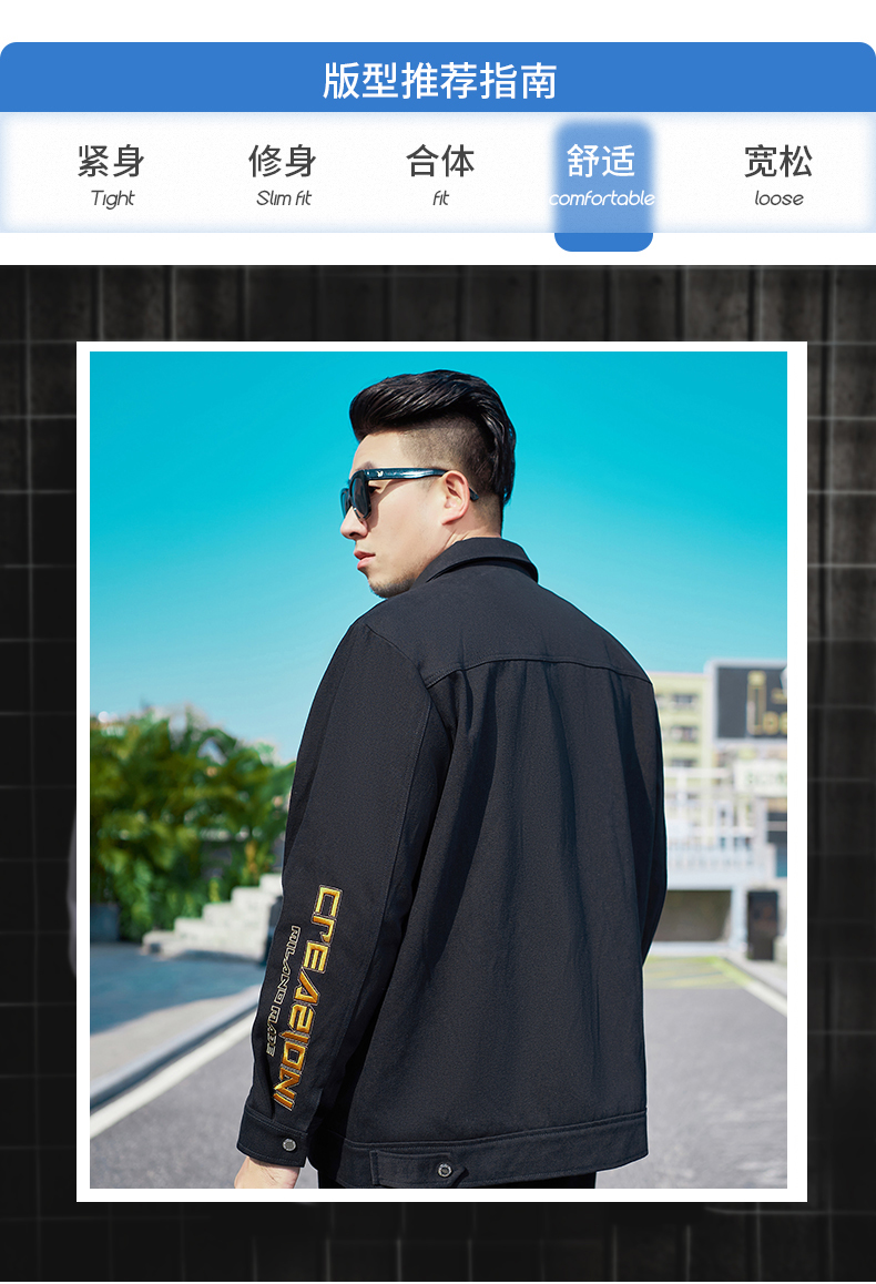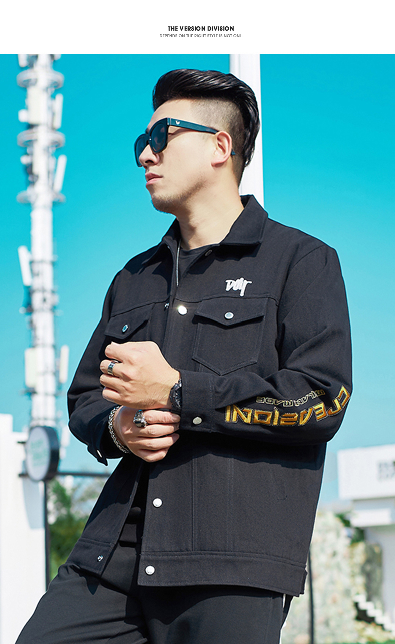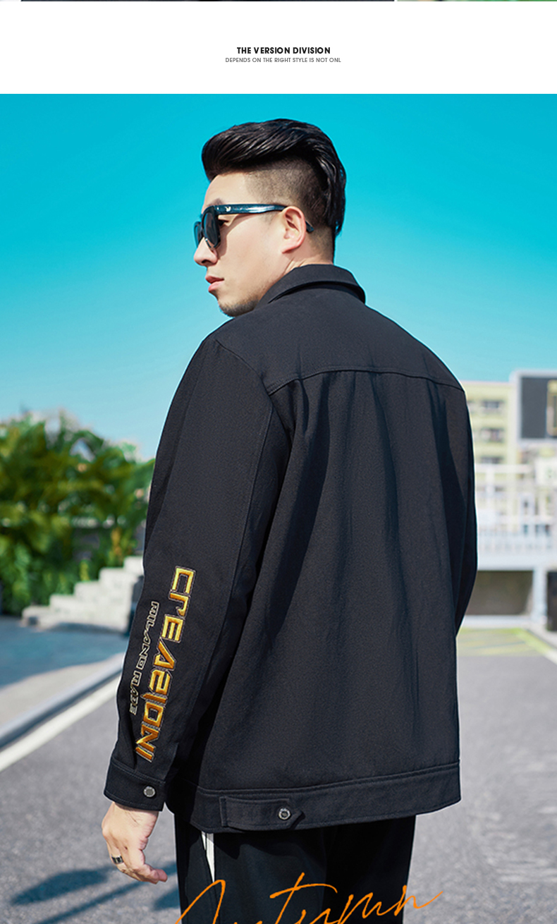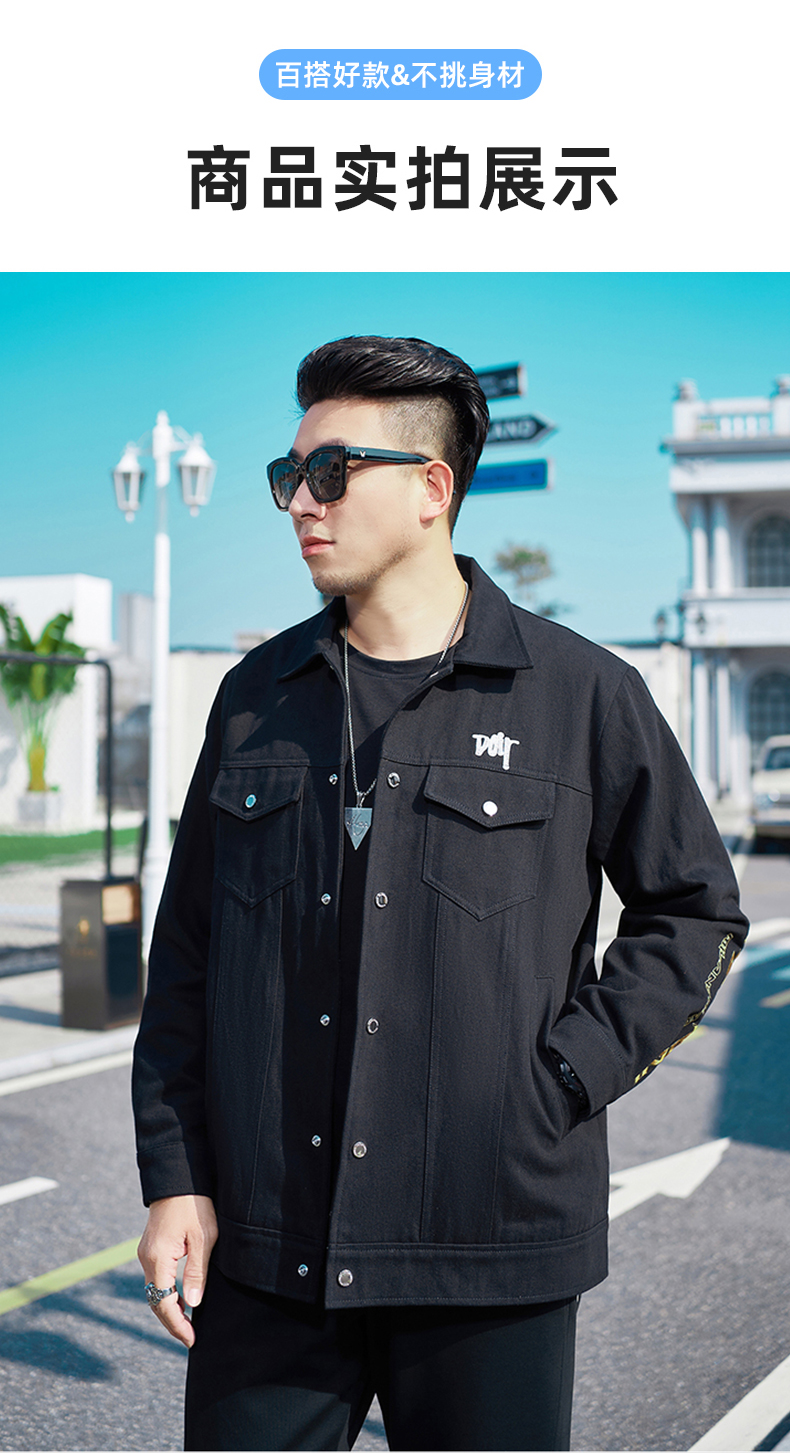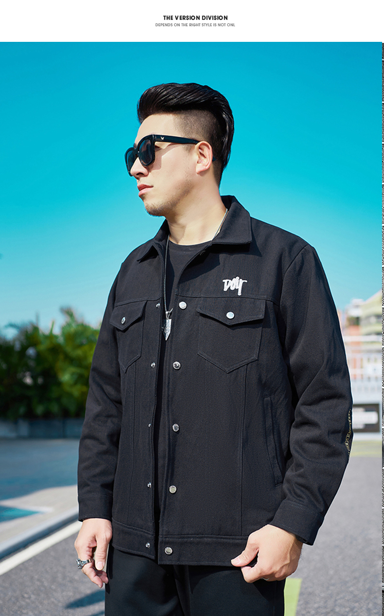 【新款DMH】大依优型大码男装字母刺绣外套夹克胖子加肥加大宽松休闲上衣