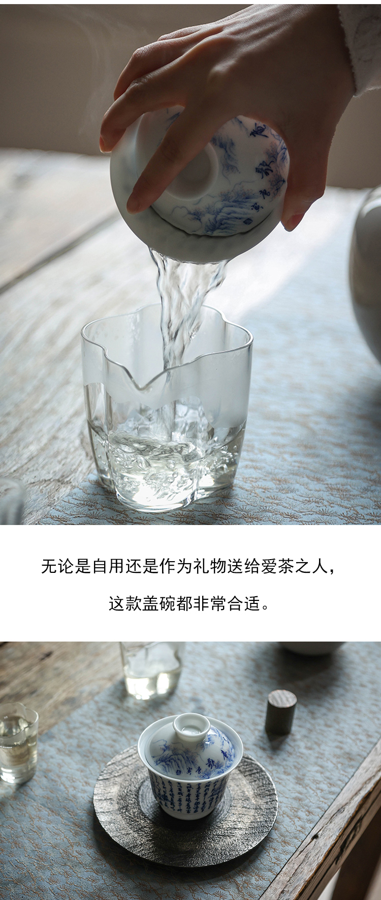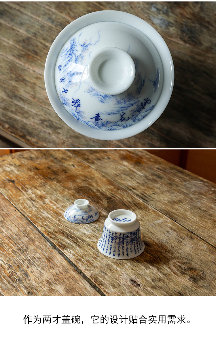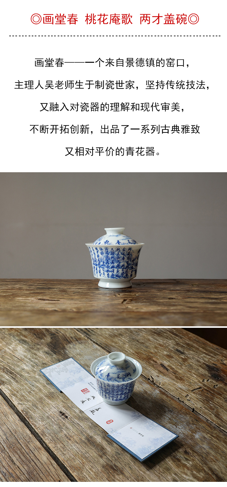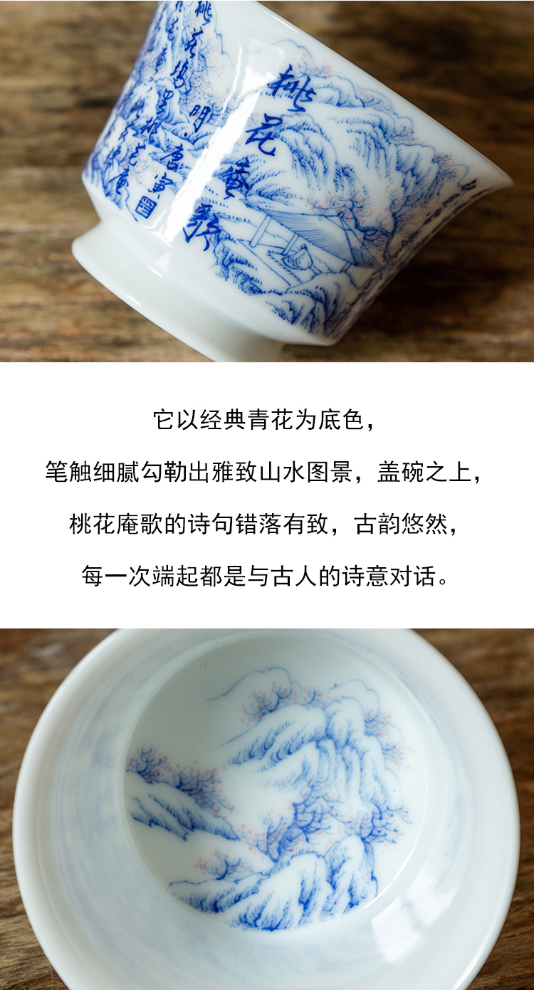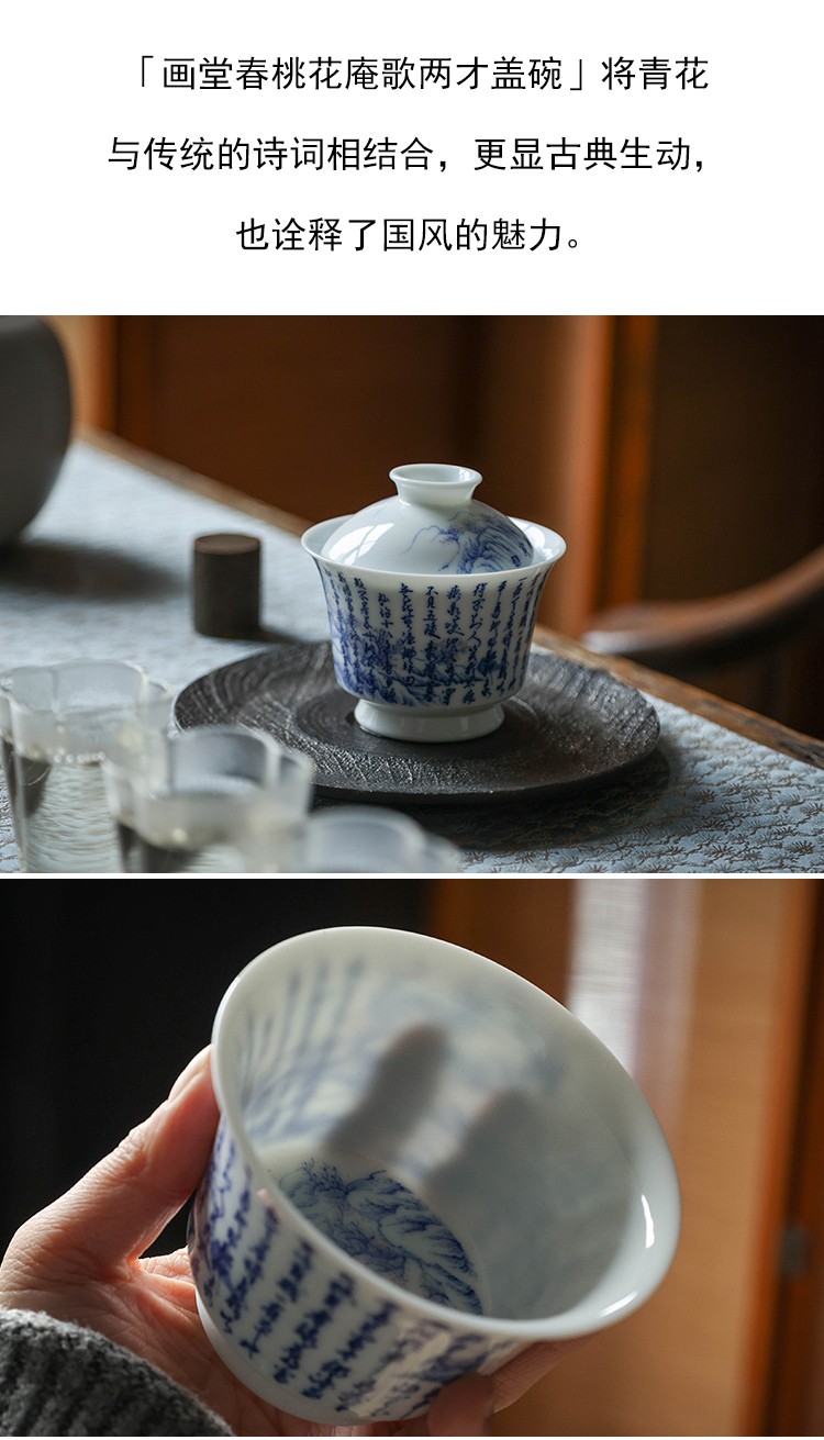 茶香记 画堂春桃花庵歌两才盖碗140ml青花手绘泡茶碗中式功夫茶具