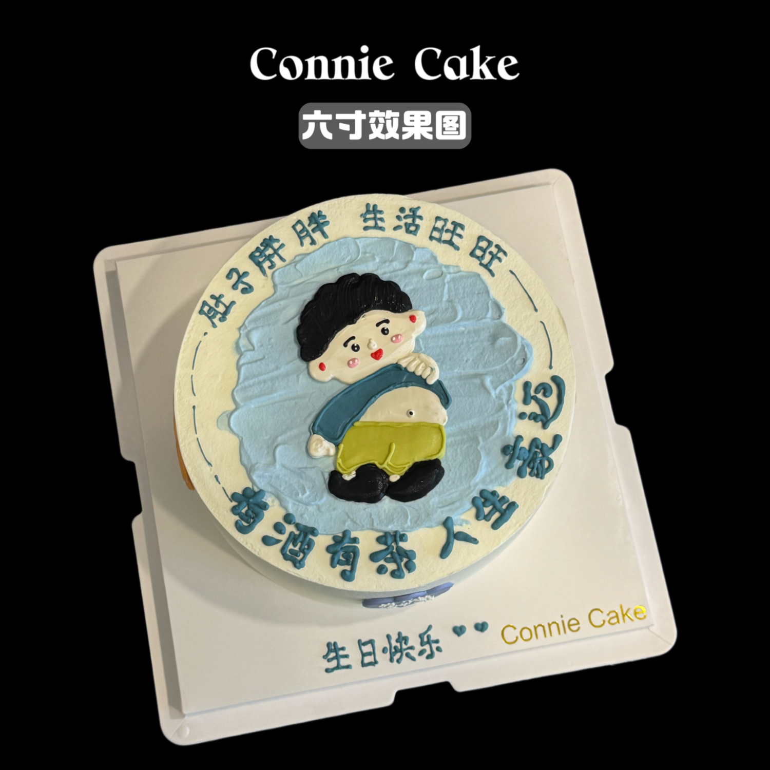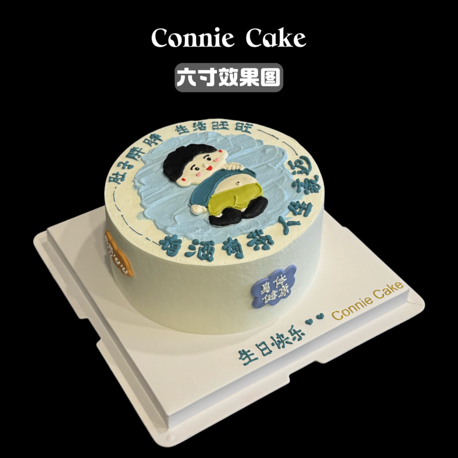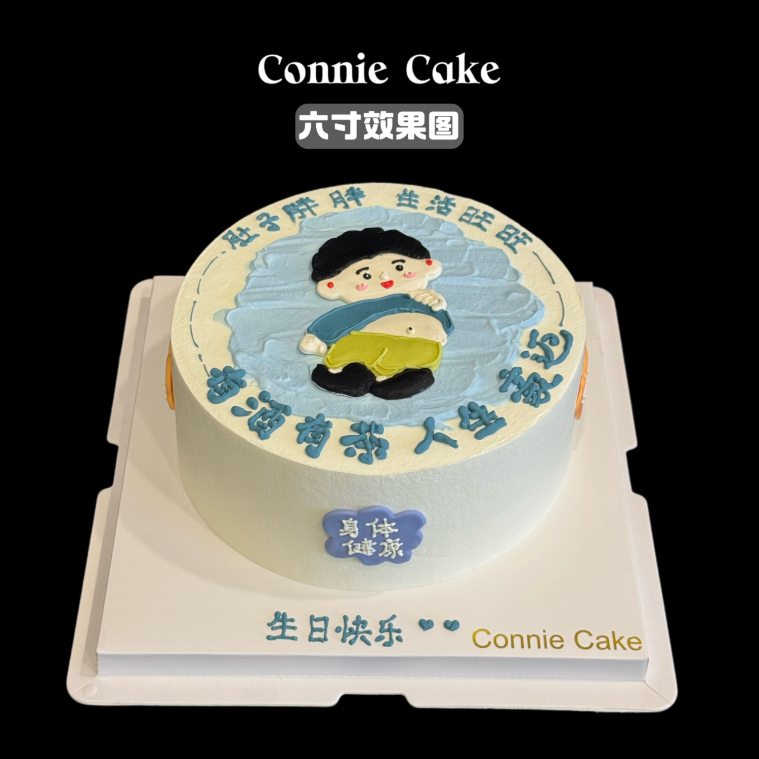 这款蛋糕专为有福气的男士设计!手绘卡通形象生动可爱——一位圆润开朗的“幸福胖”男士,挺着骄傲的小肚腩,笑容憨态可掬,瞬间让人会心一笑!
