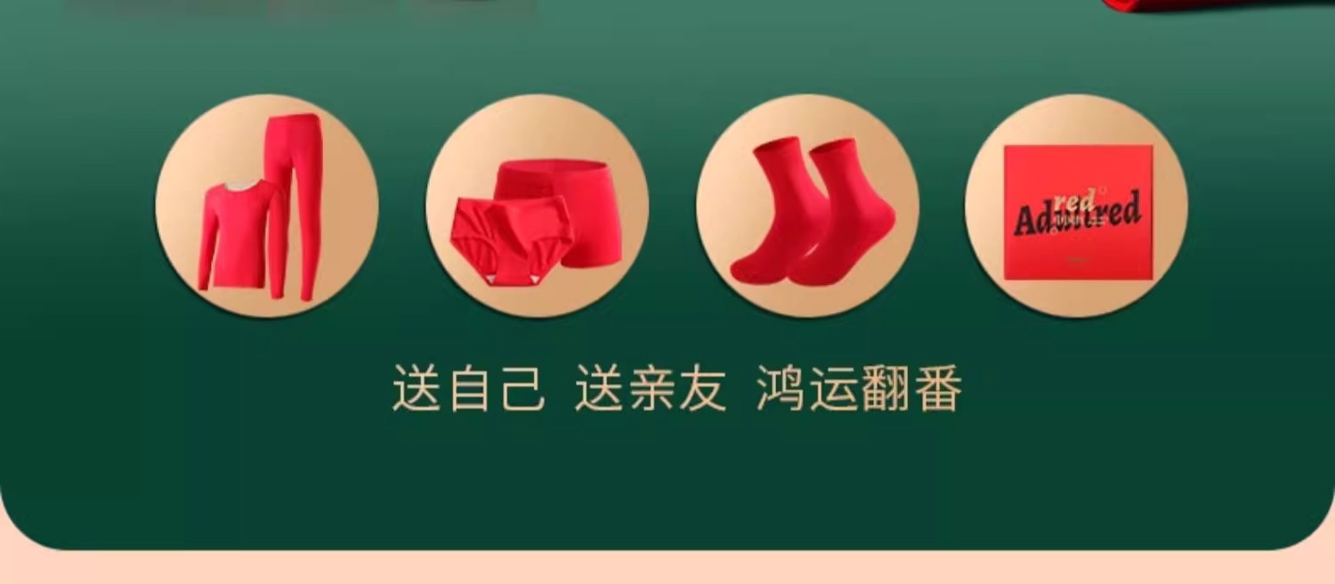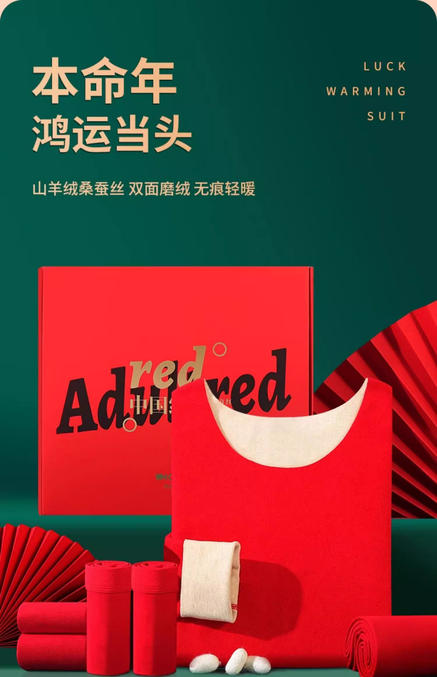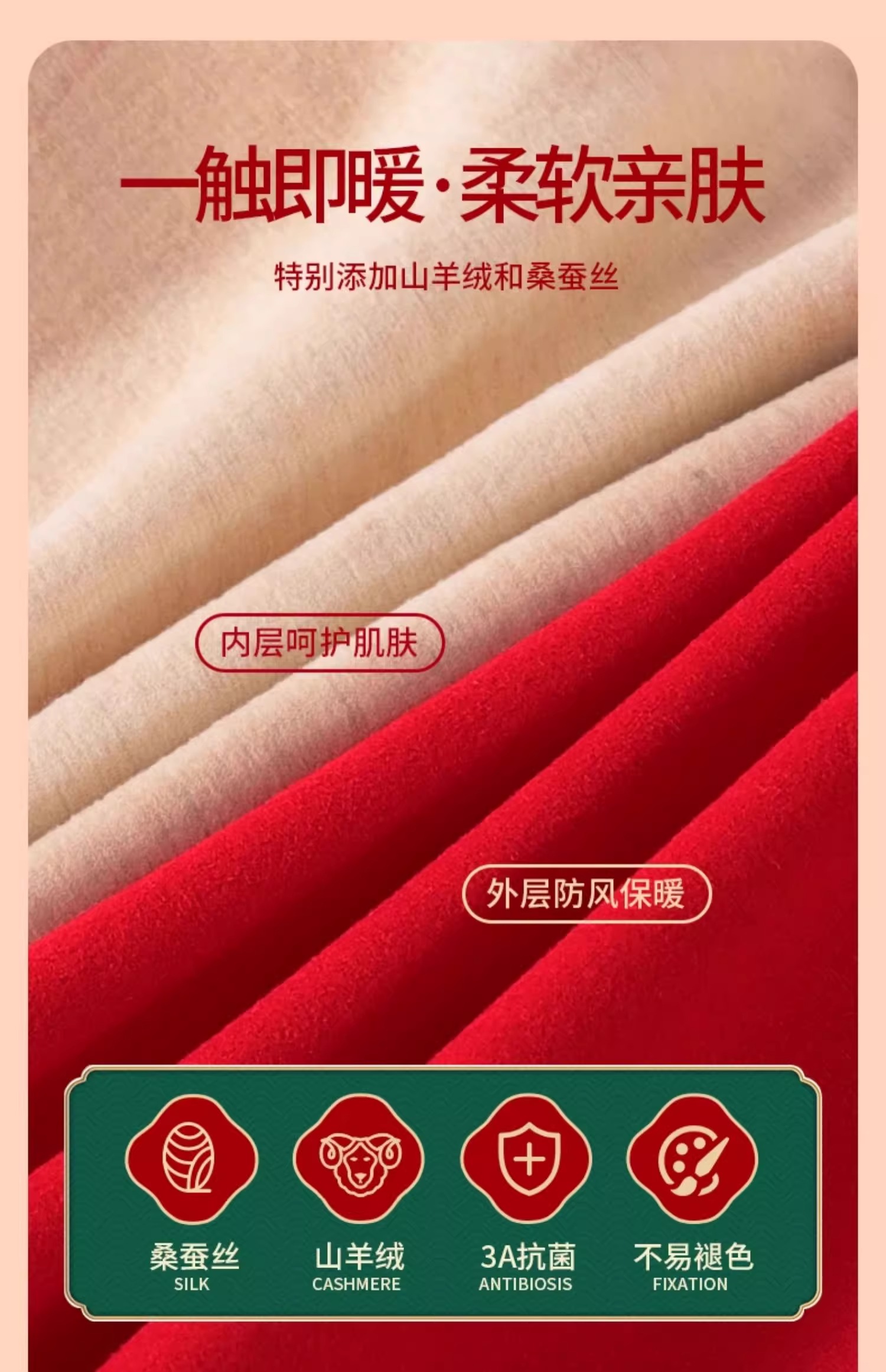 【本命年鸿运四件套 双面磨绒 3A抑菌】雅鹿柔软亲肤添加山羊绒和桑蚕丝内衣内裤袜子套装