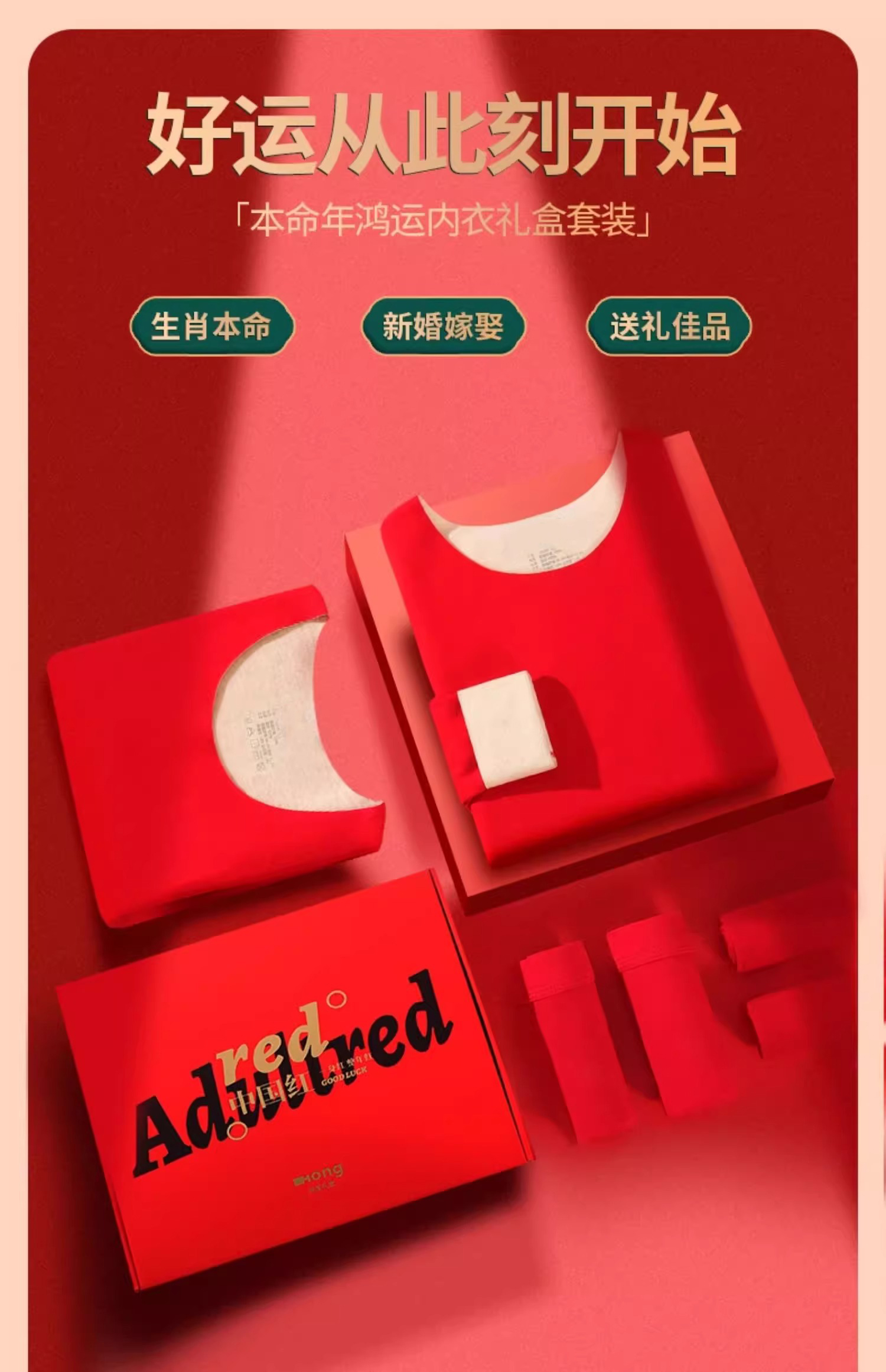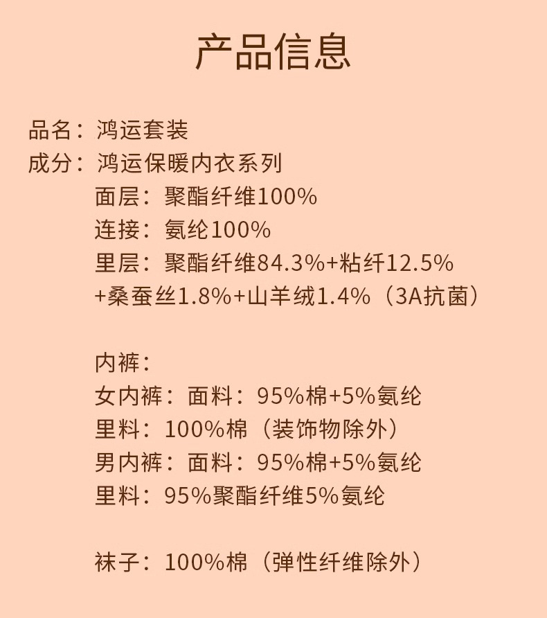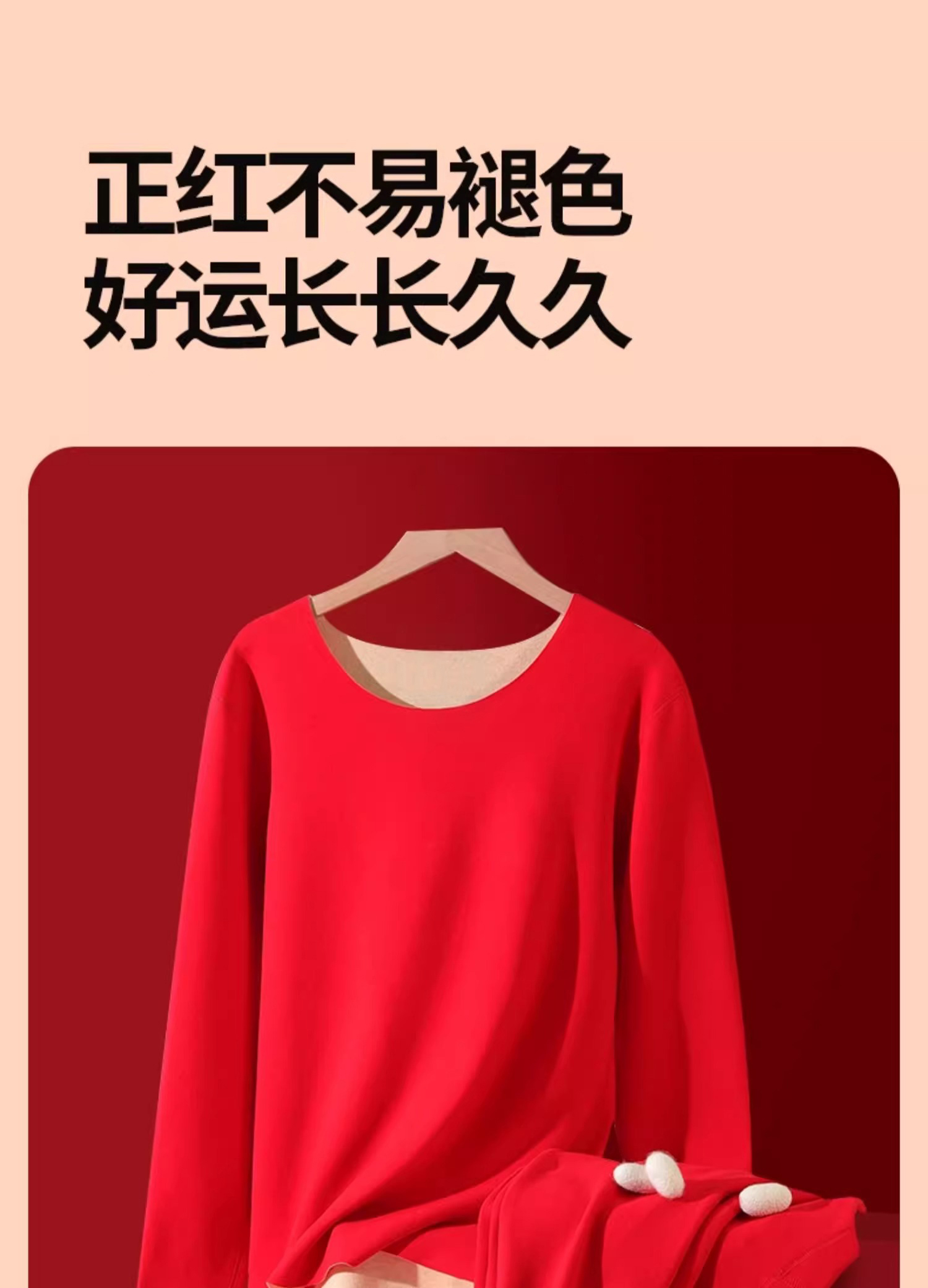 【本命年鸿运四件套 双面磨绒 3A抑菌】雅鹿柔软亲肤添加山羊绒和桑蚕丝内衣内裤袜子套装