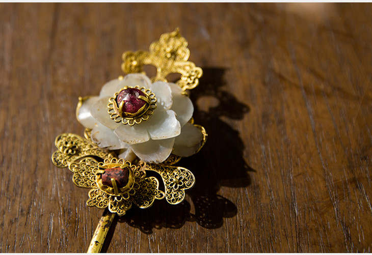 清 金镶玉花形发簪